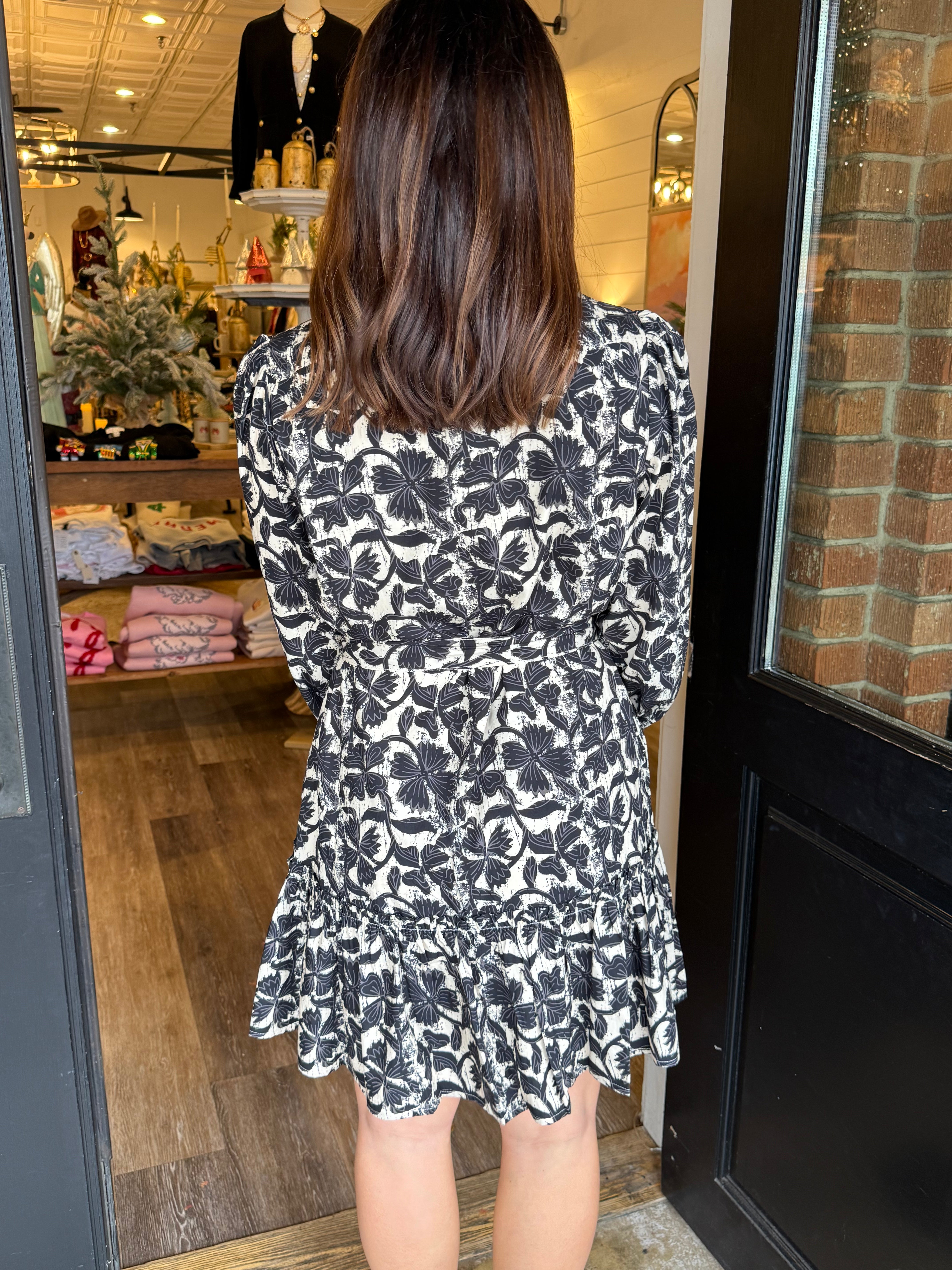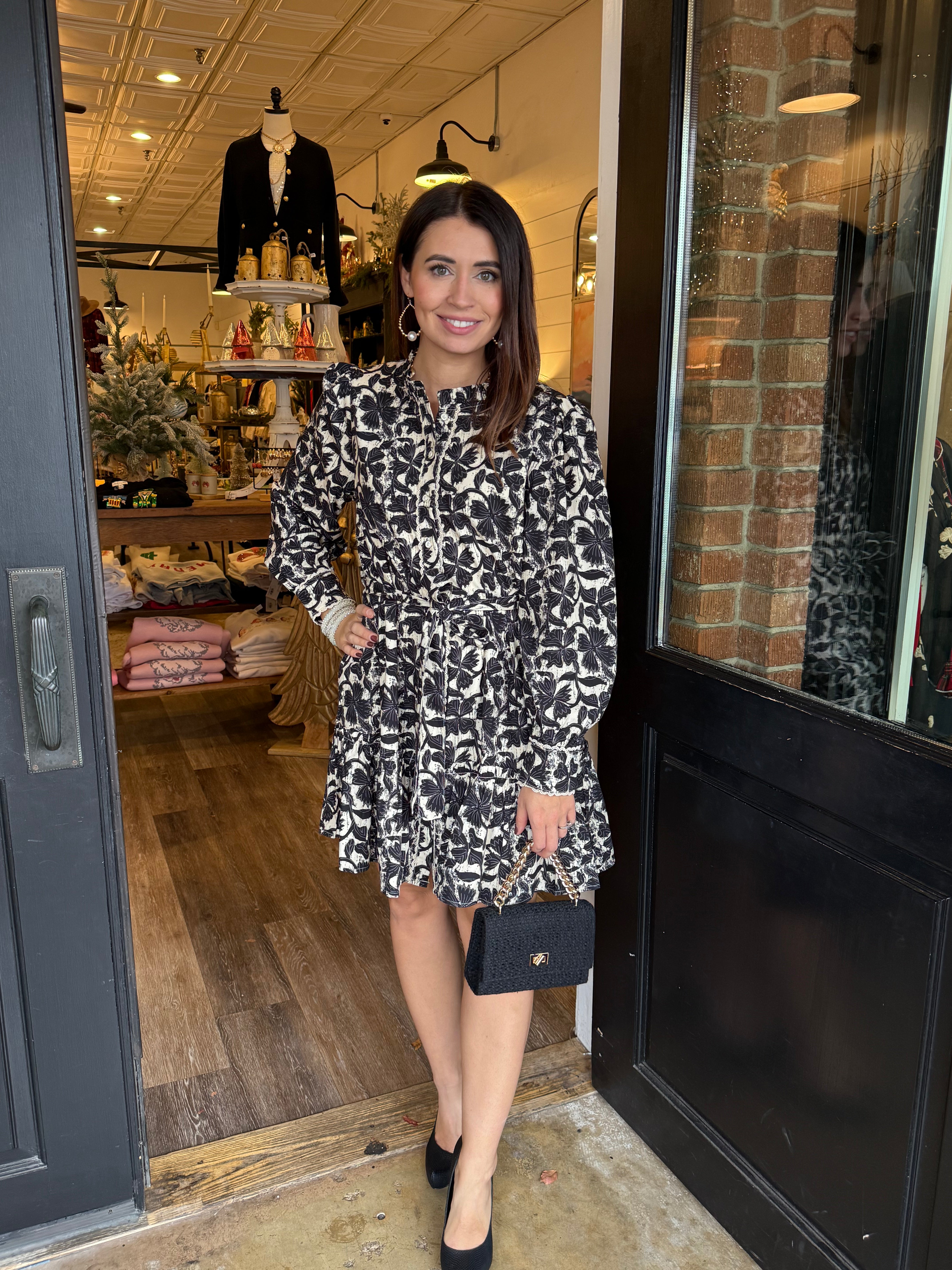 The Kara Dress is an easy, feminine favorite with all the details we love. Designed with a ruffled neckline and delicate lace trim, this floral dress features a functional front button detail and side pockets (yes, pockets!). The adjustable waist tie lets you customize the fit, while the long sleeves make it perfect for parties, church, showers, and holiday gatherings.