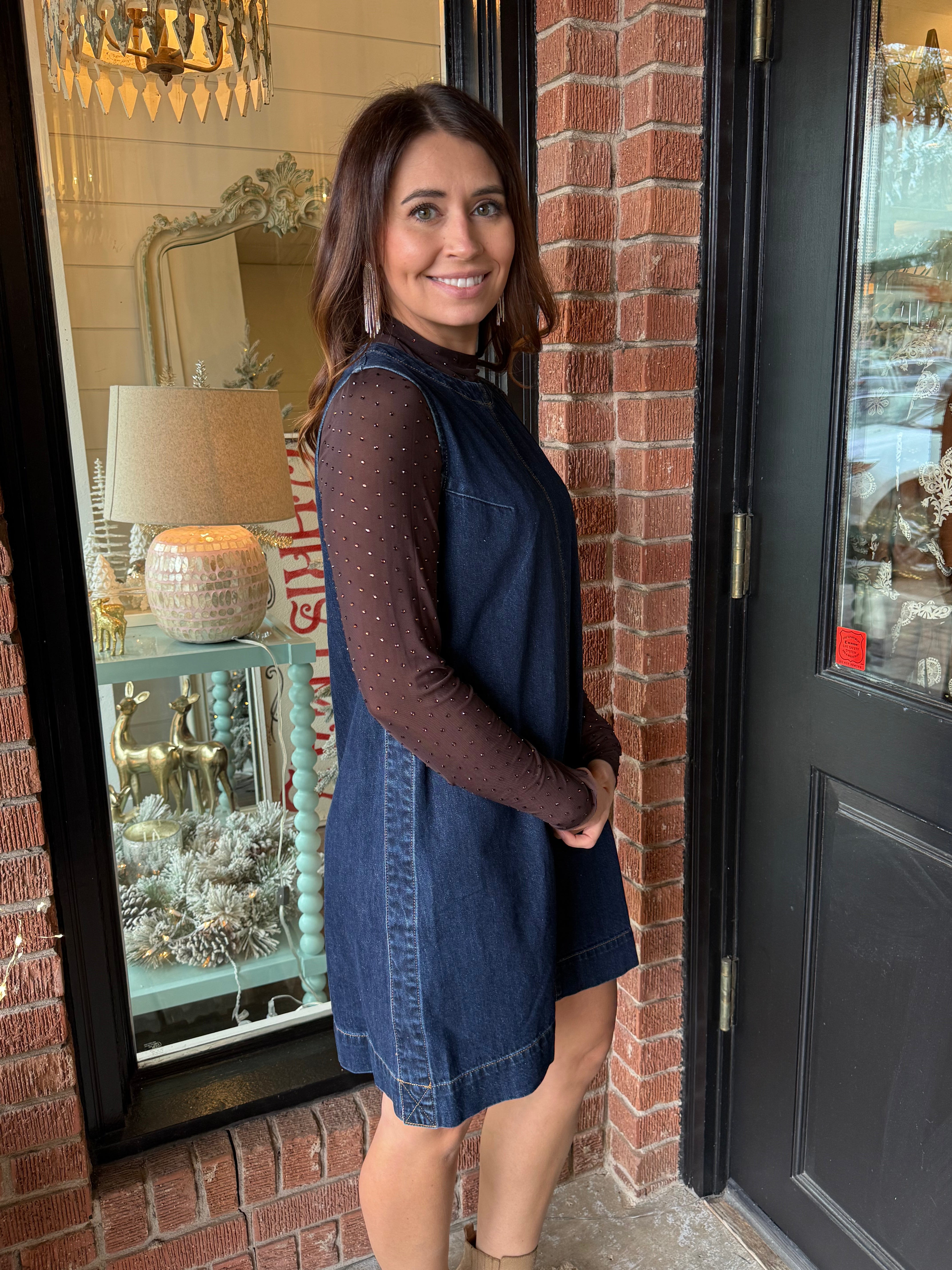 Simple, stylish, and effortlessly chic — the Katelyn Denim Mini Dress is the perfect blend of casual comfort and boutique charm. 💙 Designed with a sleeveless silhouette, flattering seam down the center, and soft denim fabric, this dress is easy to style for any season. Dress it up or down — it’s a timeless piece you’ll reach for again and again.