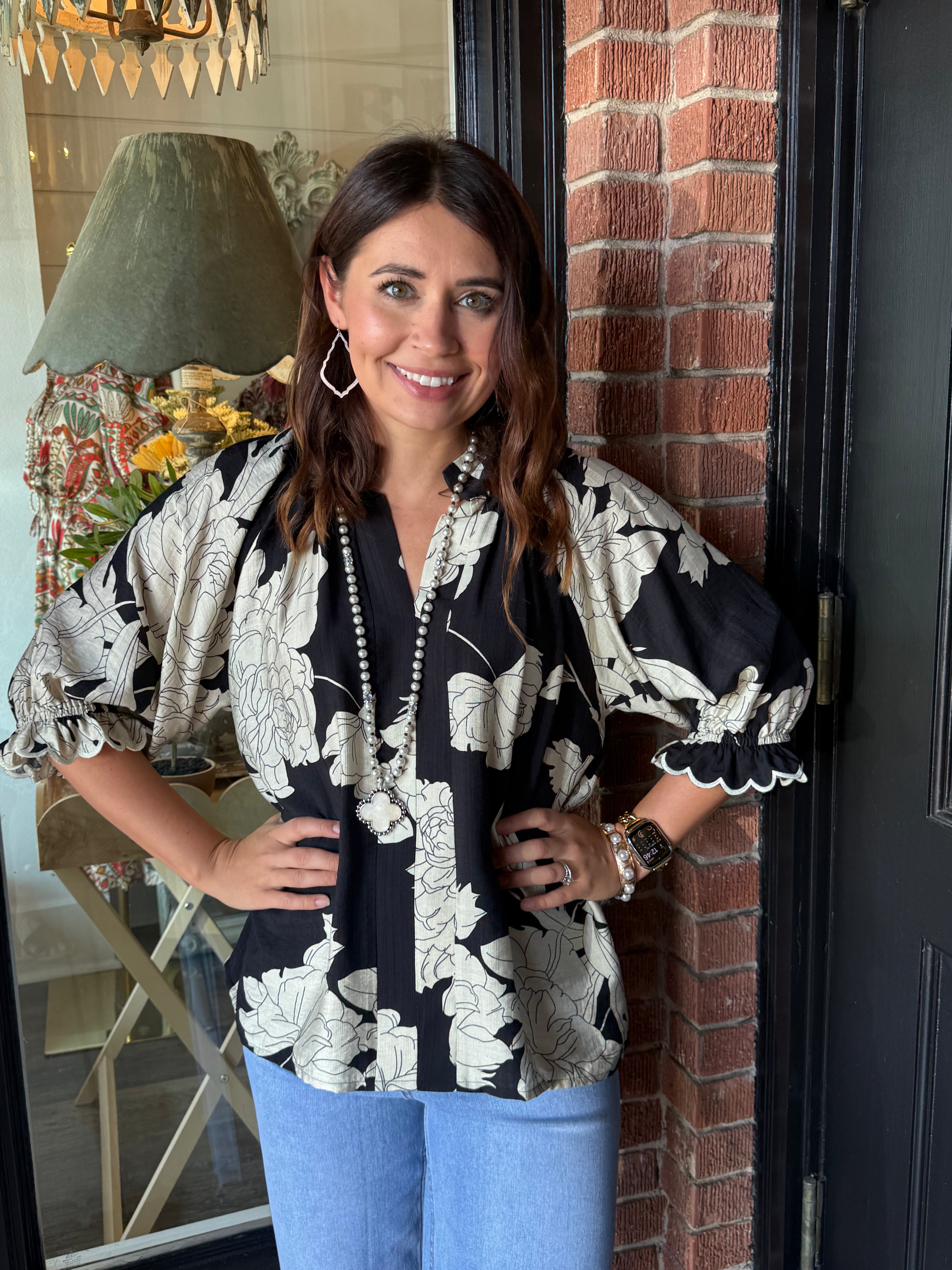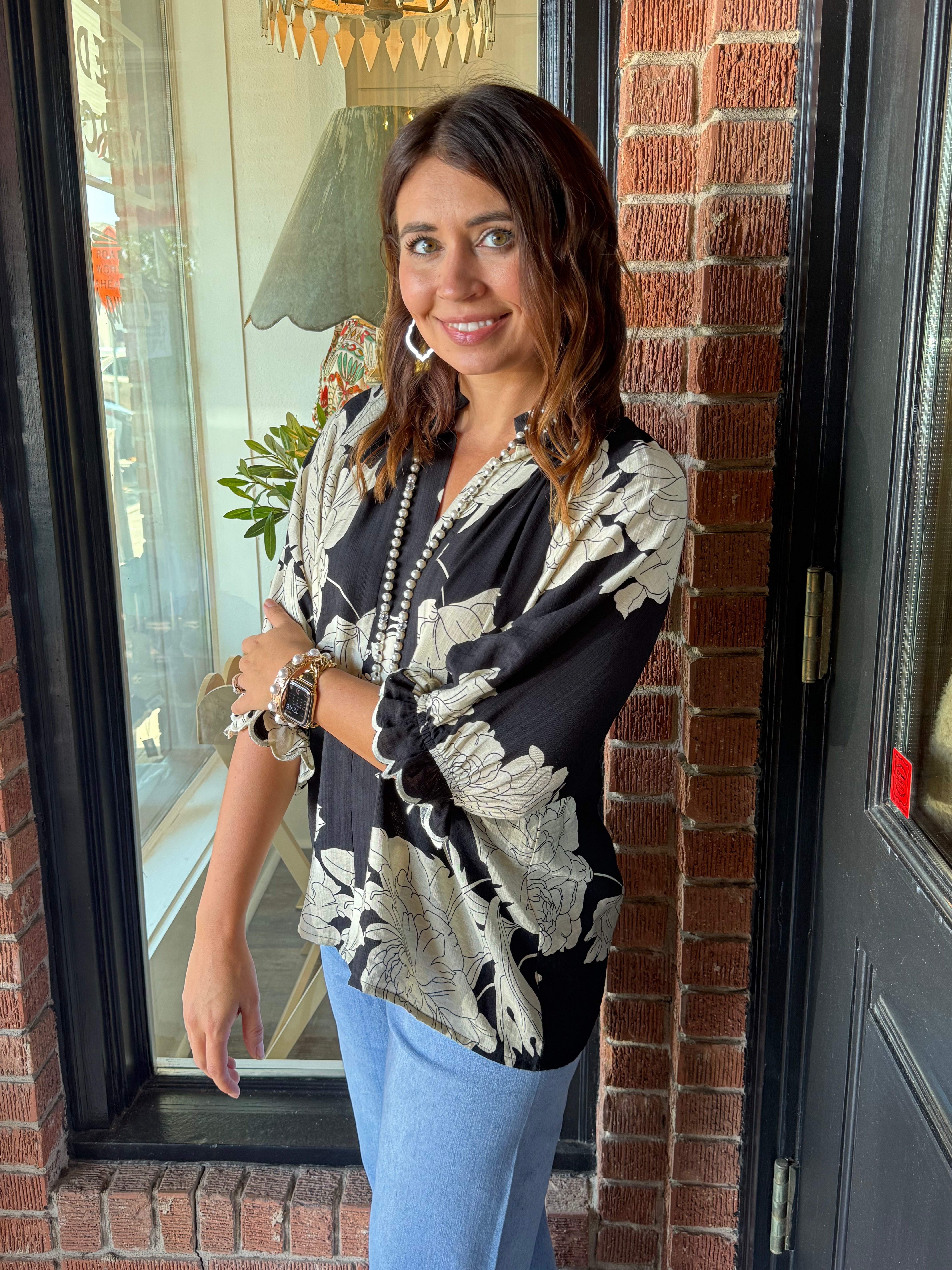 Effortlessly stylish, the Katherine Peony Print High Neck Top combines a relaxed, boxy silhouette with feminine detailing. The split neckline and half puff sleeves add subtle elegance, while the high-low hemline creates a modern, flattering fit. Perfect for pairing with jeans, skirts, or tailored pants, this top is a versatile addition to any wardrobe.