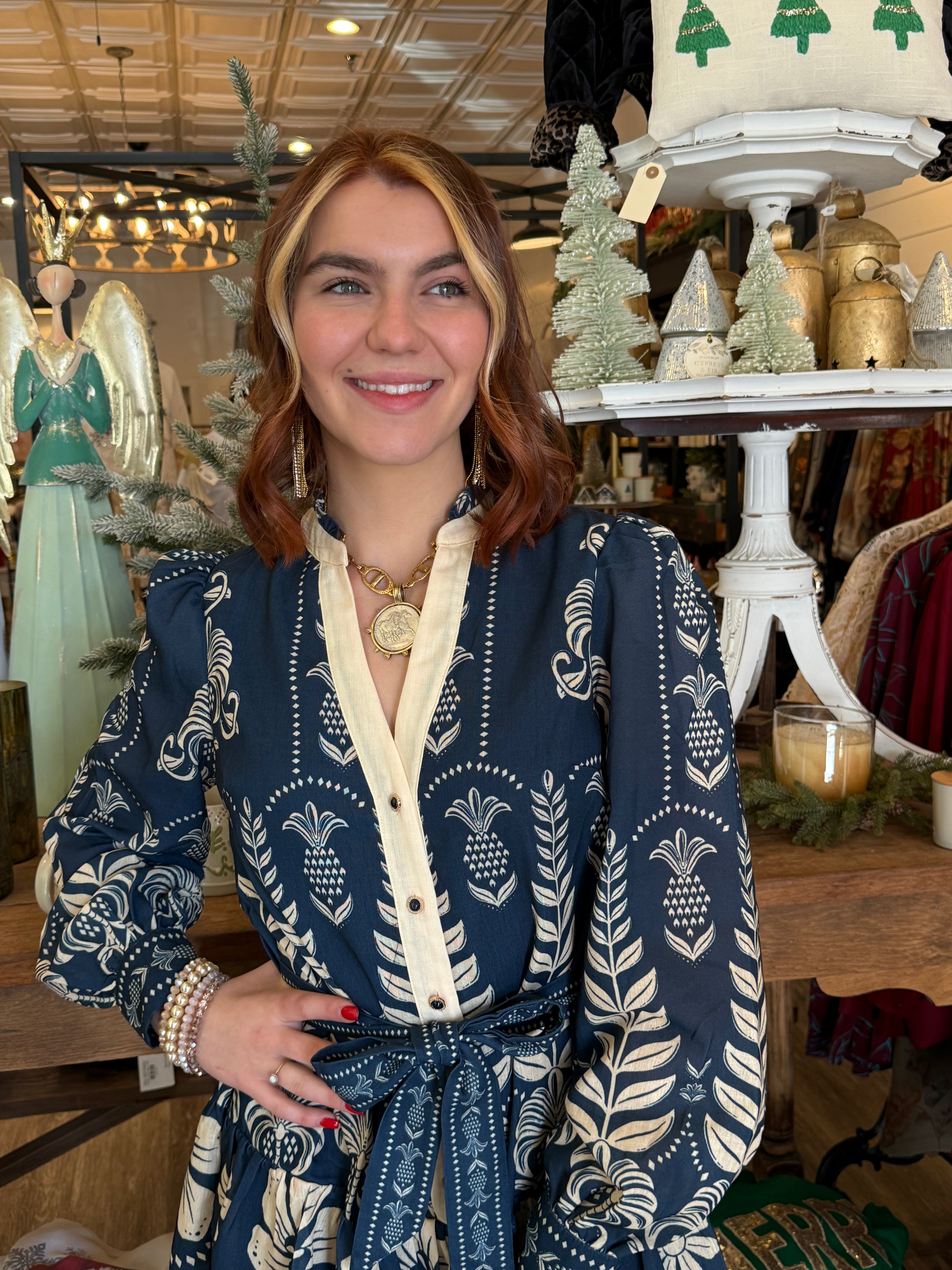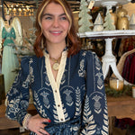 Feminine, flattering, and full of charm — the Kendall V-Neck Button Down Mini Dress is the perfect fit-and-flare silhouette for fall events, dinners, and everyday pretty style. Designed in a navy multi floral print, this dress features a soft V-neckline, puff sleeves, and a cinched waist with a tie for the perfect shape. The button-down front, side pockets, and playful ruffle hem add both function and flair, while the lining ensures comfortable, confident wear.