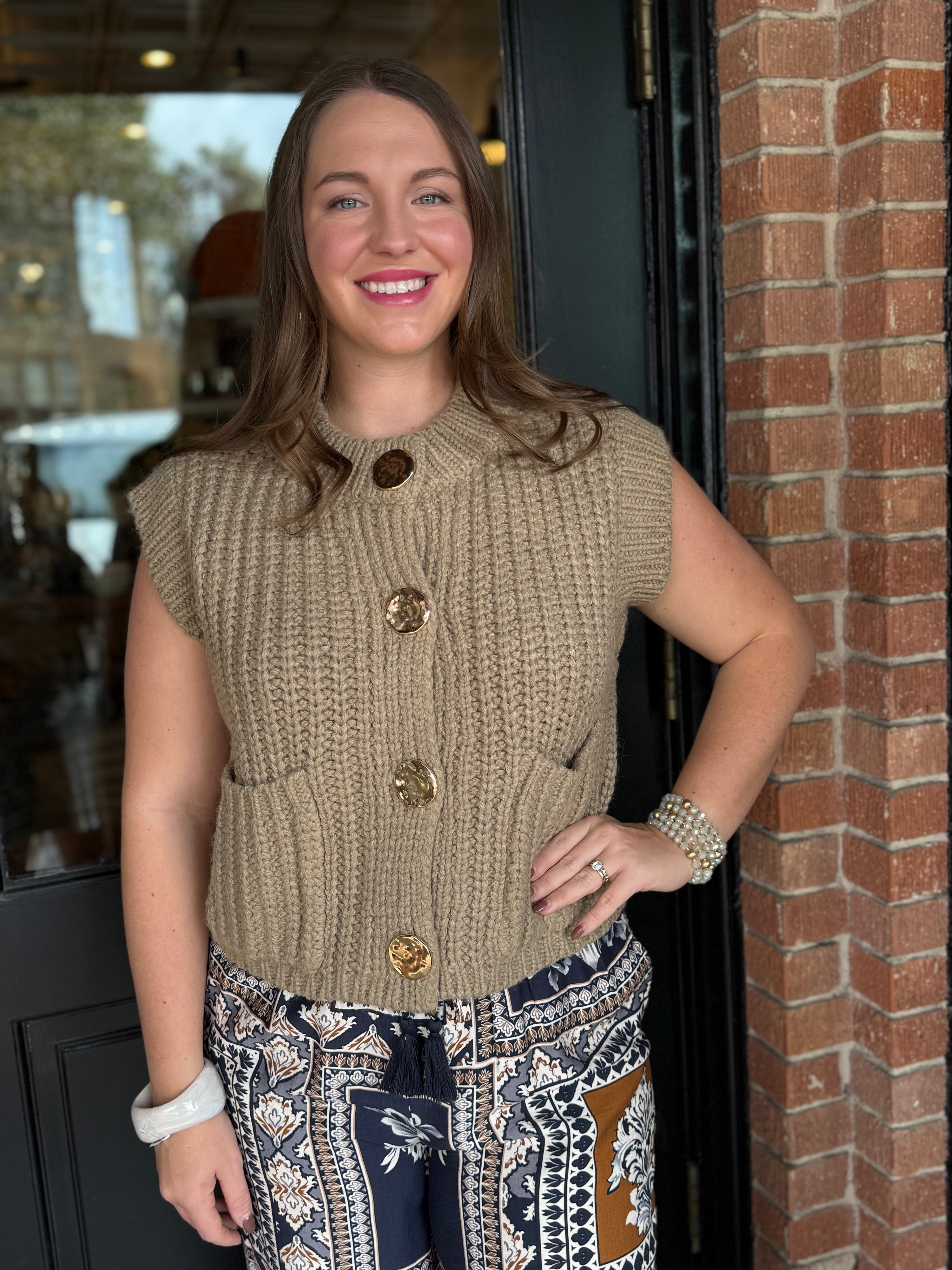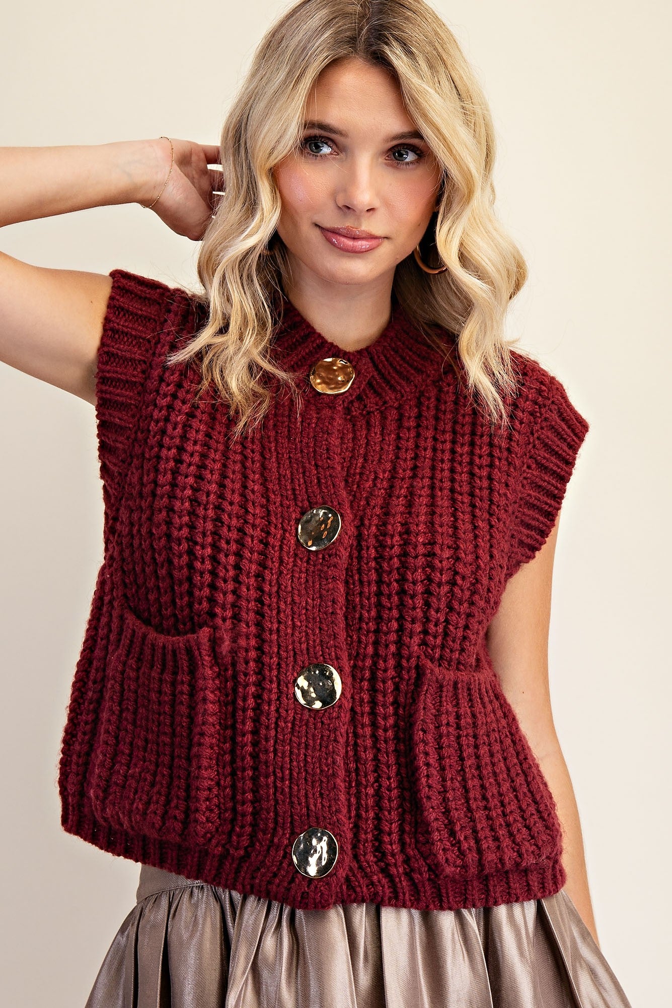 The Kristine Vest is a versatile layering piece with timeless appeal. Crafted in a soft knit, it features a classic front button closure and a relaxed fit that’s perfect over blouses, dresses, or worn solo with denim. A chic wardrobe staple for adding texture and dimension to your look year-round.