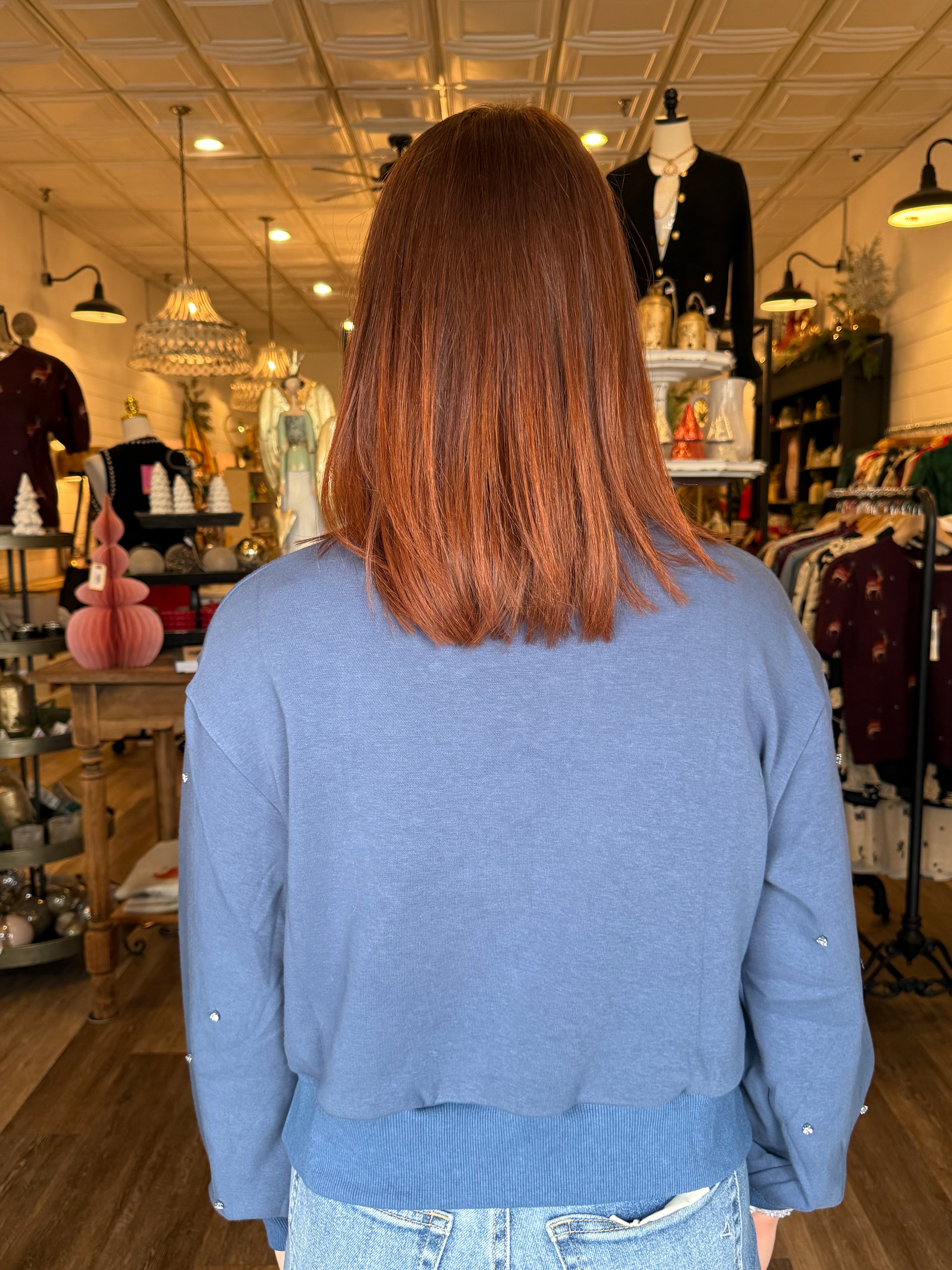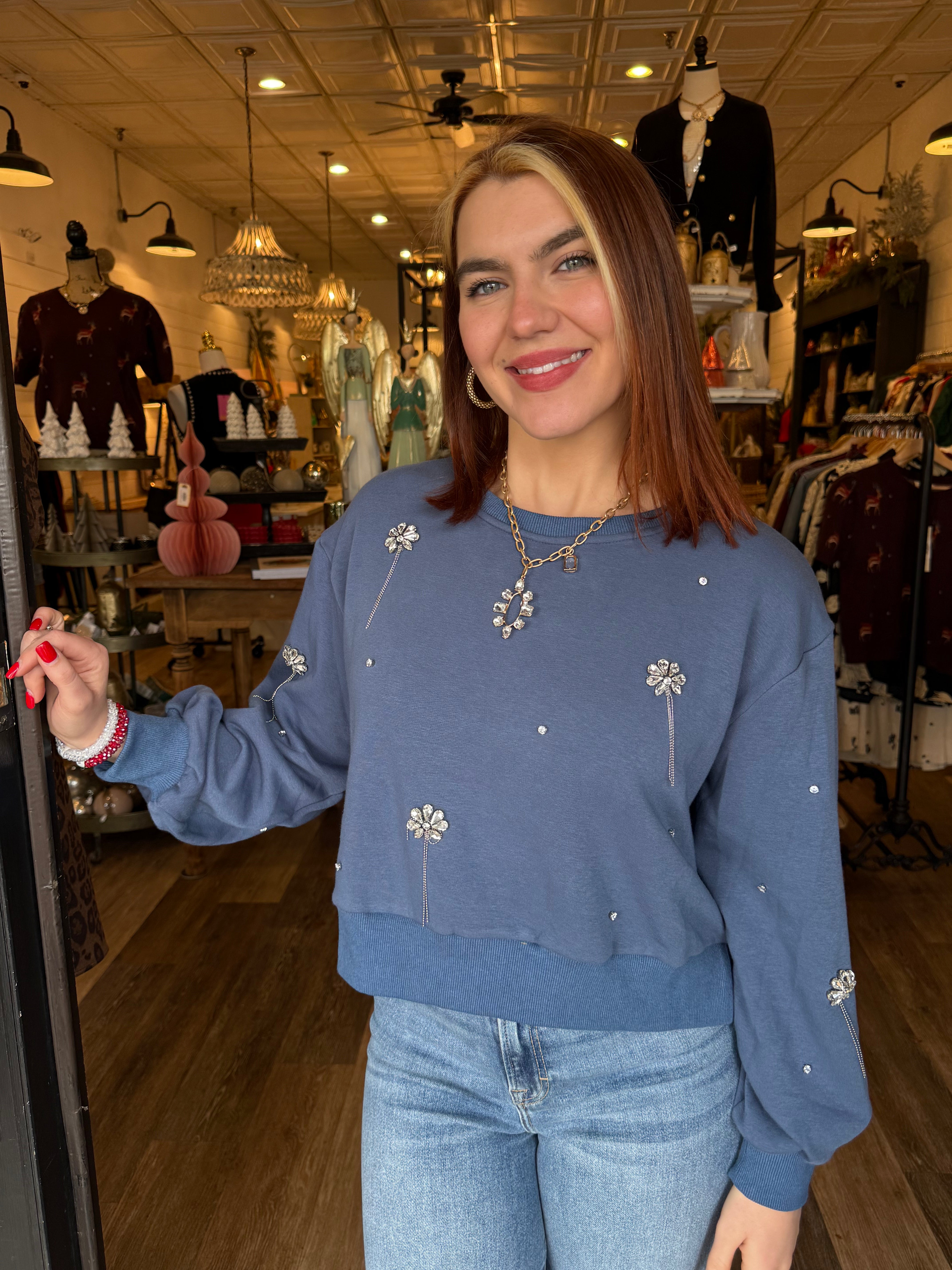 Cozy meets glam in the Lainey Embellished Sweatshirt, your new go-to statement top for the season. Designed in a soft knit sweatshirt fabric with comfortable long sleeves, this style stands out with eye-catching embellished detailing that adds just the right amount of sparkle.