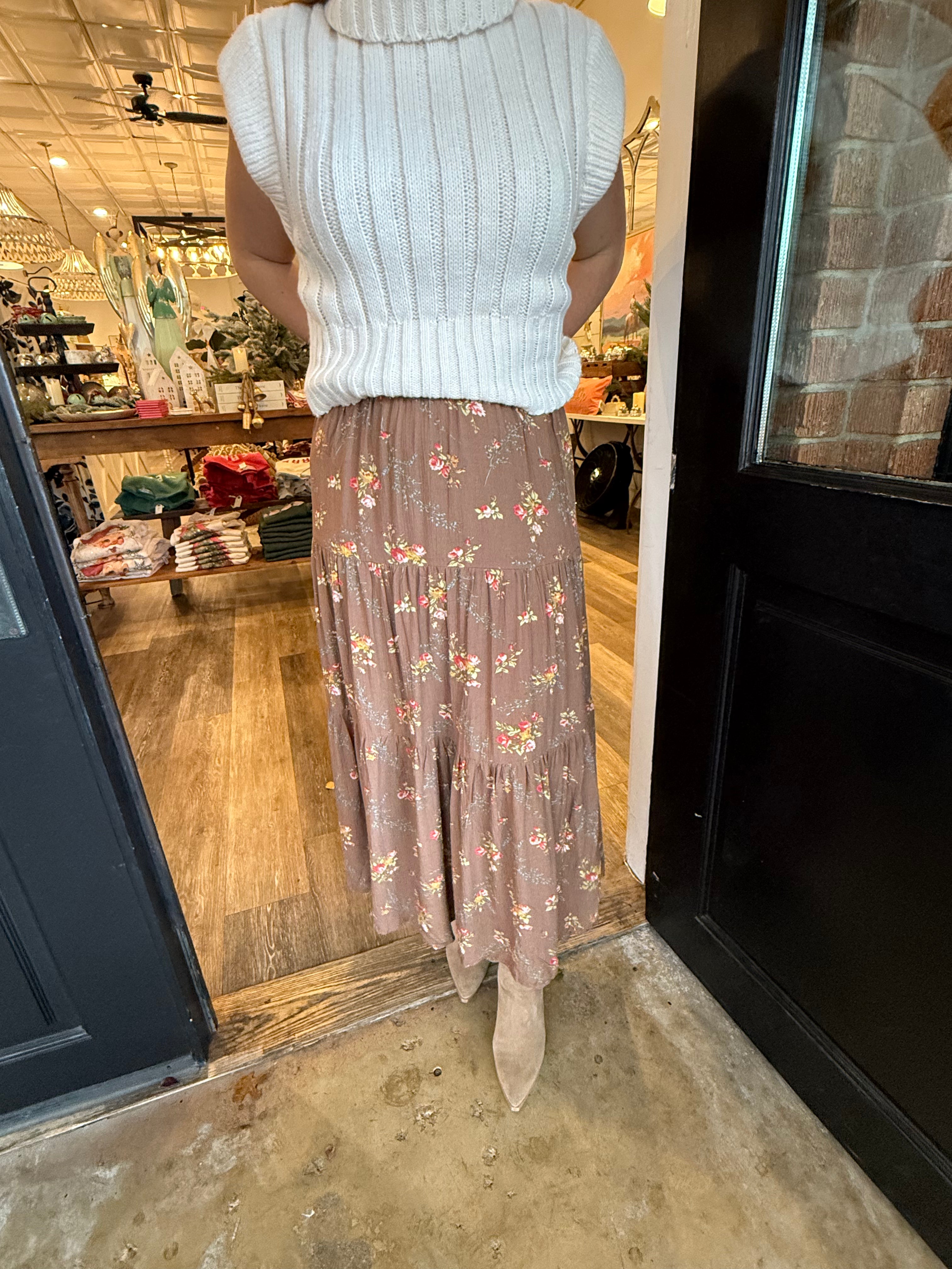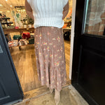 Soft, flowy, and beautifully detailed—the Leticia Brown Floral Midi Skirt is the perfect blend of comfort and charm. The tiered silhouette moves beautifully, while the elastic waist keeps the fit easy and flattering.