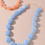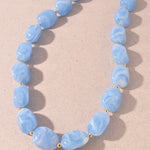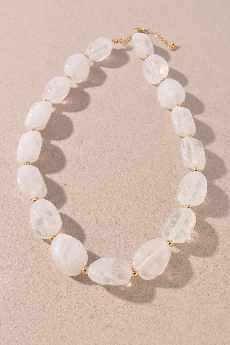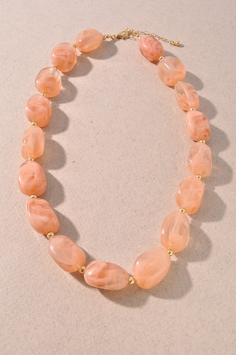 Soft color, timeless shape, and effortless charm. This Marbled Bead Statement Necklace features smooth, oval marbled beads accented with delicate gold spacers for a polished finish. Designed to sit beautifully at the neckline, it’s the perfect statement piece to dress up everyday outfits or add a fresh pop of color to dresses and blouses. Finished with an extender for easy, adjustable wear.