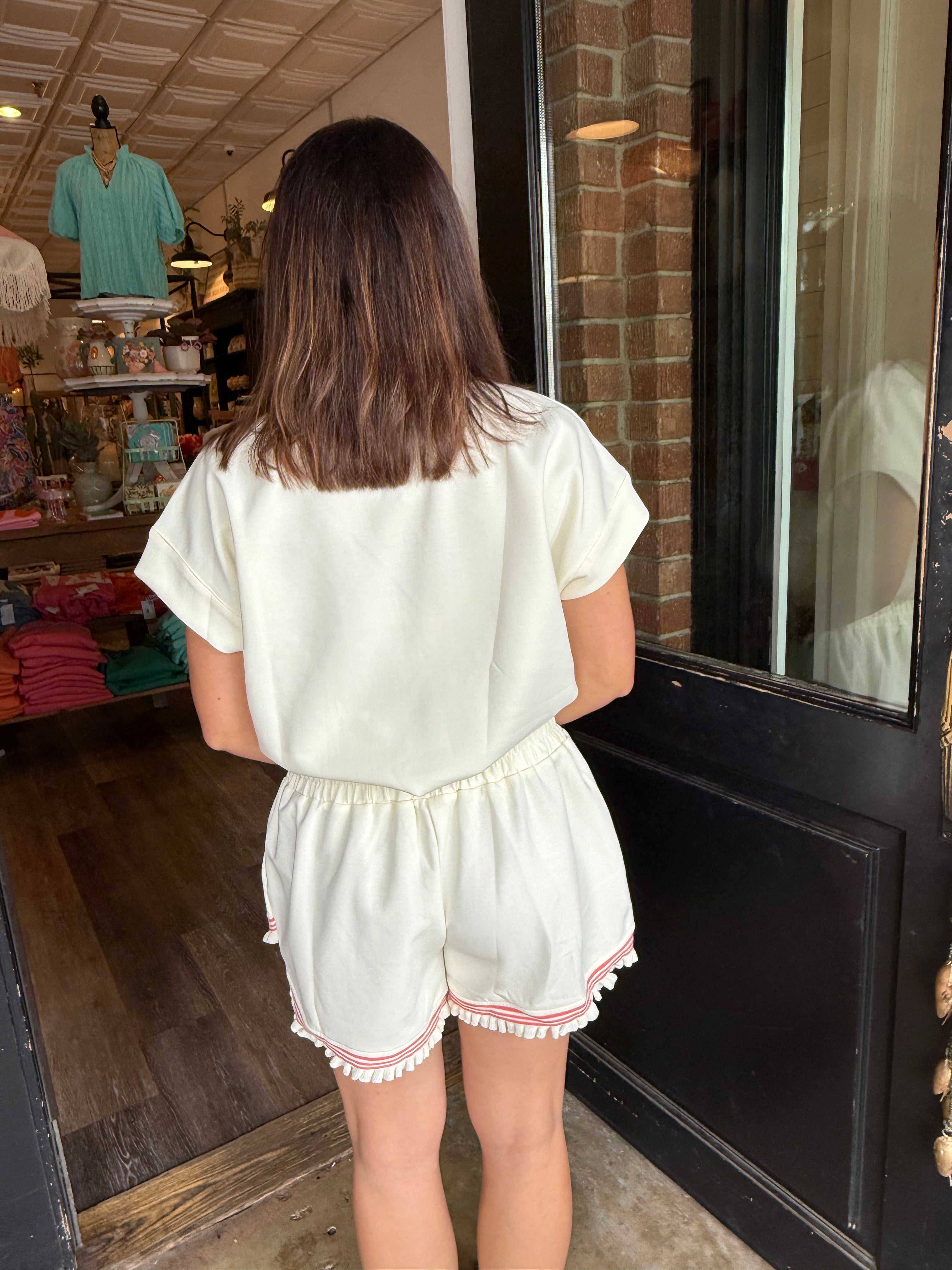 🩳 Create a matching set with the Lila Ruffle Trim Shorts and slides