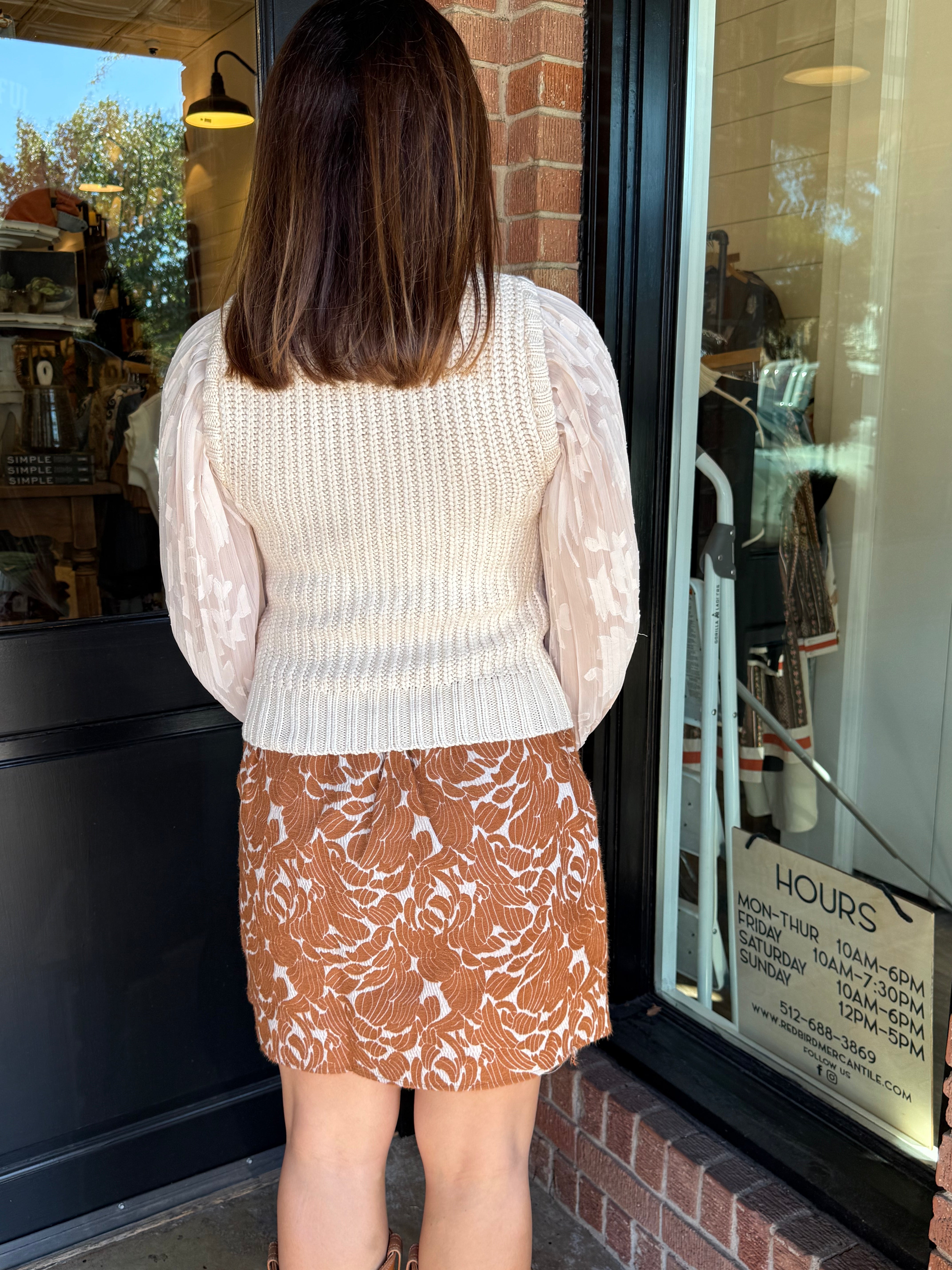 Feminine and flattering, the Lillian Suede Skirt features subtle leaf-like detailing that adds texture and charm to its soft, faux suede finish. It’s the perfect piece for fall styling — easy to dress up or wear casually through the season.