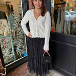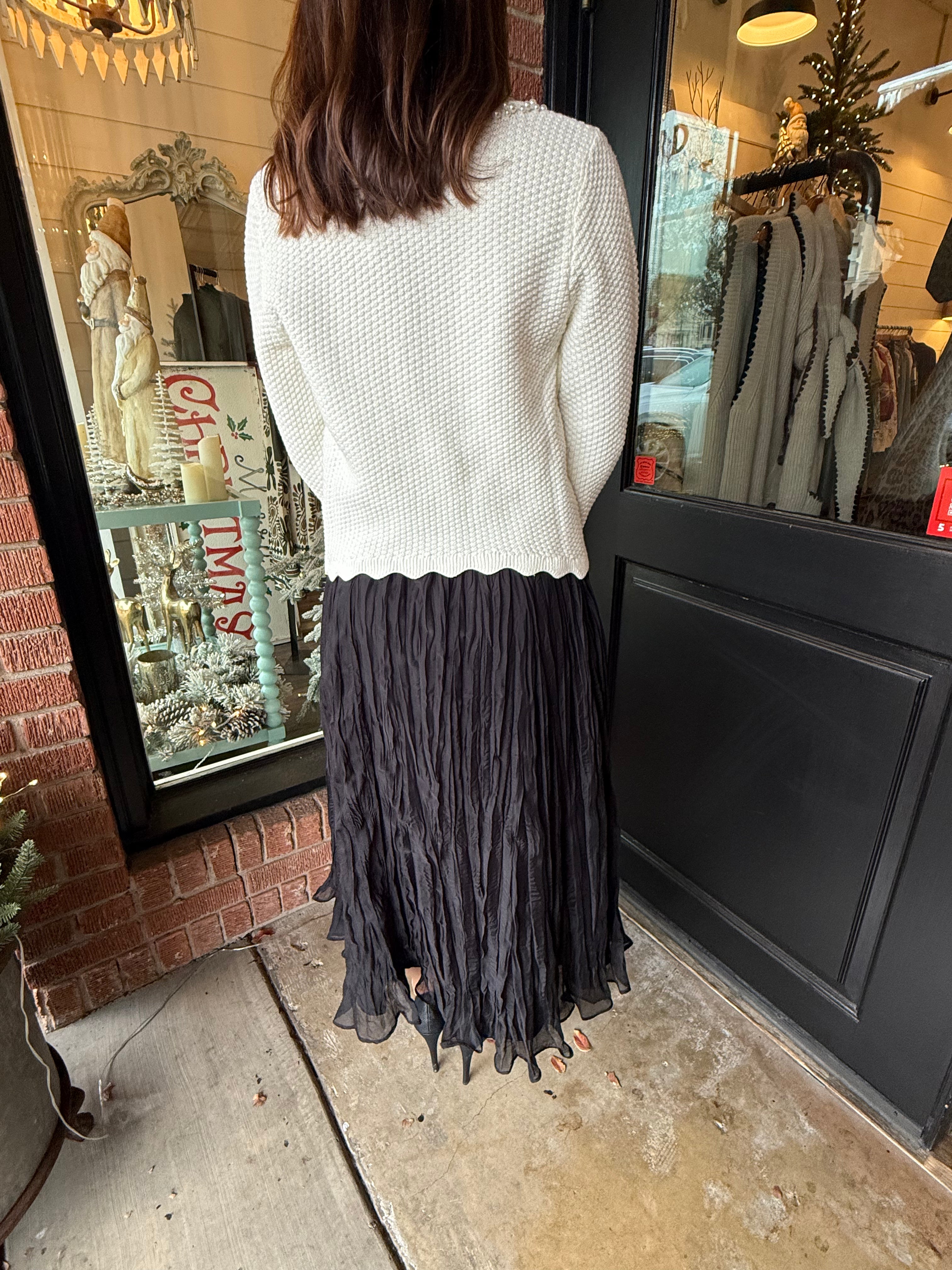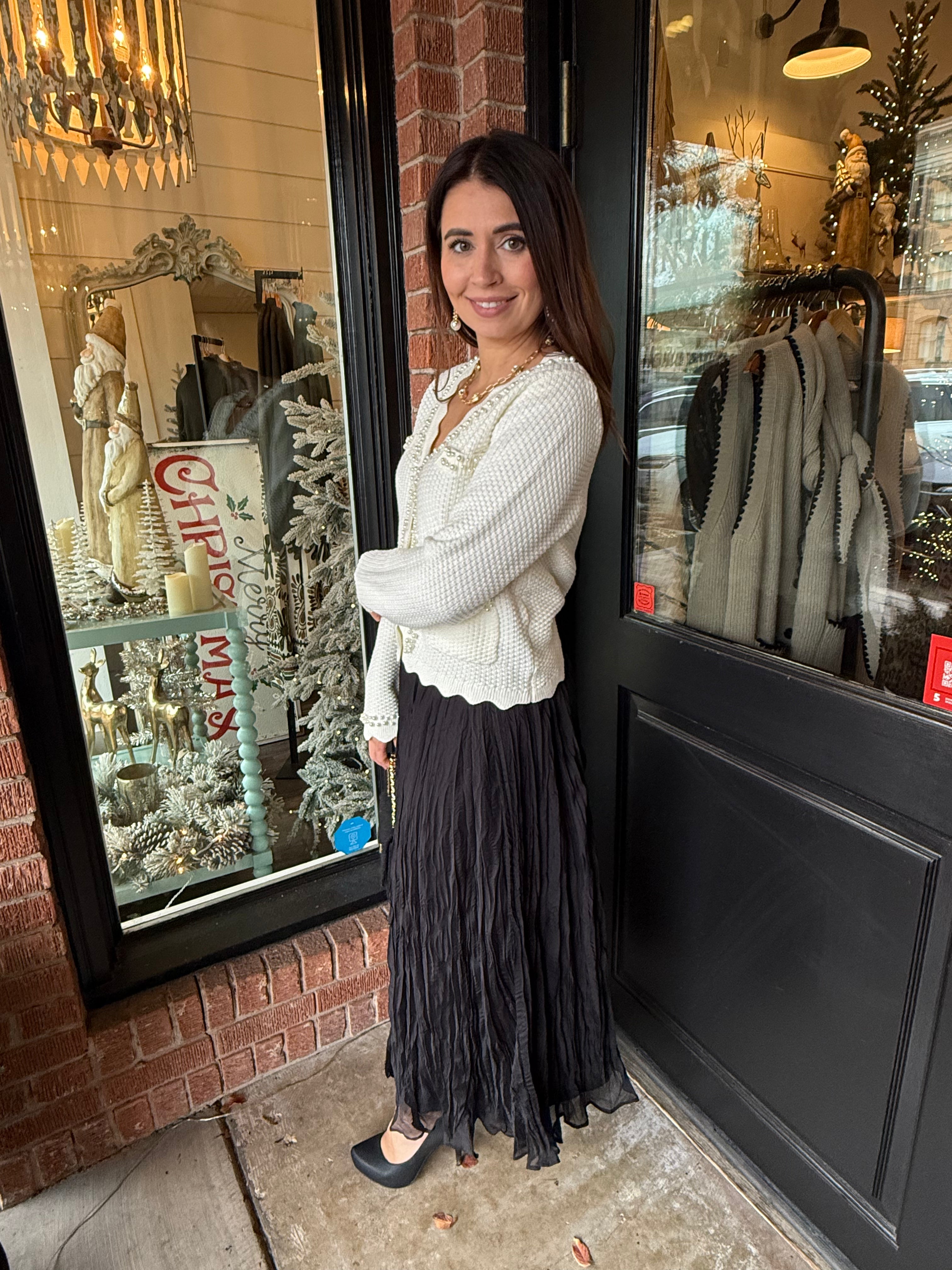 Soft, flowy, and effortlessly feminine — the Linda Crinkled Chiffon Midi Skirt is the perfect piece for adding a touch of elegance to your everyday style. ✨ Designed with lightweight crinkled chiffon for beautiful movement, this skirt pairs classic comfort with boutique charm. Whether styled casually or dressed up, it’s a timeless must-have for every season.
