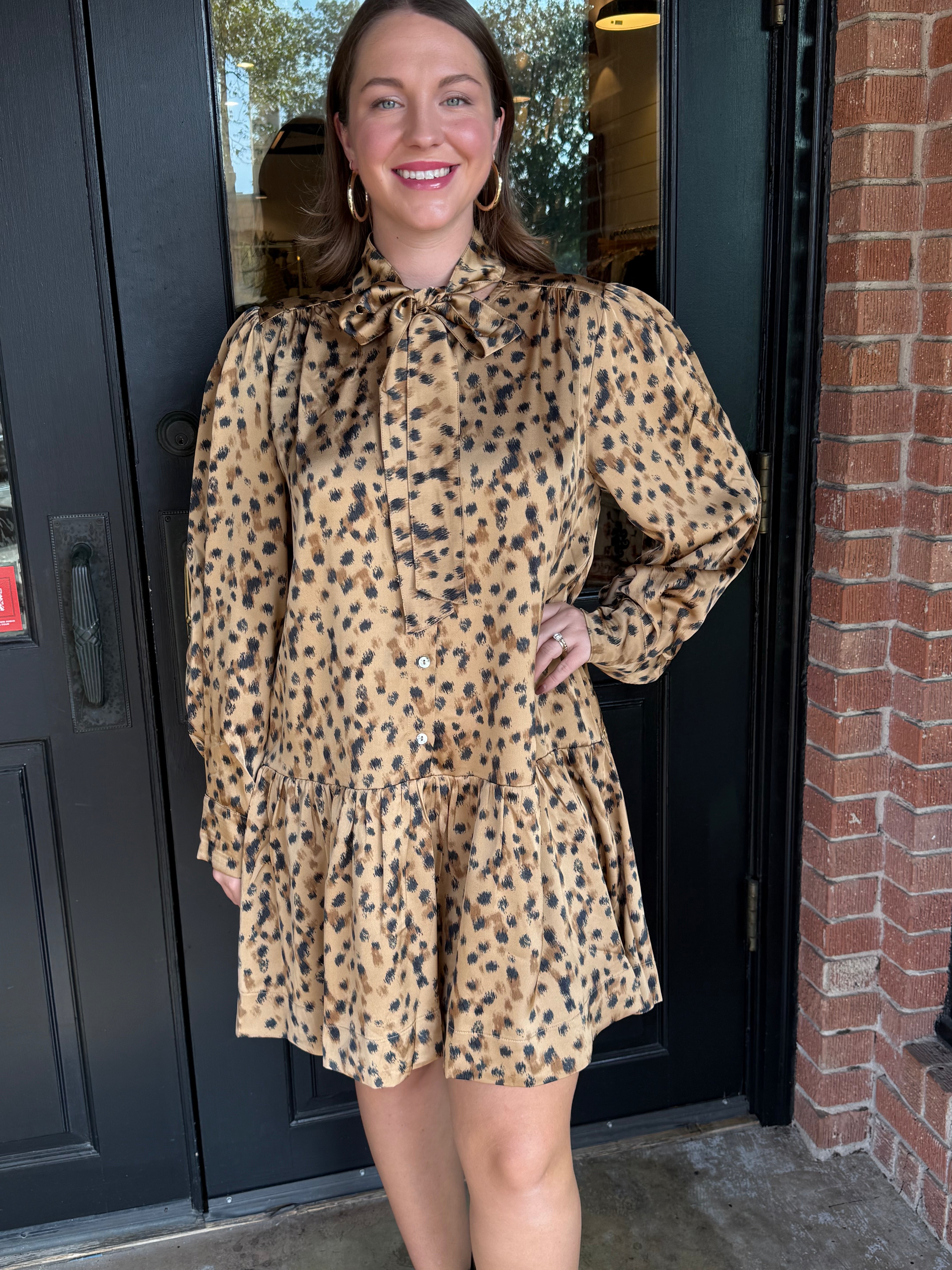 Lindsy Leopard Tie Neck Mini Dress