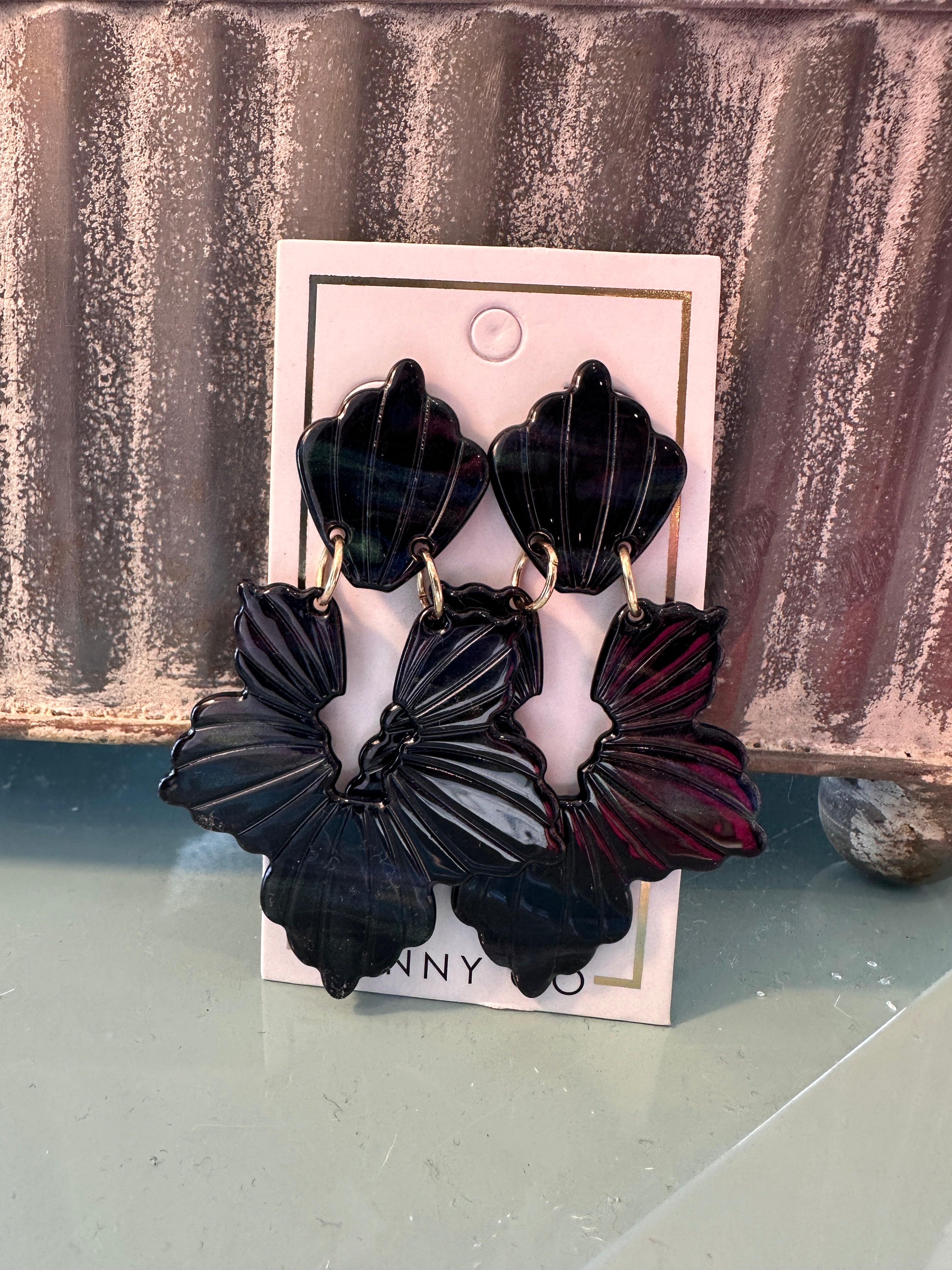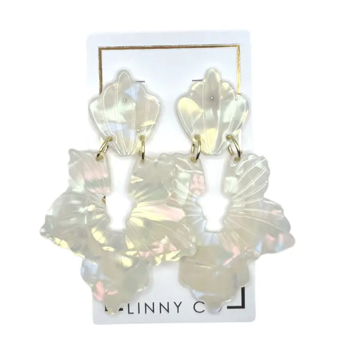 LINNY CO jewelry is safe for sensitive ears, light weight and made to last. Made from 100% surgical-grade stainless steel and eco-friendly acetate, LINNY CO is always copper and nickel free. The Michelle earring is a shell inspired earring. It is 75mm long, a statement.