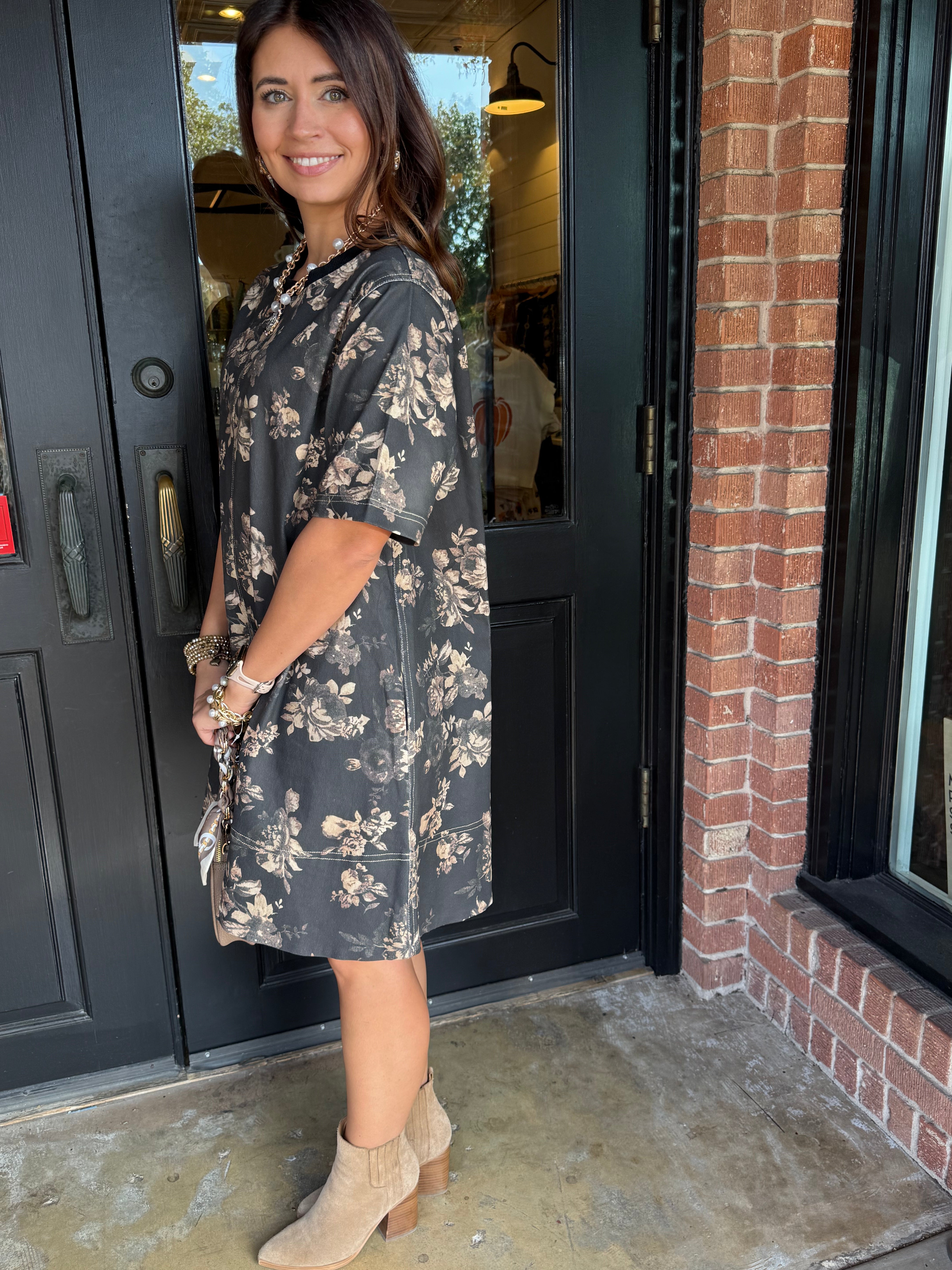 The Lori Floral Mini Dress is a sweet and effortless style for any occasion. Featuring a round neckline, short sleeves, and half back neck zipper, this mini dress offers a flattering and comfortable fit. Its soft floral print makes it perfect for casual days, brunch dates, or layered with a jacket for cooler weather.