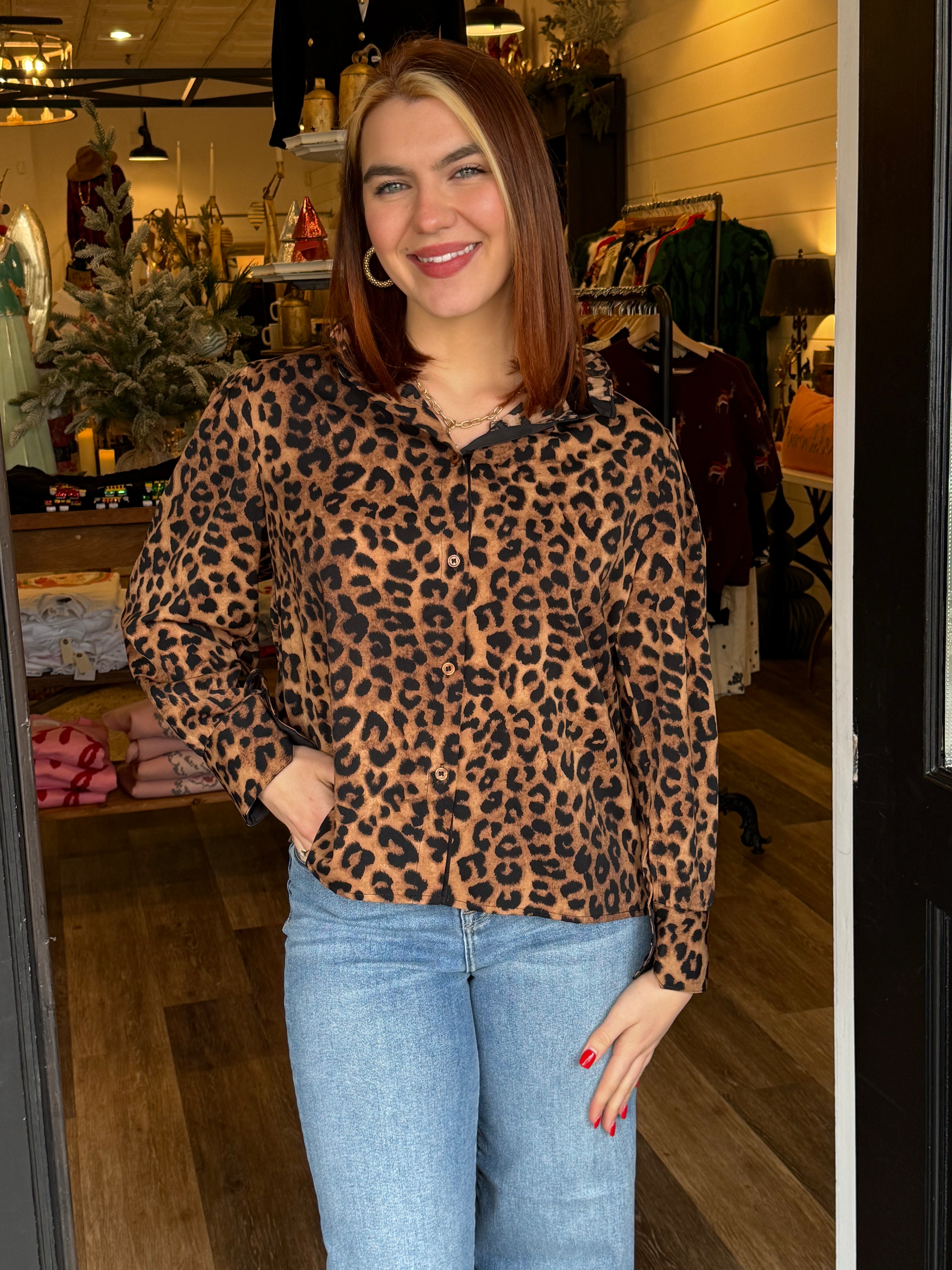 Chic, bold, and beautifully feminine — the Lucia Top is your new statement blouse for workdays, weekends, and everything in between. Designed in a striking animal print, this top features a soft ruffle neckline and a classic button-up front that adds polish and ease. The silhouette is relaxed and flattering, making it an effortless pairing with denim, trousers, or skirts.