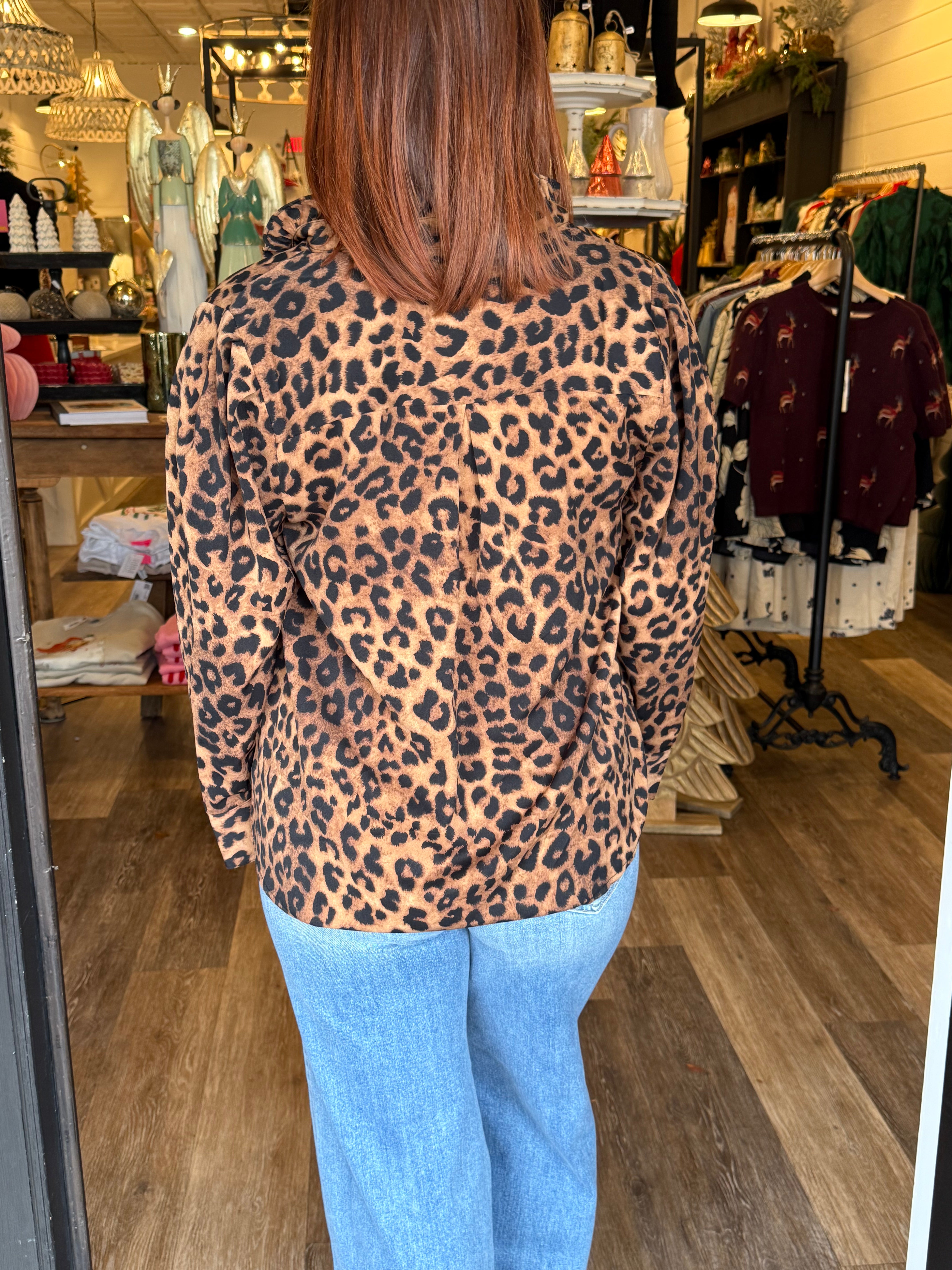 Lucia Animal Print Ruffle Neck Button-Up Top