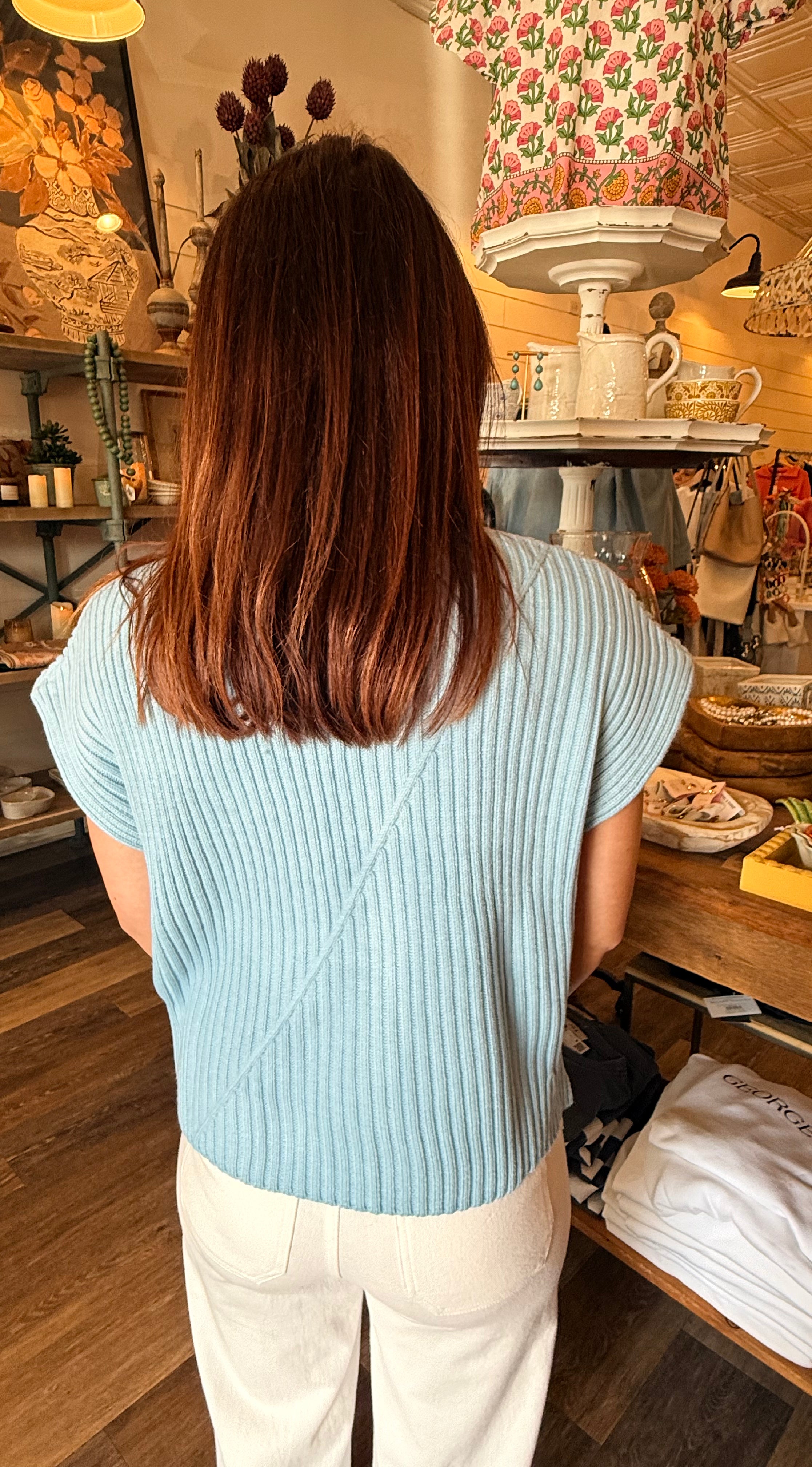The Macey Ribbed Top is a versatile essential with a flattering, easy-to-wear fit. Designed with a soft ribbed texture and short sleeves, this top is perfect for layering or wearing on its own. Simple, comfortable, and timeless—it's a piece you’ll reach for again and again.