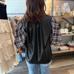 The Madilyn Top is where edgy meets classic — a stunning mix of faux leather and plaid fabric that adds instant personality to your look. With its soft puff sleeves and sleek body, this top is perfect for dressing up denim or pairing with tailored pants for a standout outfit.