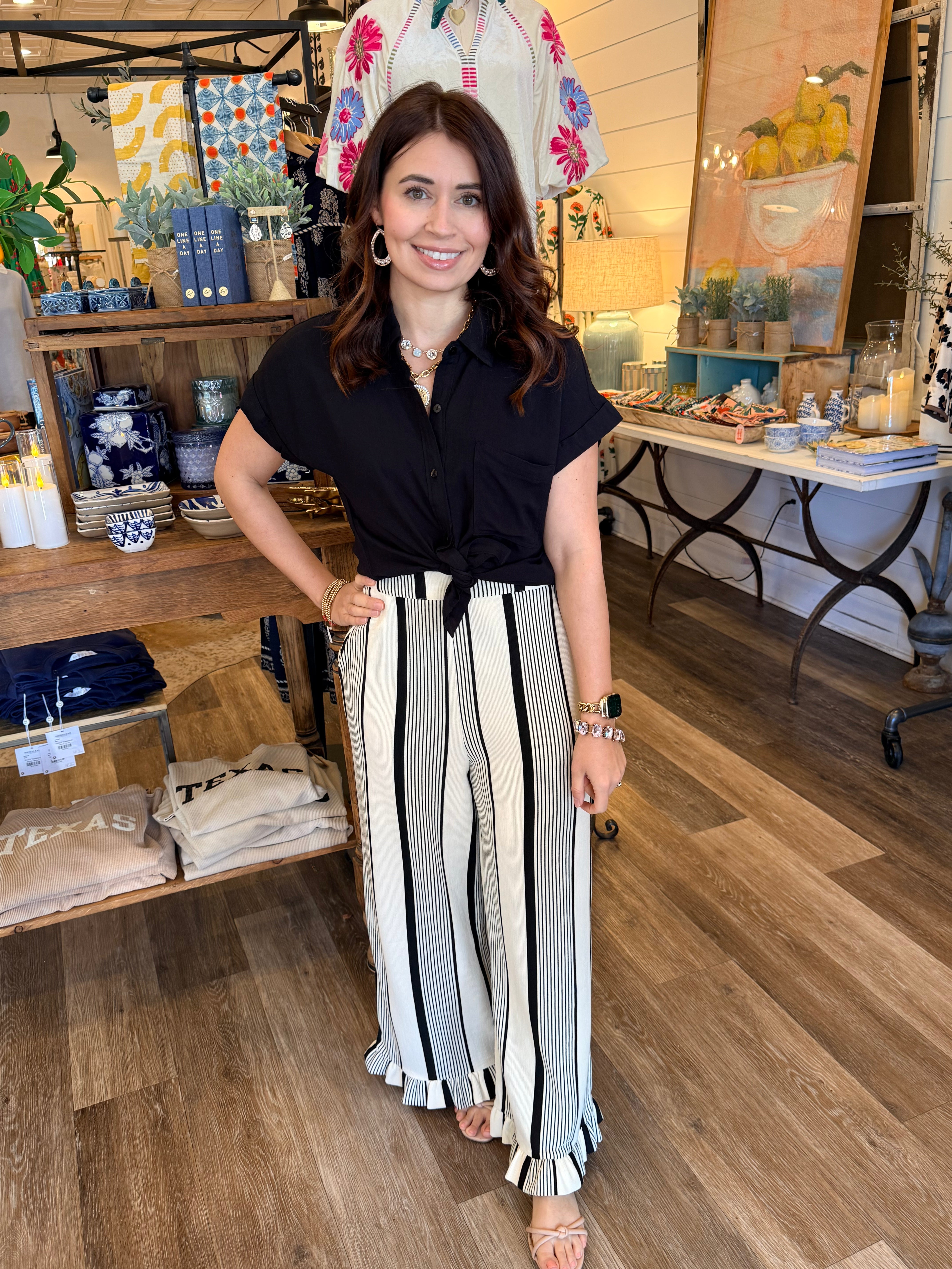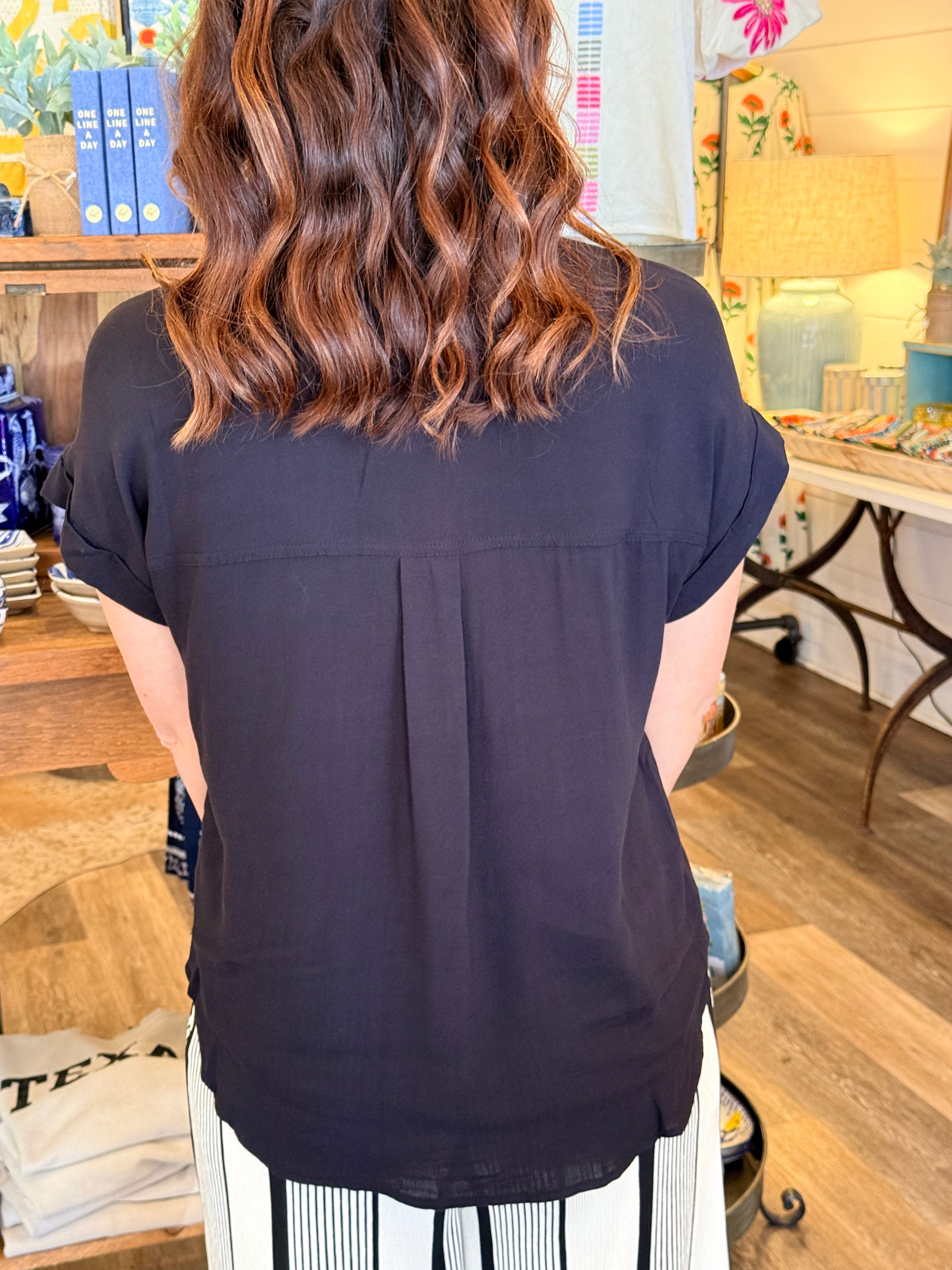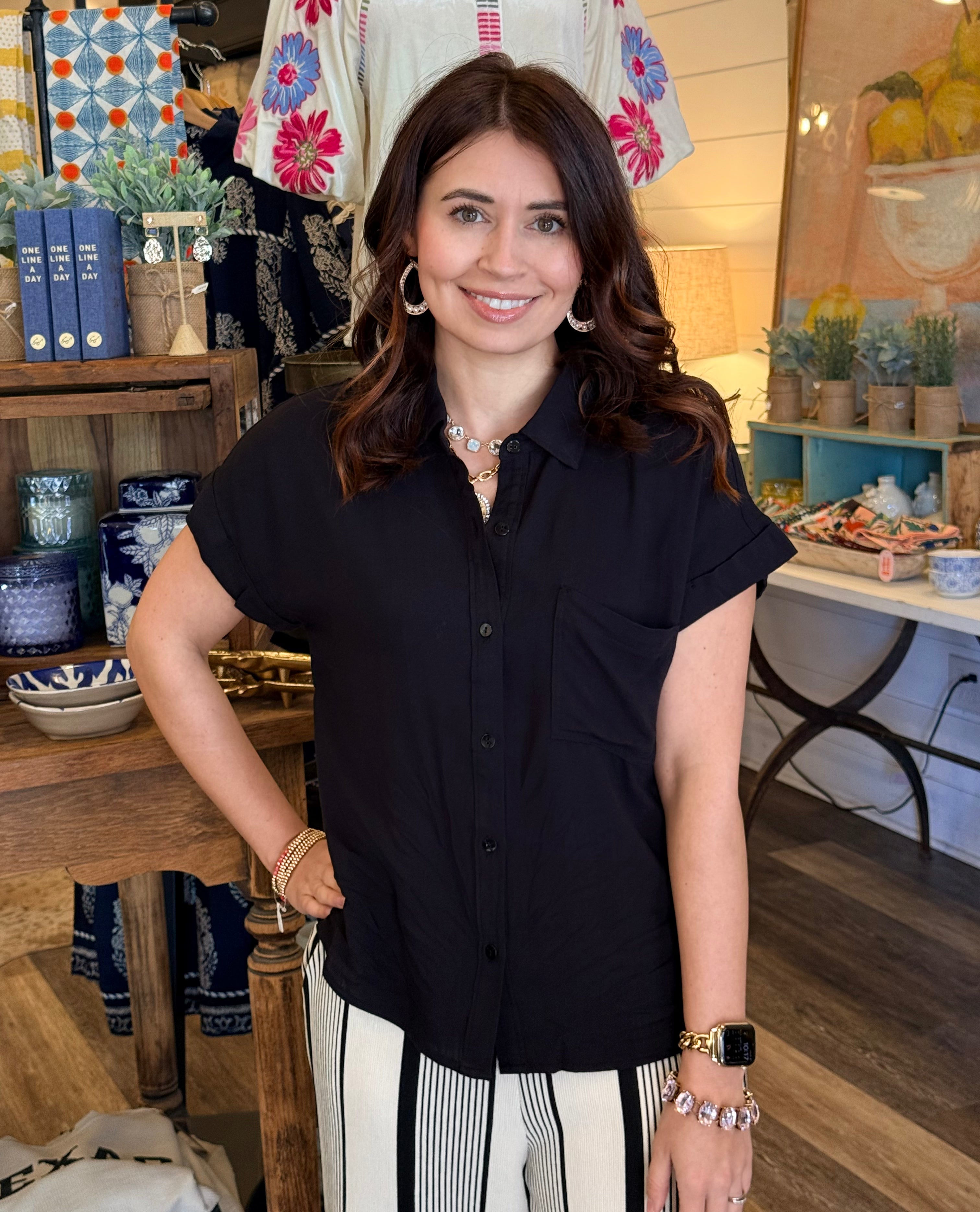Meet your new go-to classic with an easy, everyday feel. The Margie Button Down Shirt features a crisp collared neckline, short sleeves, and a functional front pocket for that timeless, effortless look. Lightweight and breathable, this piece is perfect for dressing up with trousers or keeping it casual with denim.