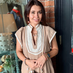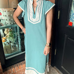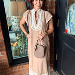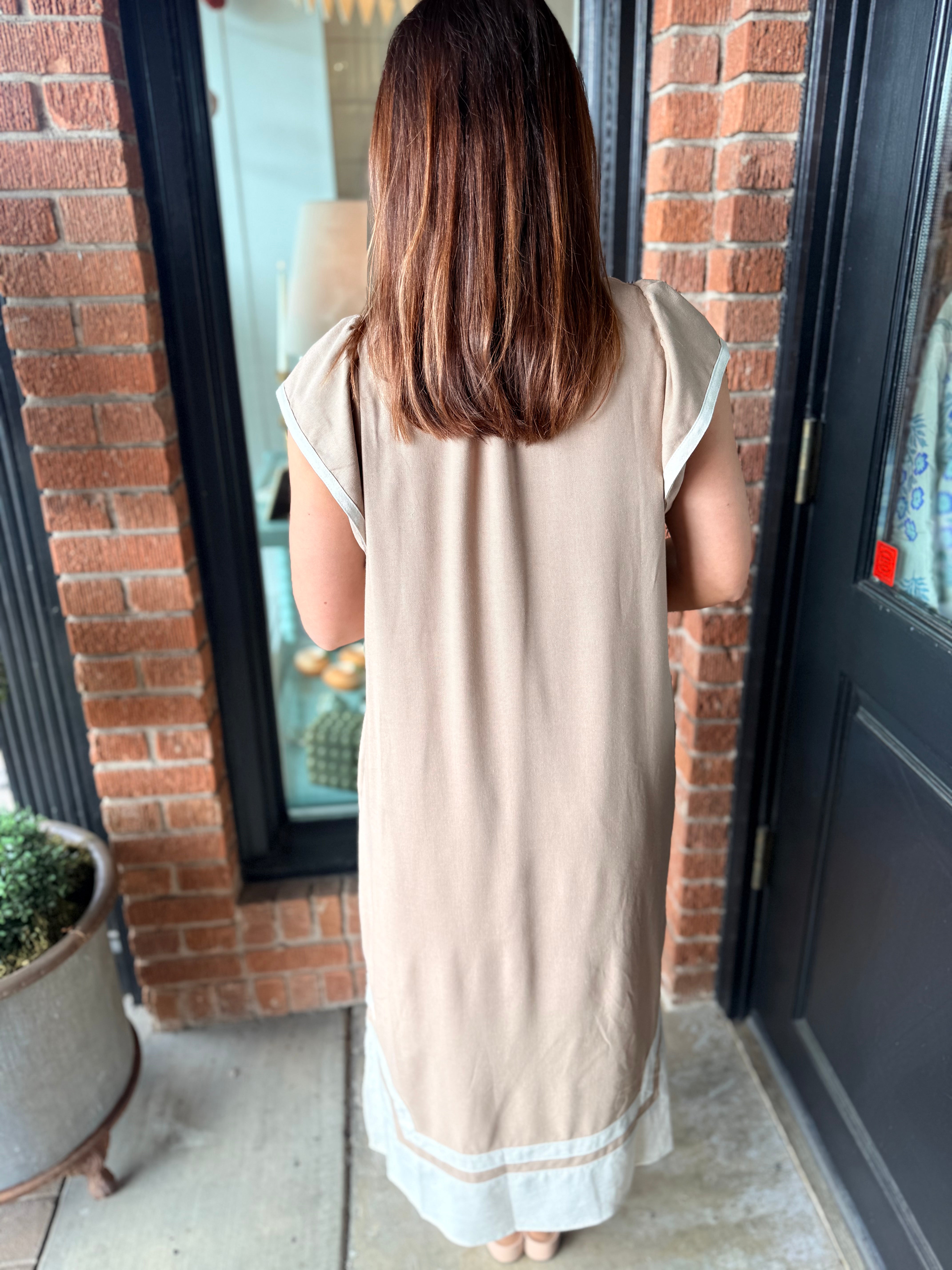 Effortless, airy, and beautifully detailed ā the Megan Linen Midi Dress is a warm-weather staple with a polished feel. Designed with a flattering V-neckline, this midi features contrasting binding accents that add a clean, elevated touch. Side slits allow for easy movement, while the fully lined interior ensures comfortable, confident wear all day long.