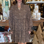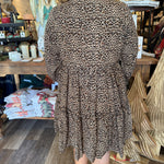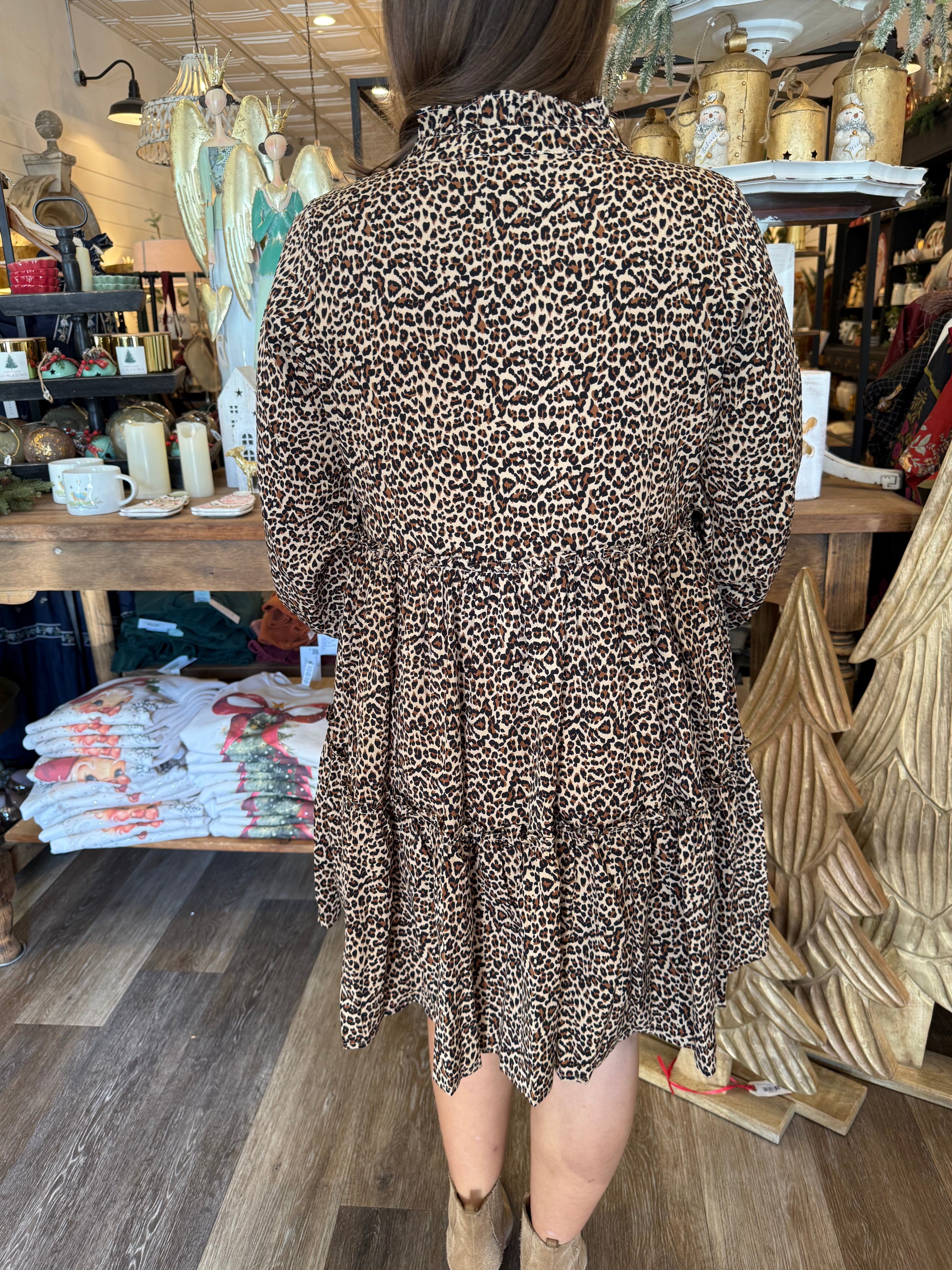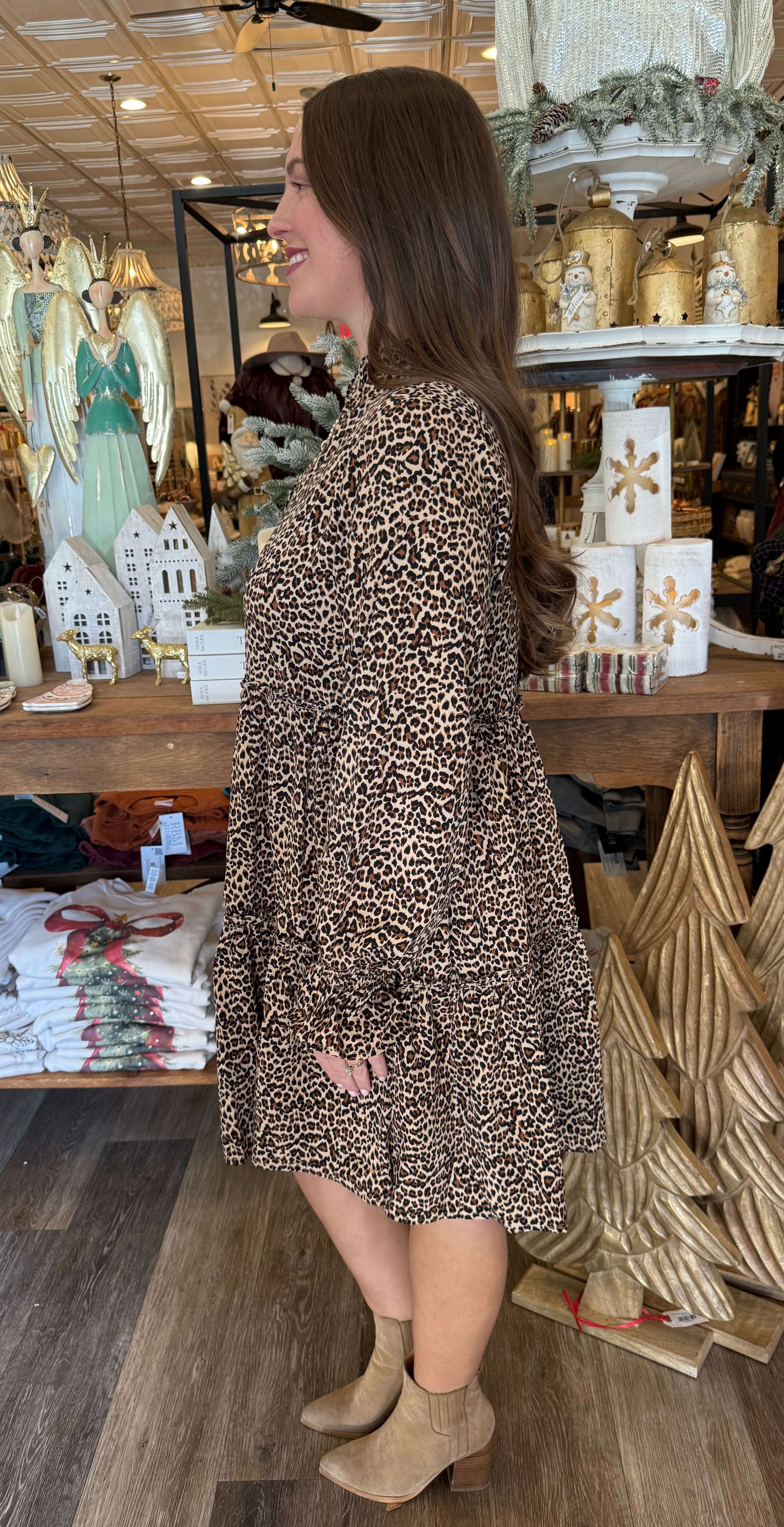 Megan Long Sleeve Woven Leopard Print Tiered Mini Dress