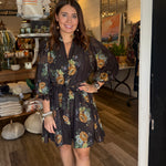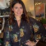 Feminine, elegant, and full of charm — the Melissa Floral Dress is the perfect blend of soft sophistication and seasonal style. Featuring a ruffled neckline, gold hook front button detail, and ruffle-cuff long sleeves, this dress is effortlessly flattering and designed to stand out. The lightweight floral fabric drapes beautifully, while the lining ensures comfort and ease.