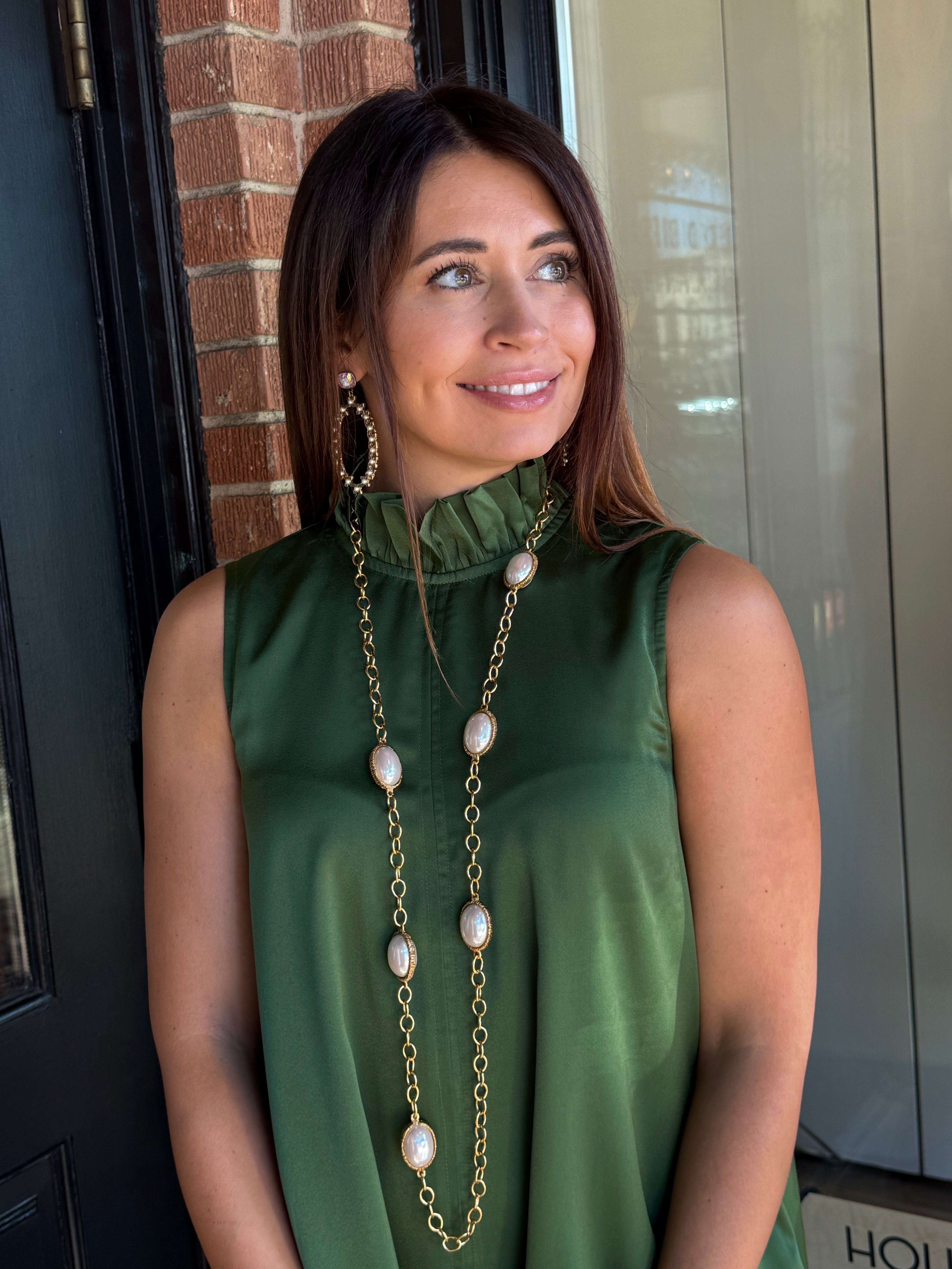 • Tie-back neck with button closure