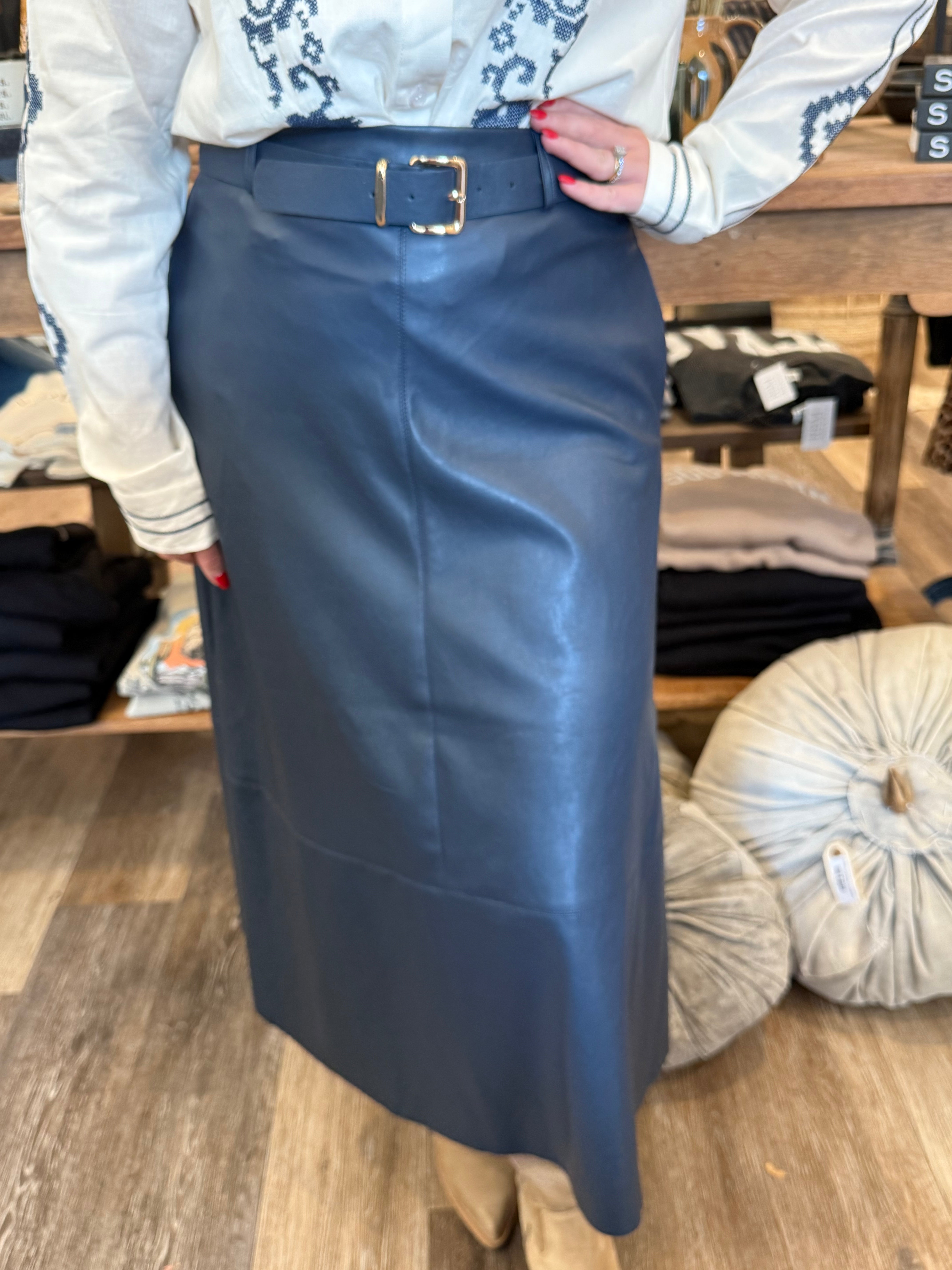Turn heads in the Millie Faux Leather Midi Skirt, a chic and versatile piece perfect for dressing up or down. Crafted from a luxurious faux leather blend, this skirt features a flattering midi length, a hidden back zipper for a sleek silhouette, and a statement gold buckle belt that cinches the waist. Lightweight yet structured, it’s ideal for pairing with a tucked-in blouse, sweater, or casual tee for a modern, fashion-forward look.