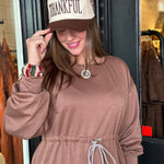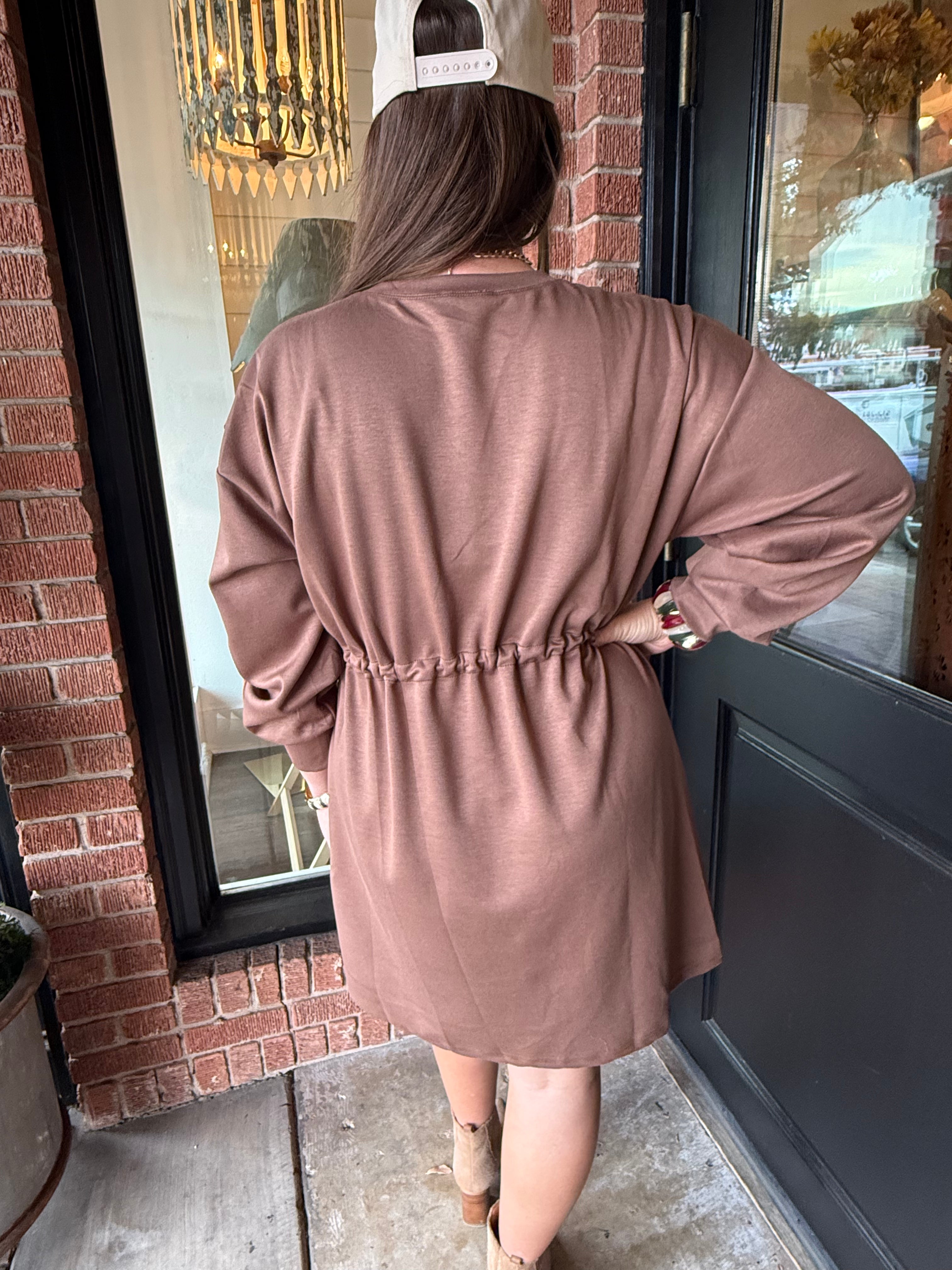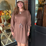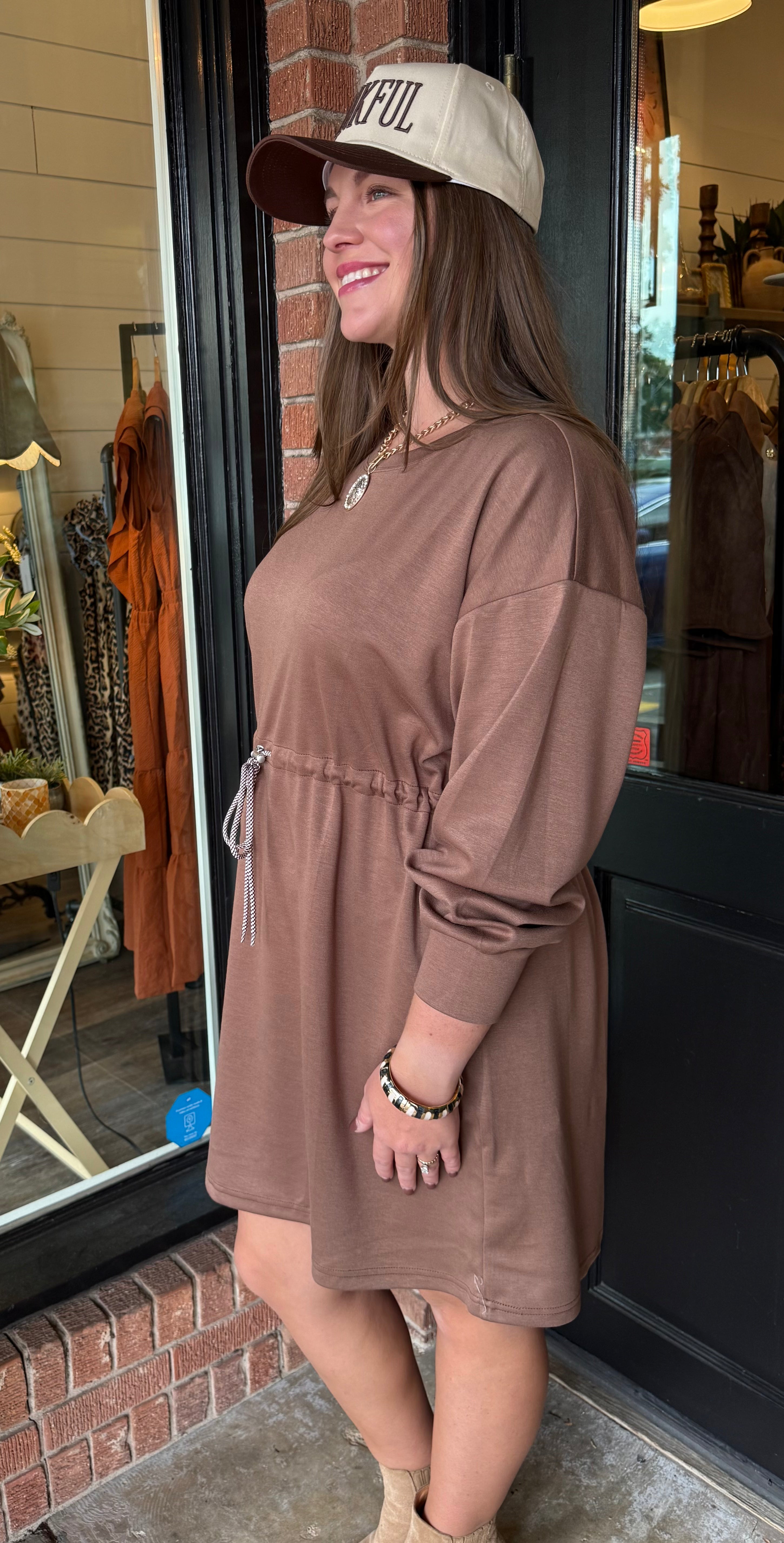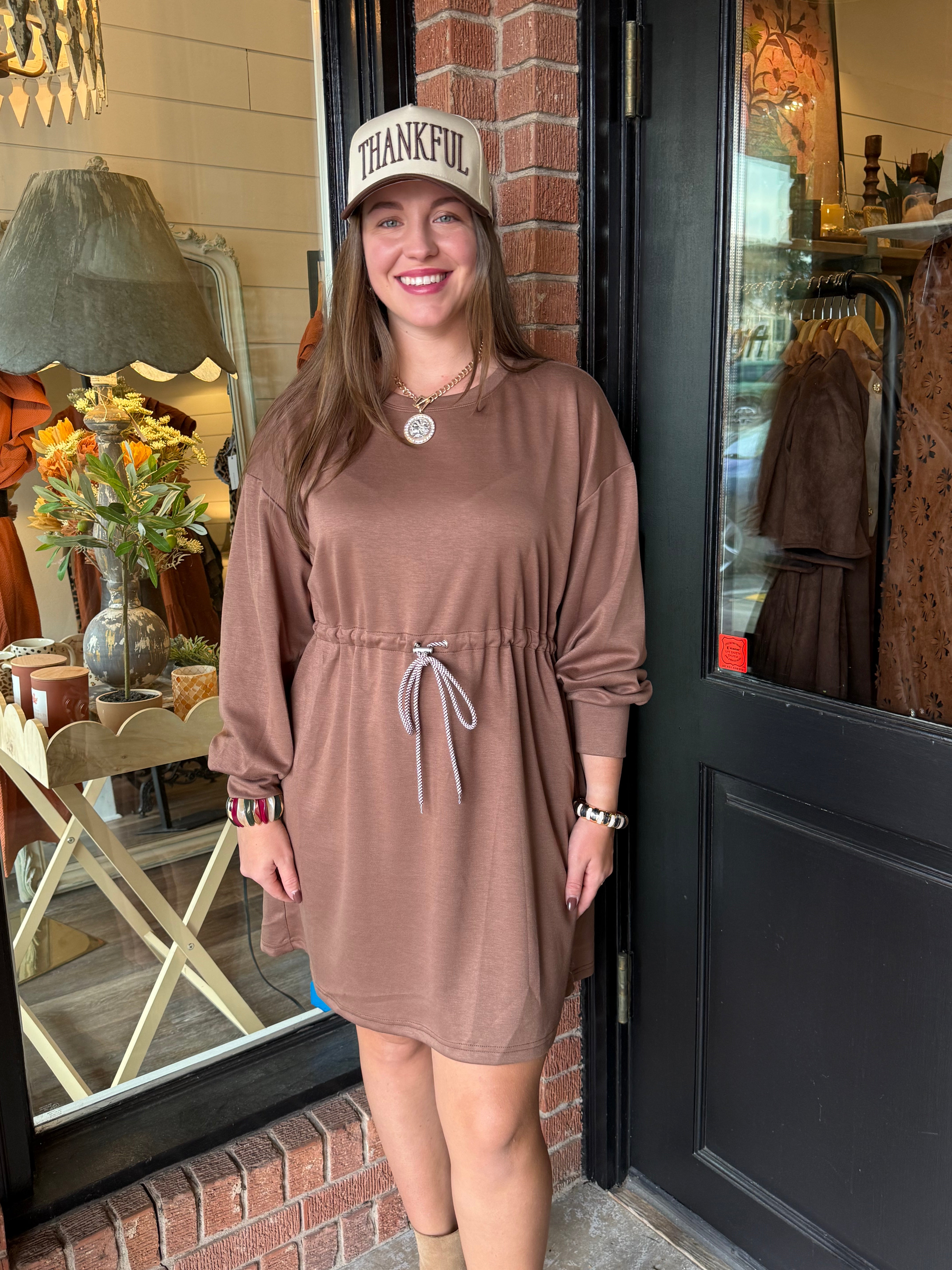 Designed with a flattering drawstring waist and easy side pockets, this solid casual dress is perfect for running errands, weekend plans, or relaxing days on the Square. Its soft fabric and relaxed fit make it an instant favorite for any season.