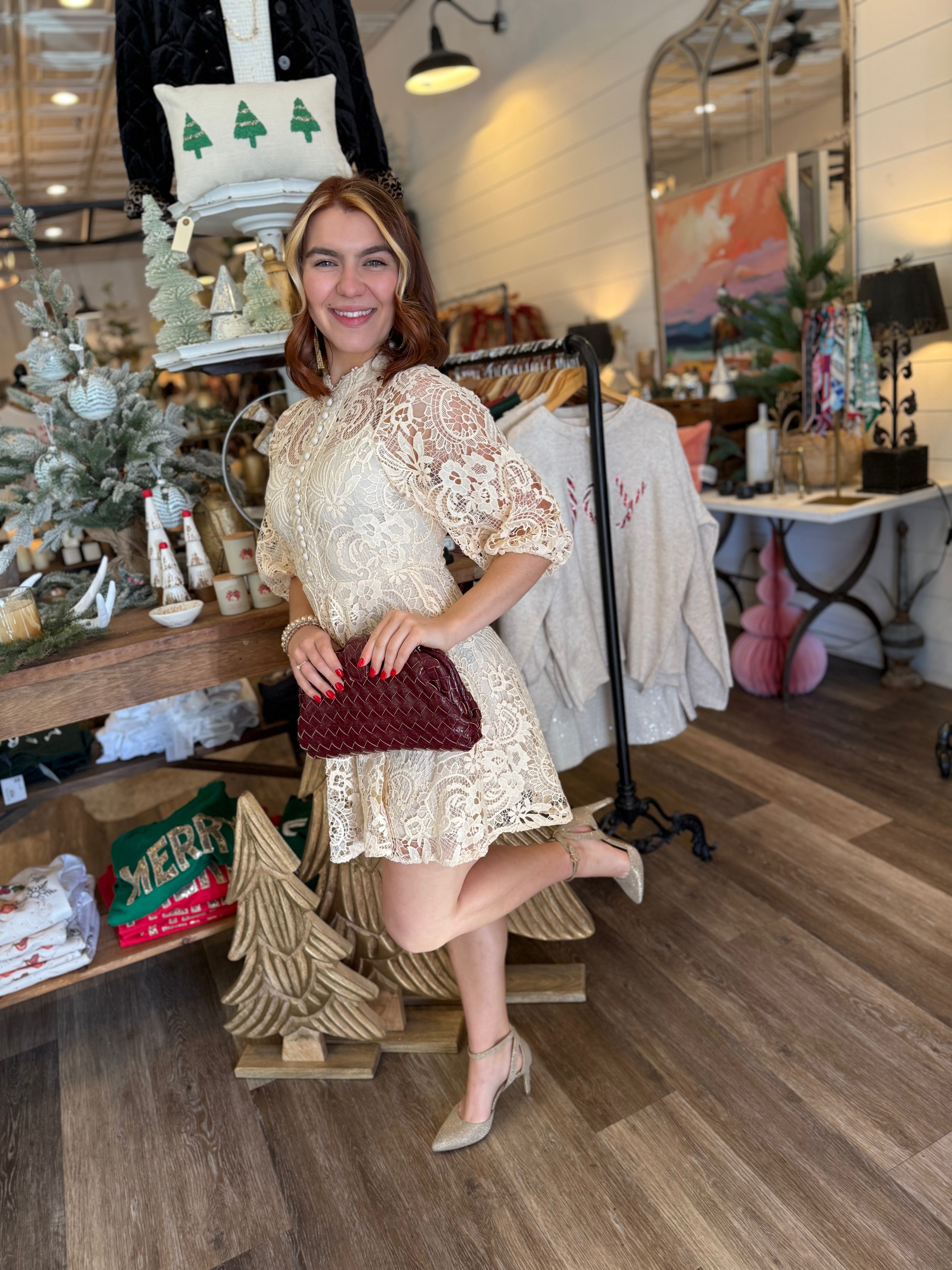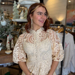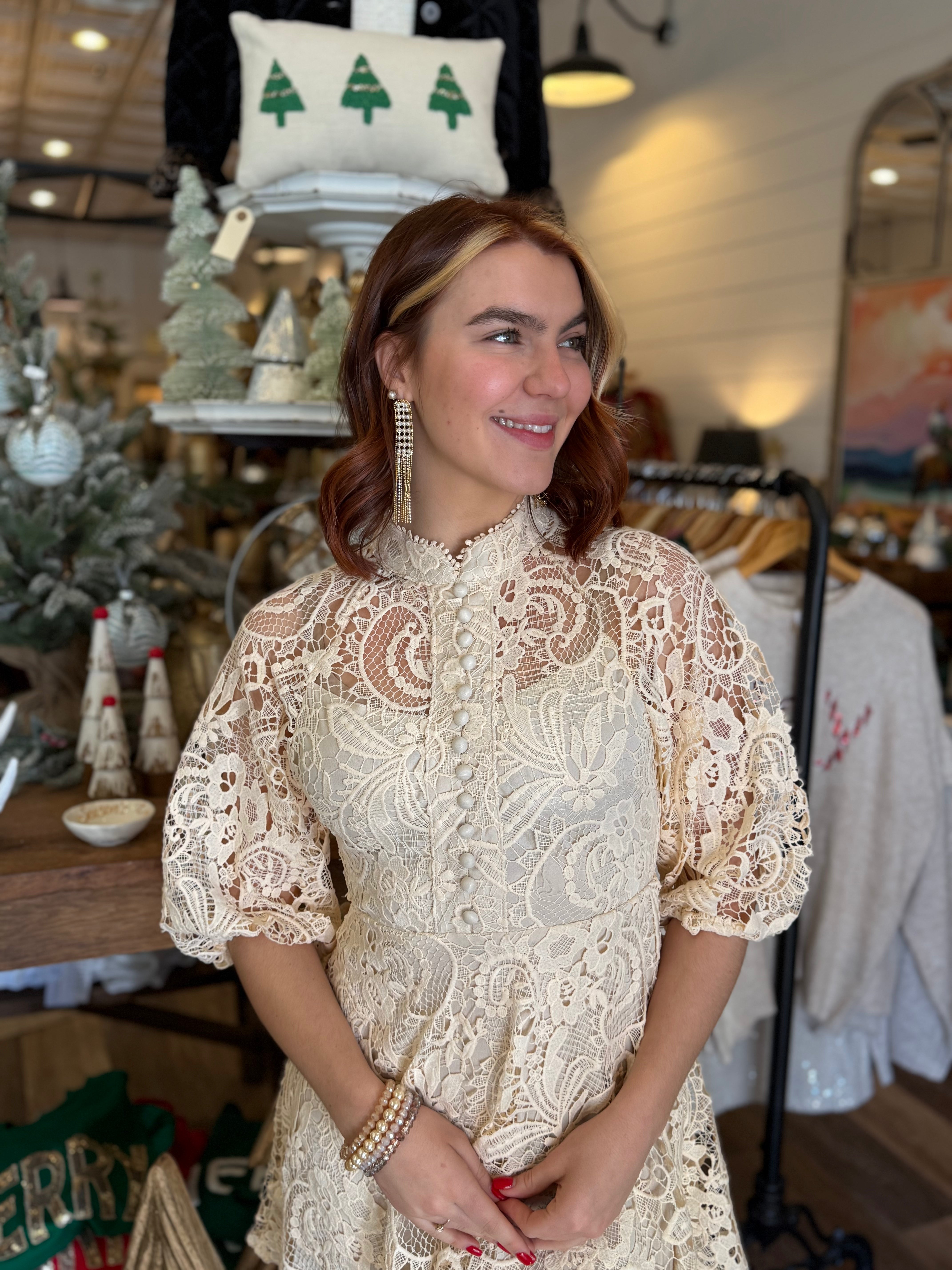 The Molly is a timeless lace dress with a beautiful, feminine silhouette. Made from 100% polyester and fully lined, this style features delicate upper faux buttons for a polished look, a hidden back zipper for easy dressing, and soft lace detailing throughout. Elegant yet effortless — perfect for special occasions, church, showers, or date nights.