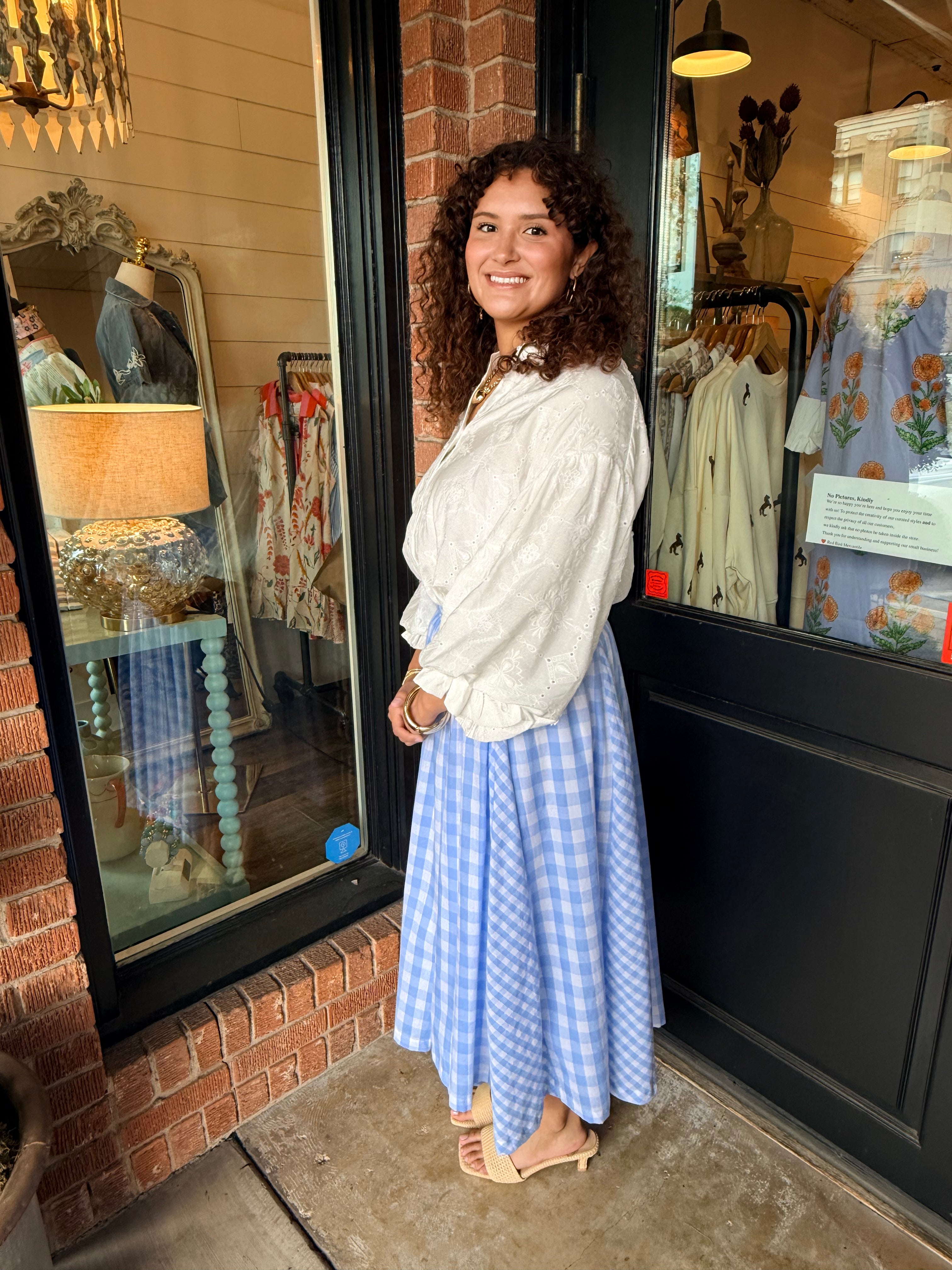 Nancy Gingham Midi Skirt