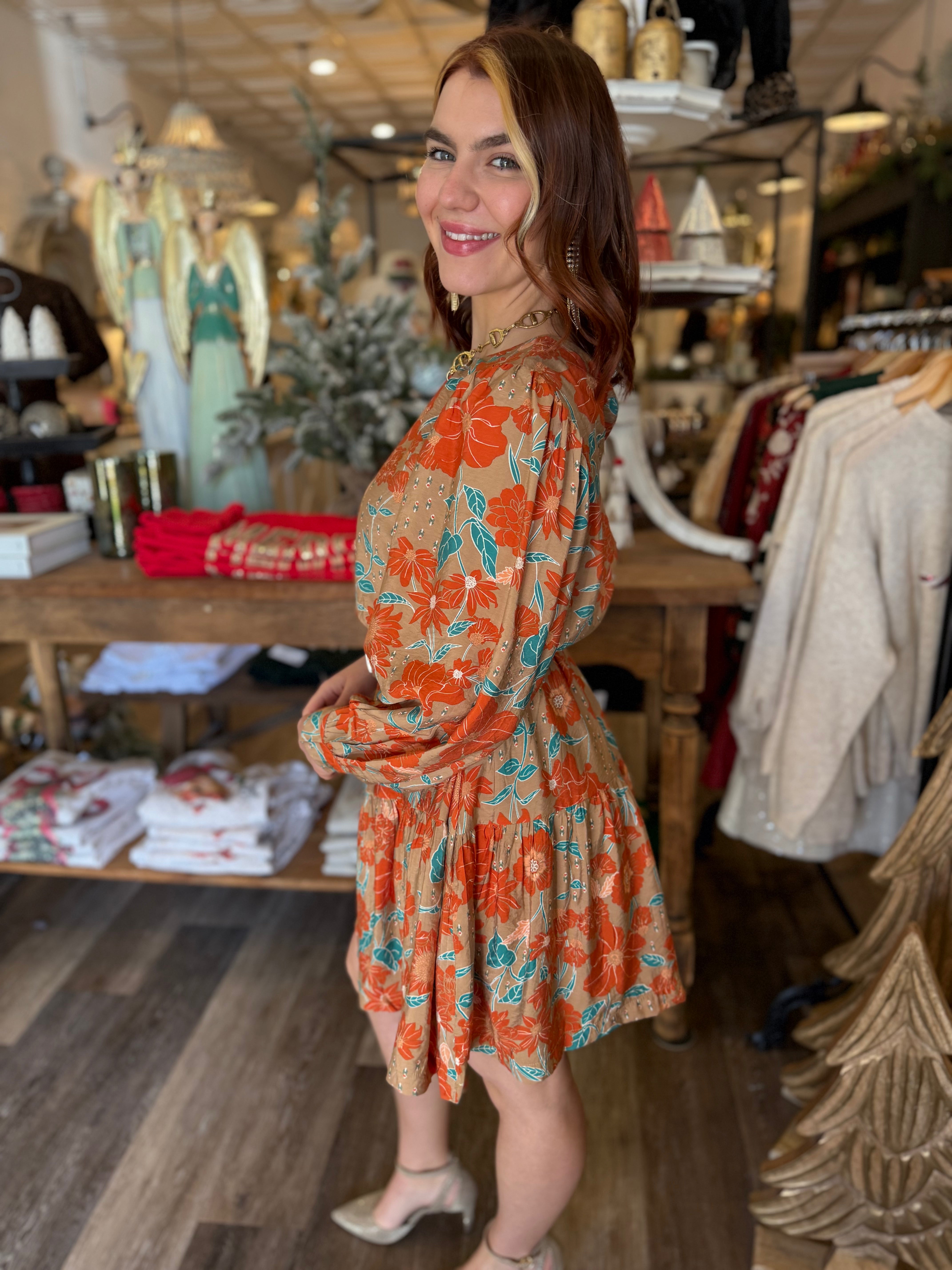 Sweet, feminine, and full of movement — the Nina Floral Border Print Mini Dress is a standout piece designed with an exclusive floral border print that feels one-of-a-kind. The flattering gathered round neckline brings soft shaping, while the elastic waist creates an easy, comfortable fit that highlights your silhouette. Finished with long puff sleeves and buttoned cuffs, this dress adds graceful volume and charm with every wear.