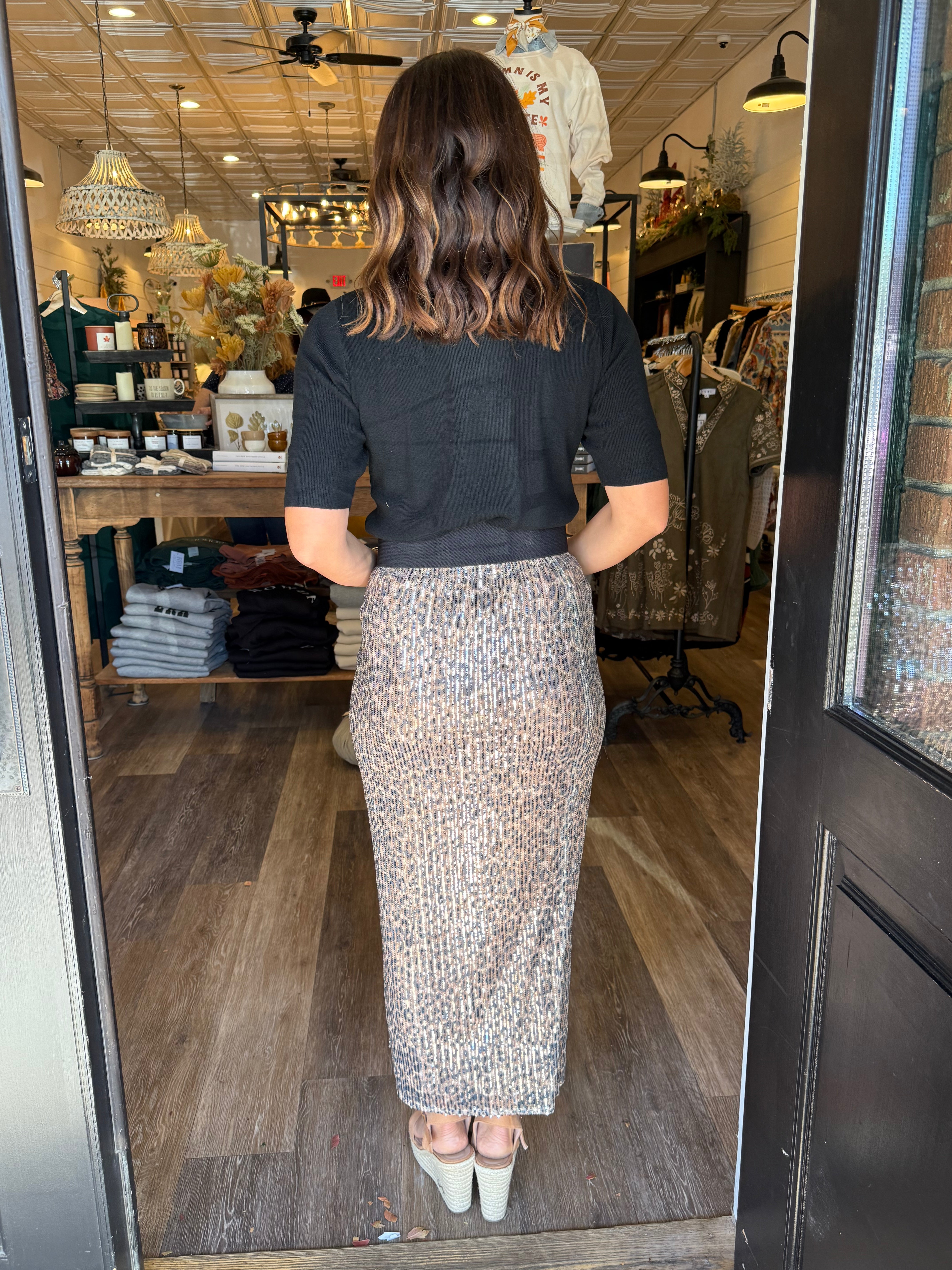 Bold, fun, and full of sparkle — the Norma Sequin Cheetah Skirt is made to turn heads. Featuring an allover sequin cheetah design with a flattering elastic waistband and side slit, this fully lined skirt blends glamour with comfort. Perfect for holiday parties, date nights, or a statement look any day of the week.