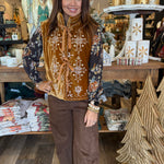 Romantic, rich, and effortlessly chic — our Penelope Velvet Vest adds the perfect touch of texture to your holiday or everyday look. The embroidered detailing and soft velvet finish make it a standout layering piece you’ll love all season long.