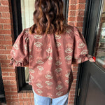 Fresh and feminine, the Poppy Floral Top is an easy piece to dress up or down. Designed with a floral print and a split ruffle neckline with bow detail, it’s full of pretty touches. The elasticated bubble sleeves hit at the elbow for a flattering fit, while the lightweight cotton blend keeps it comfortable all day. Unlined, non-sheer, and easy to style with denim, skirts, or tailored pants.