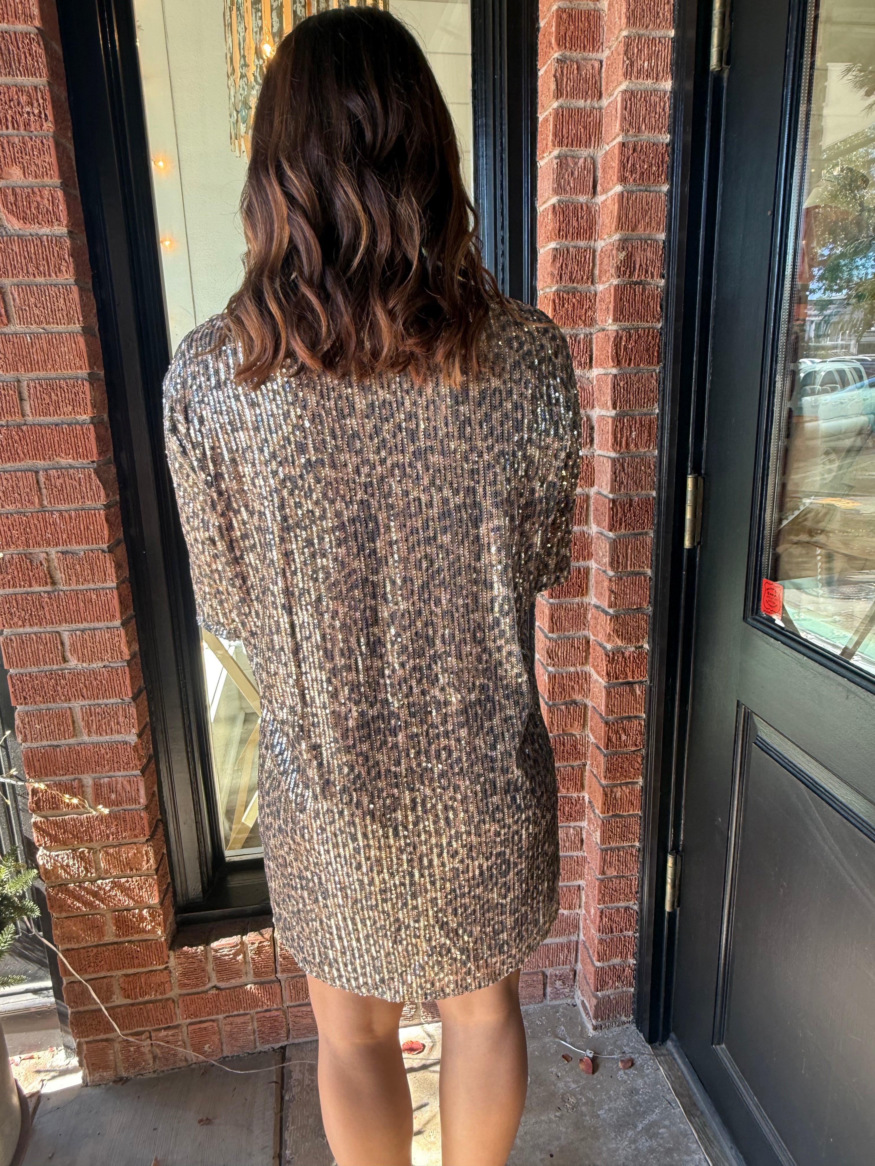 Rachel Sequin Cheetah Dress
