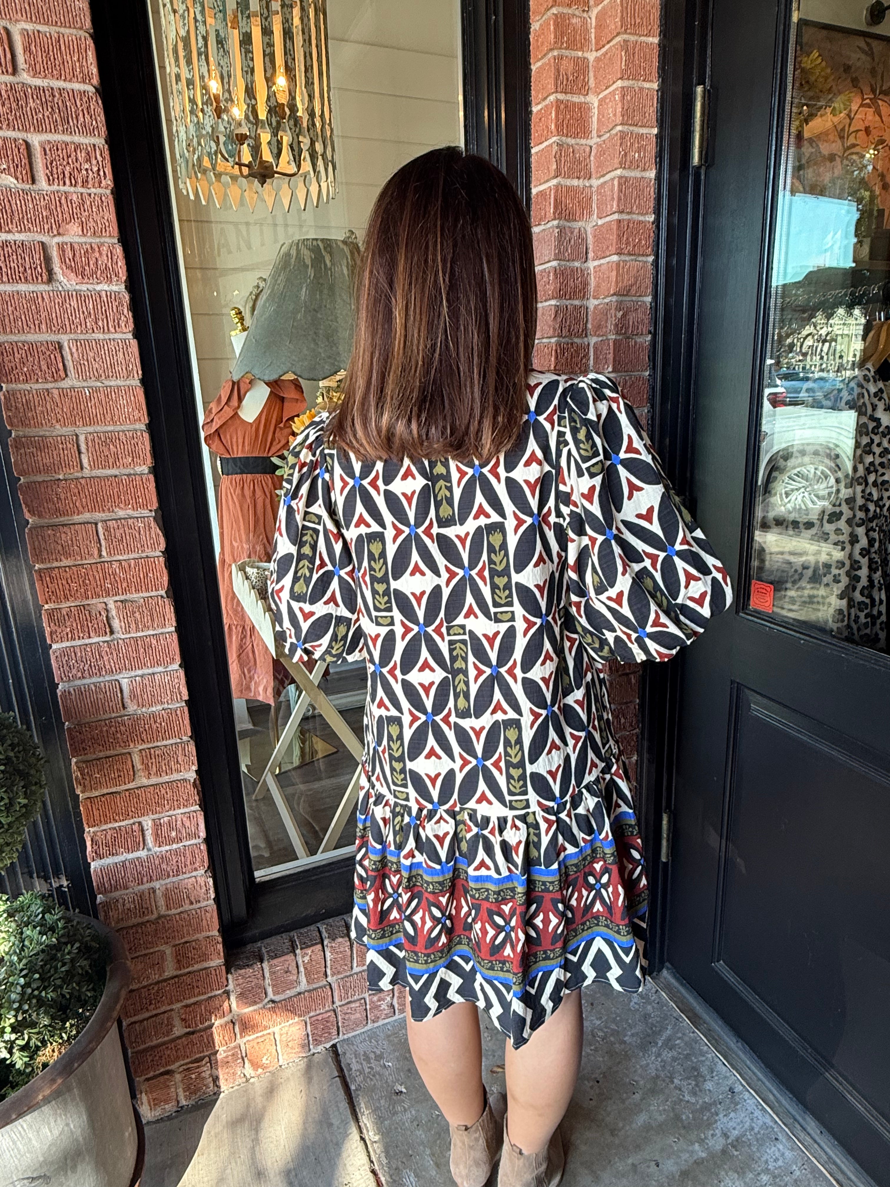 Rachel Puff Sleeve Print V-Neck Mini Dress