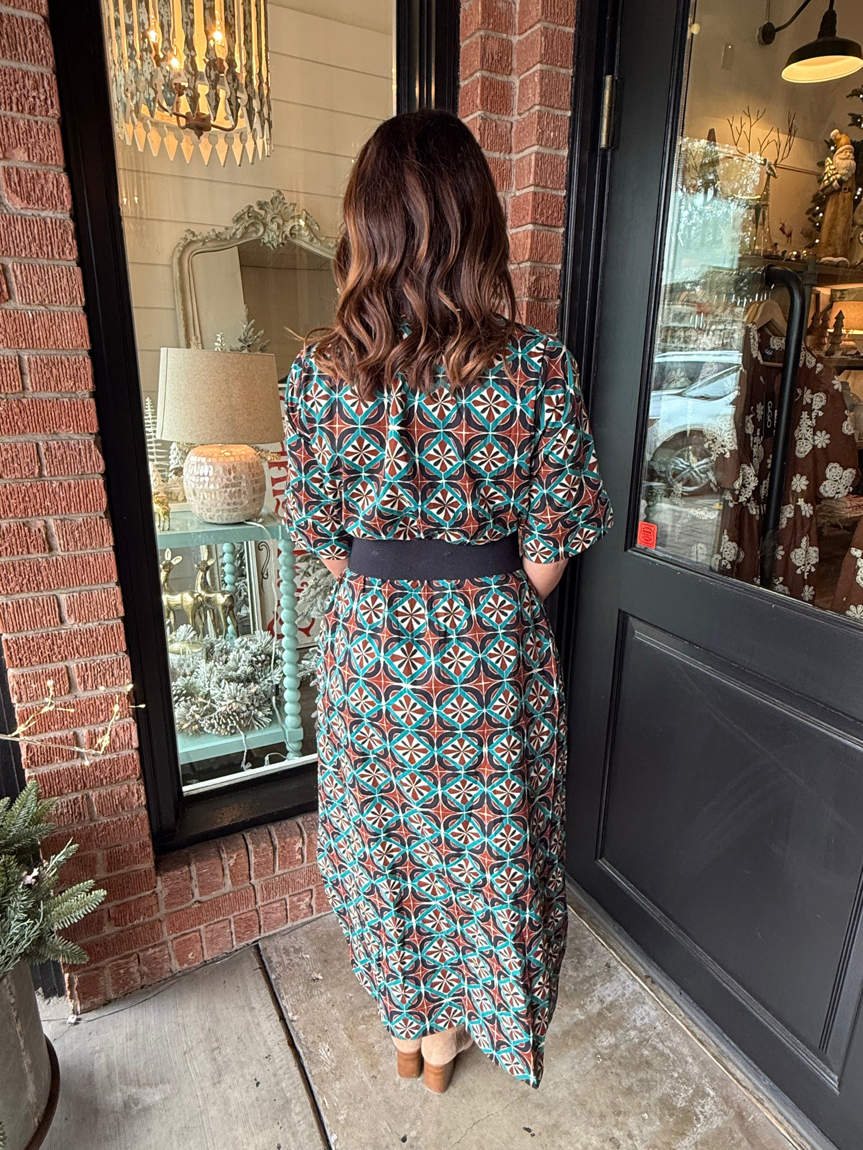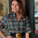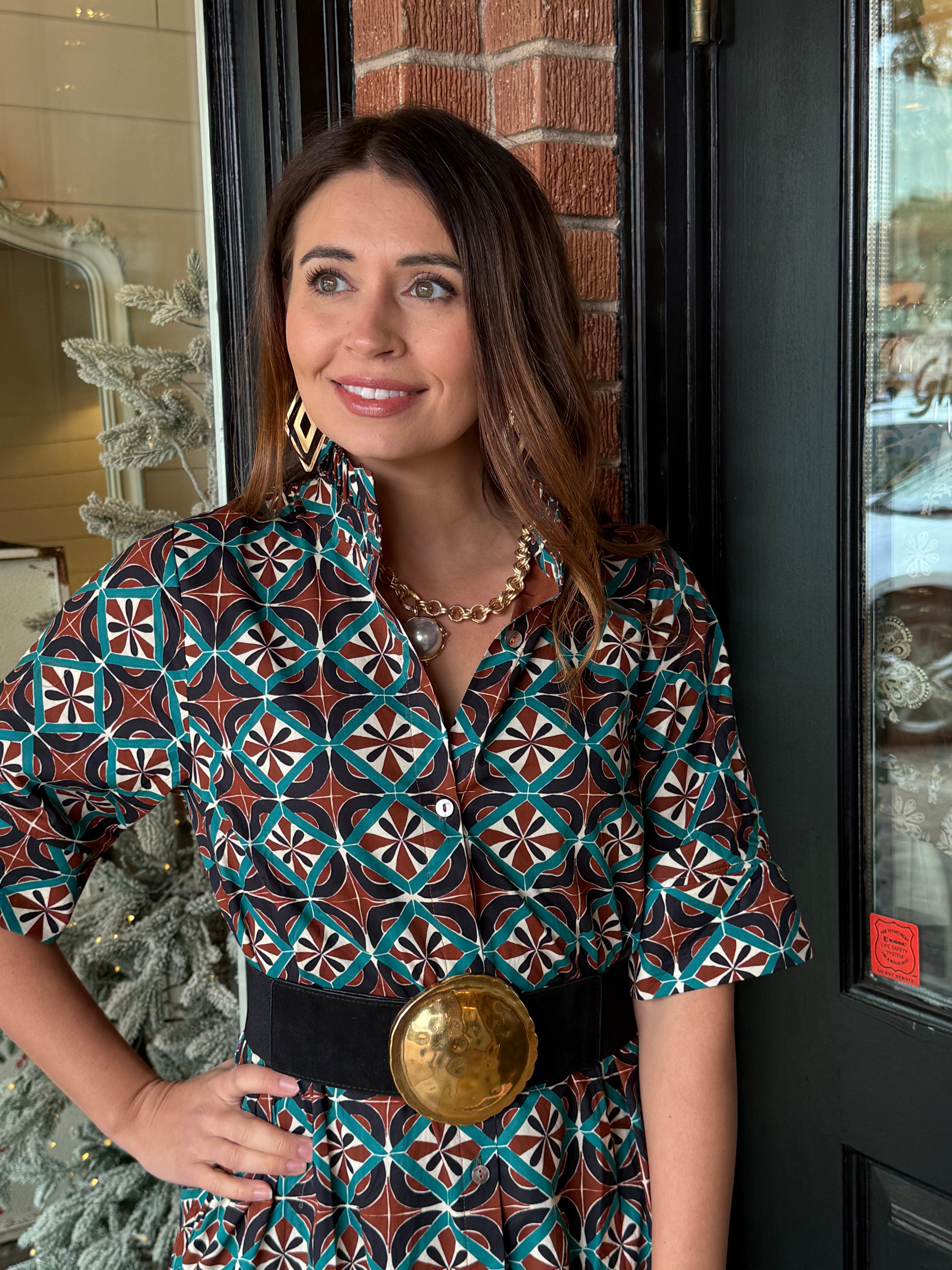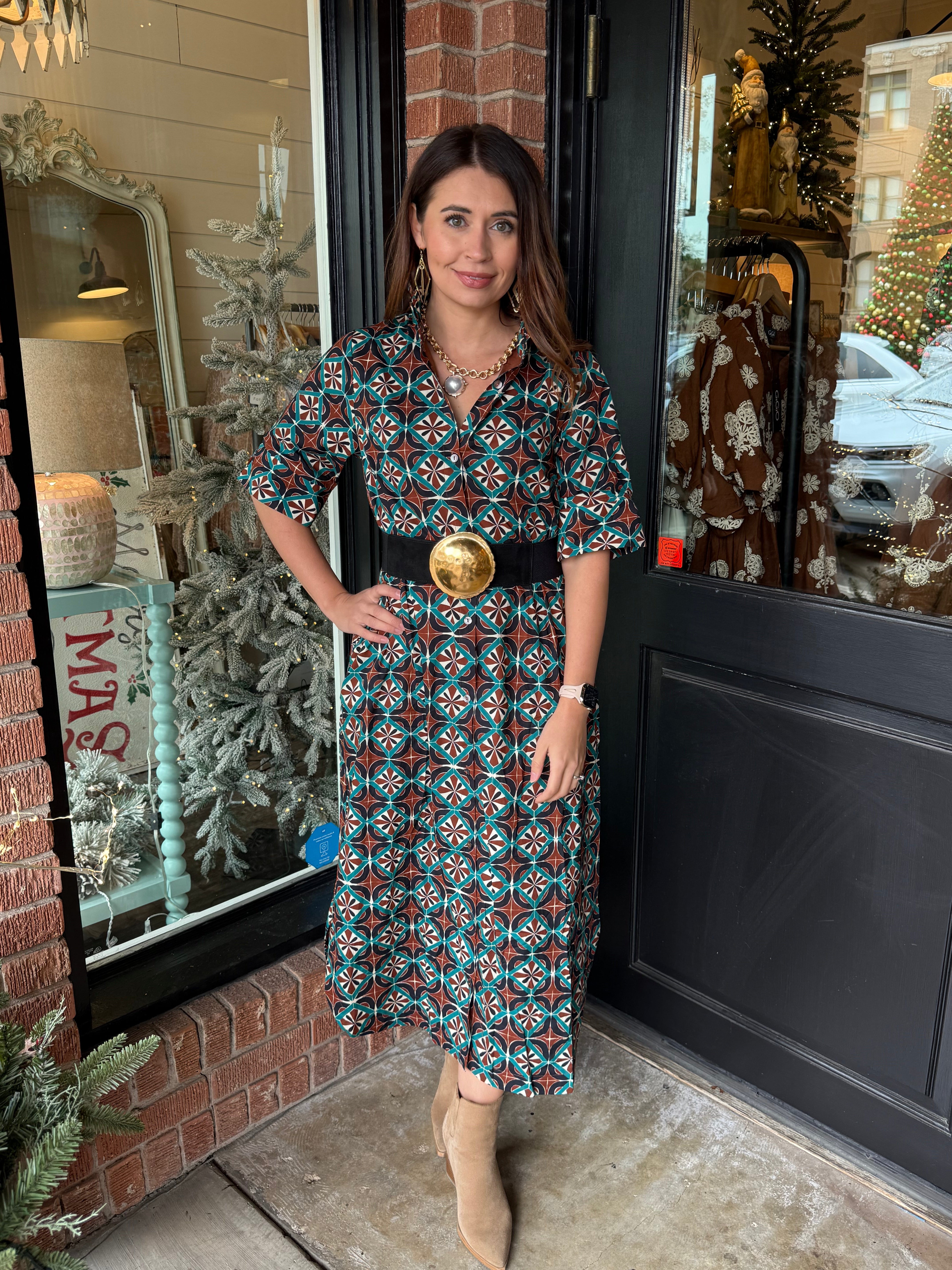 The Reagan is a classic, easy-to-wear midi with a pretty allover print and a polished finish. This dress features a high collar neckline, short sleeves, and a comfortable midi length that works for everyday outings, work, church, or a stroll around the Square. Lightweight, flattering, and effortless β a perfect one-and-done style.