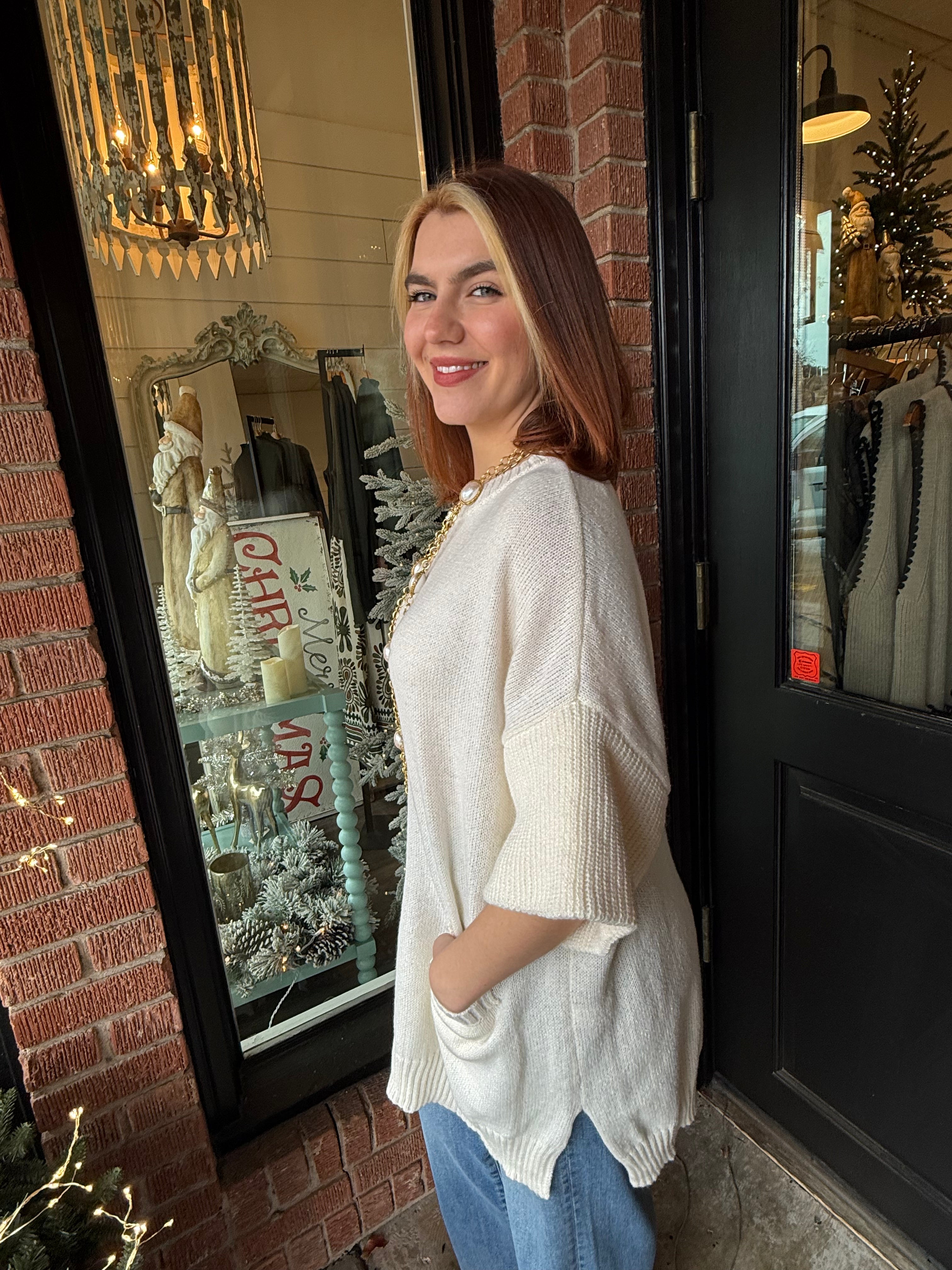 The Rowan Oversized Pocket Knit Sweater is an easy, throw-on favorite with a relaxed feel. Designed with an oversized fit and functional pocket detail, this knit sweater is all about comfort without sacrificing style. Perfect for casual days, travel, and cozy layering, it pairs effortlessly with denim, leggings, or trousers.