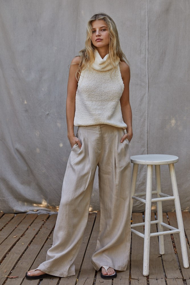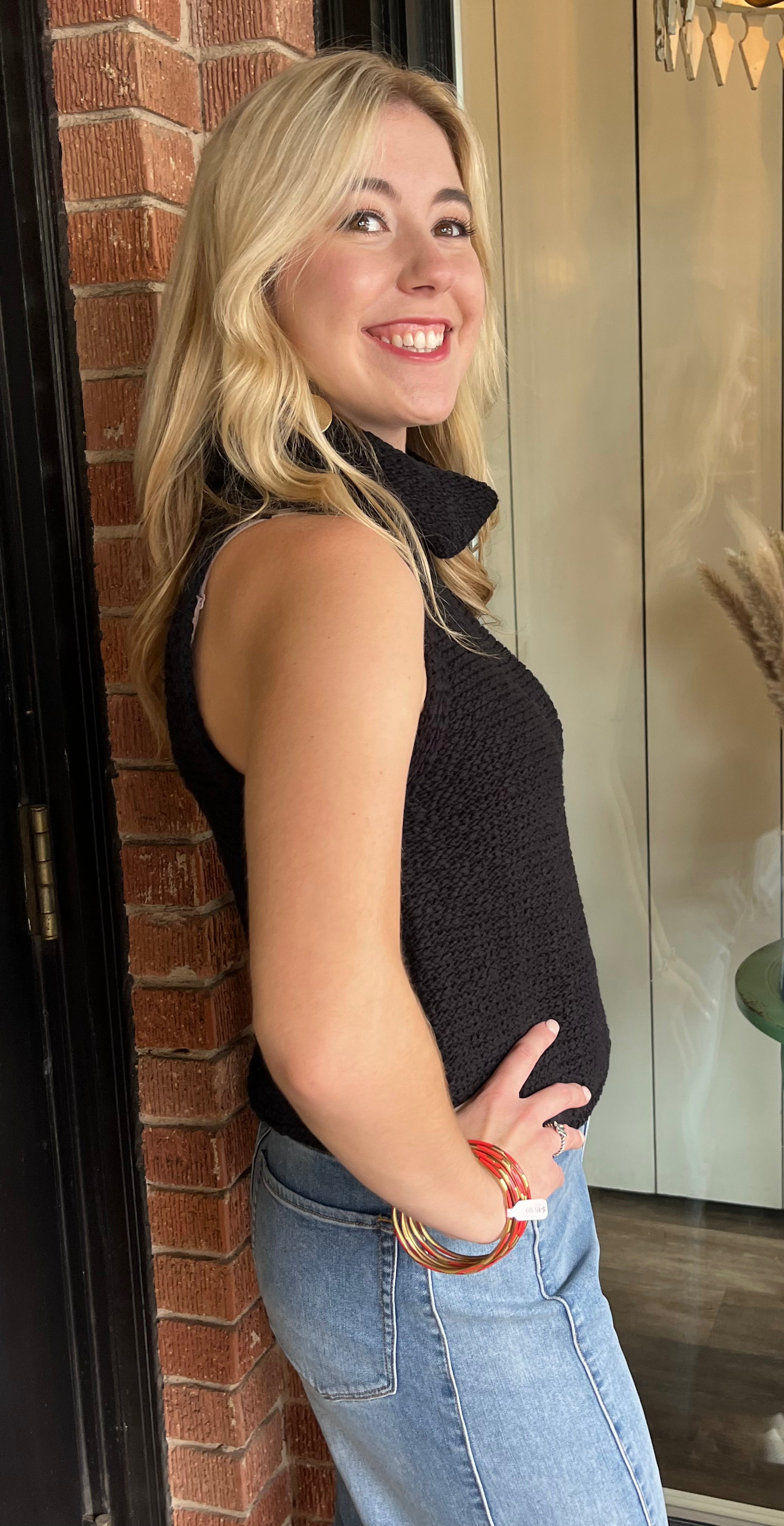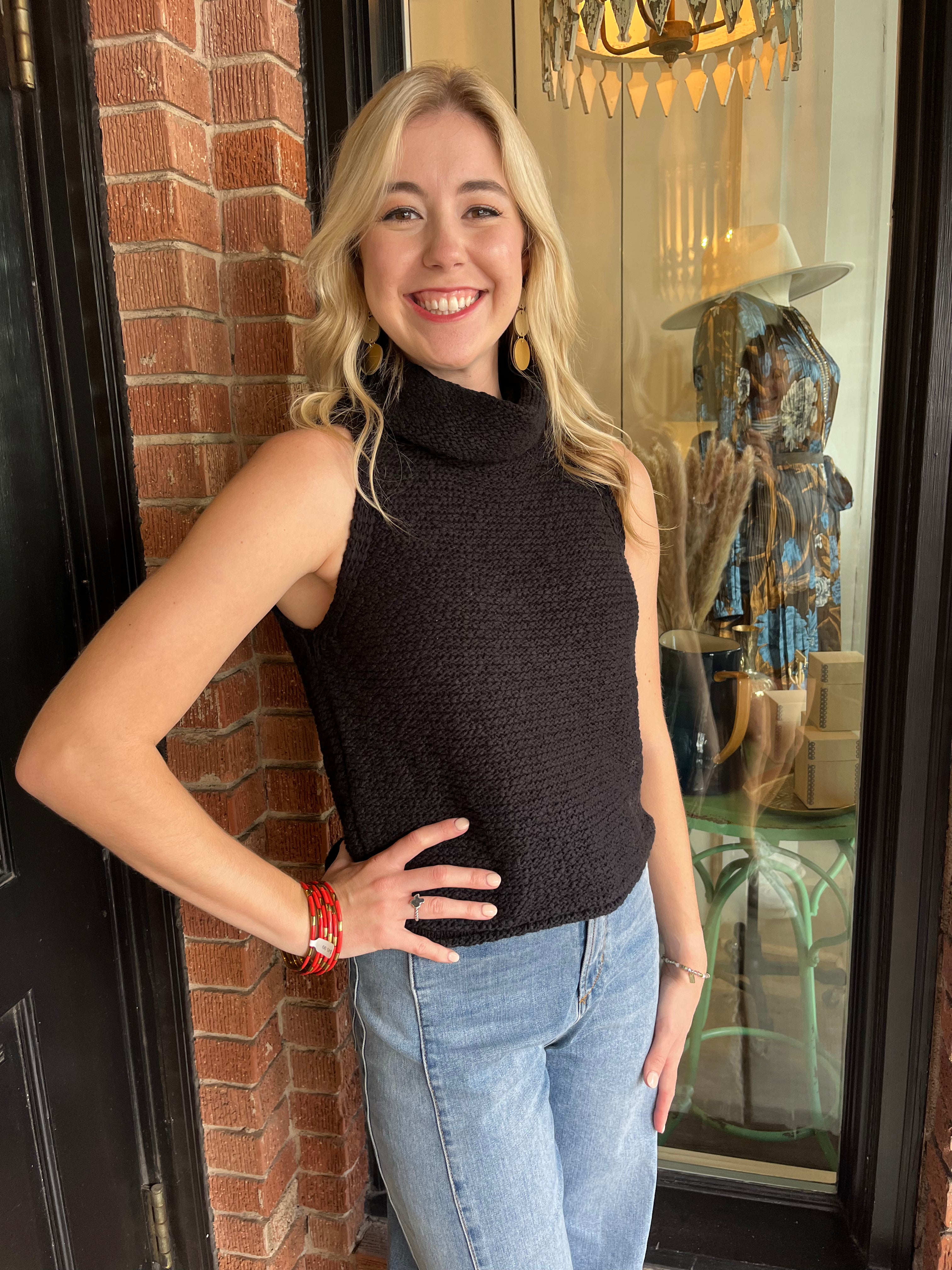Get cozy in the Salma Sweater! Made from a beautiful, knitted fabric, this perfect fall sweater features a stylish cowl neck and sleeveless design. Perfect for layering or wearing alone, the Salma Sweater will keep you warm and stylish all season long.