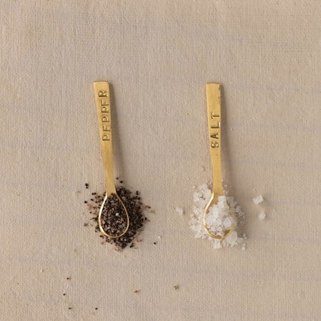 Add a touch of charm to your dining experience with our Salt and Pepper Brass Spoons. Crafted from metal with an antique brushed brass finish, these spoons are perfect for those who appreciate one-of-a-kind pieces. Packaged in a drawstring bag, this set of 2 spoons is a must-have for any shopper.