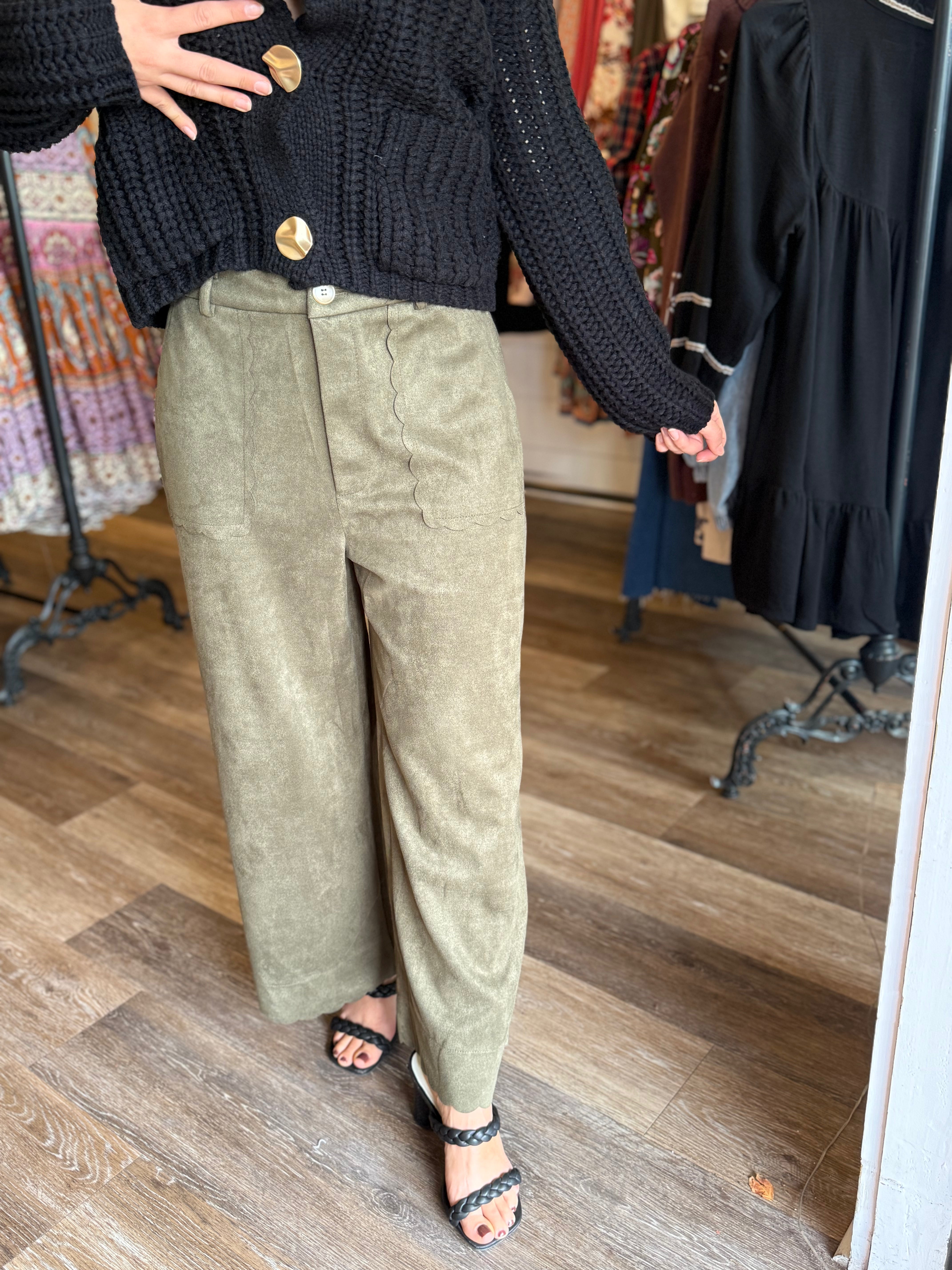 Sienna Scalloped Wide Leg Suede Pants