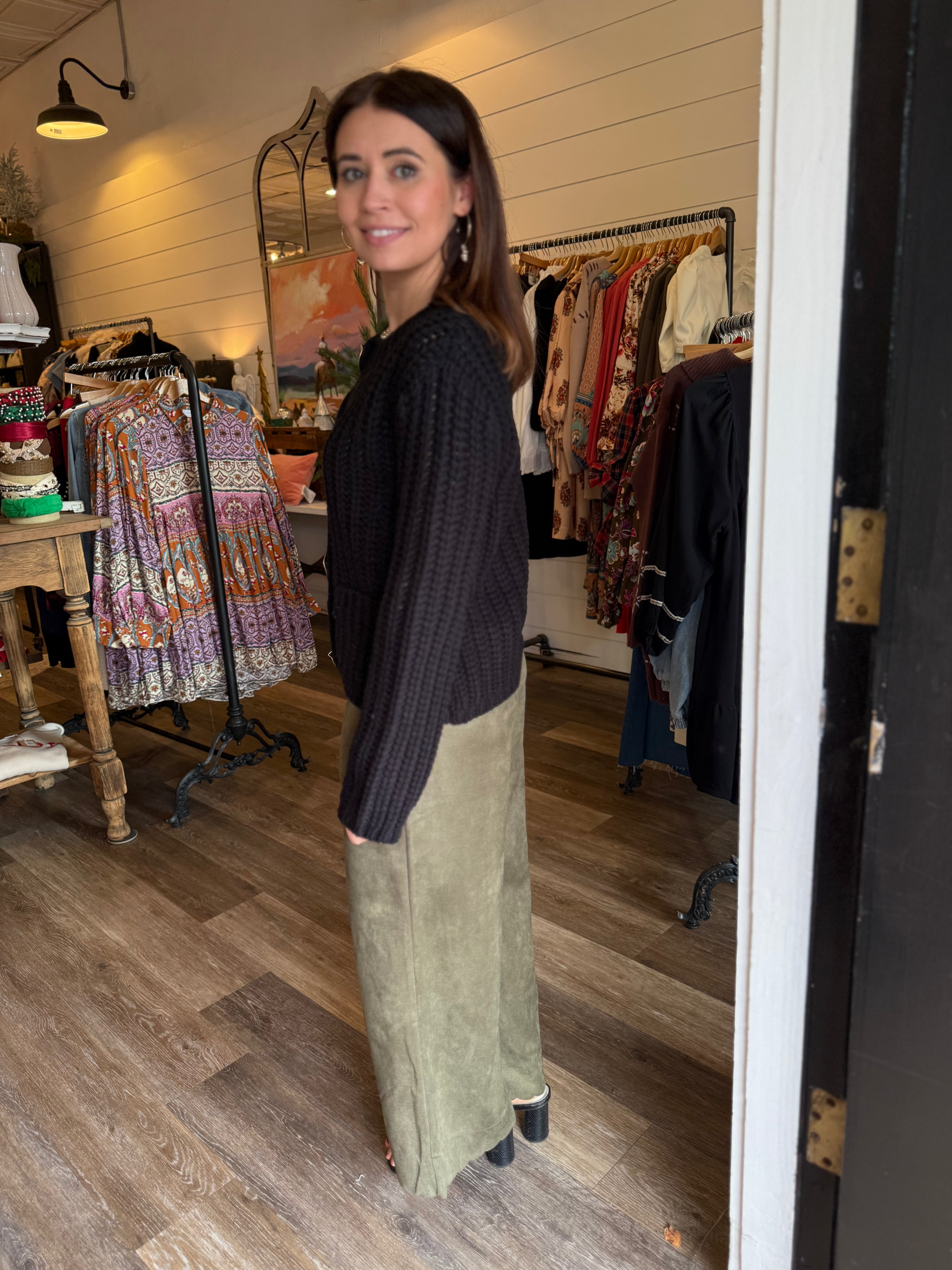 Chic, modern, and effortlessly polished — the Sienna Wide Leg Suede Pants elevate any outfit with their soft drape and feminine detailing. Made from a smooth suede-feel fabric, these pants feature a dramatic wide leg silhouette, functional side pockets, and the prettiest scalloped edging along the pockets and hem for a touch of charm.