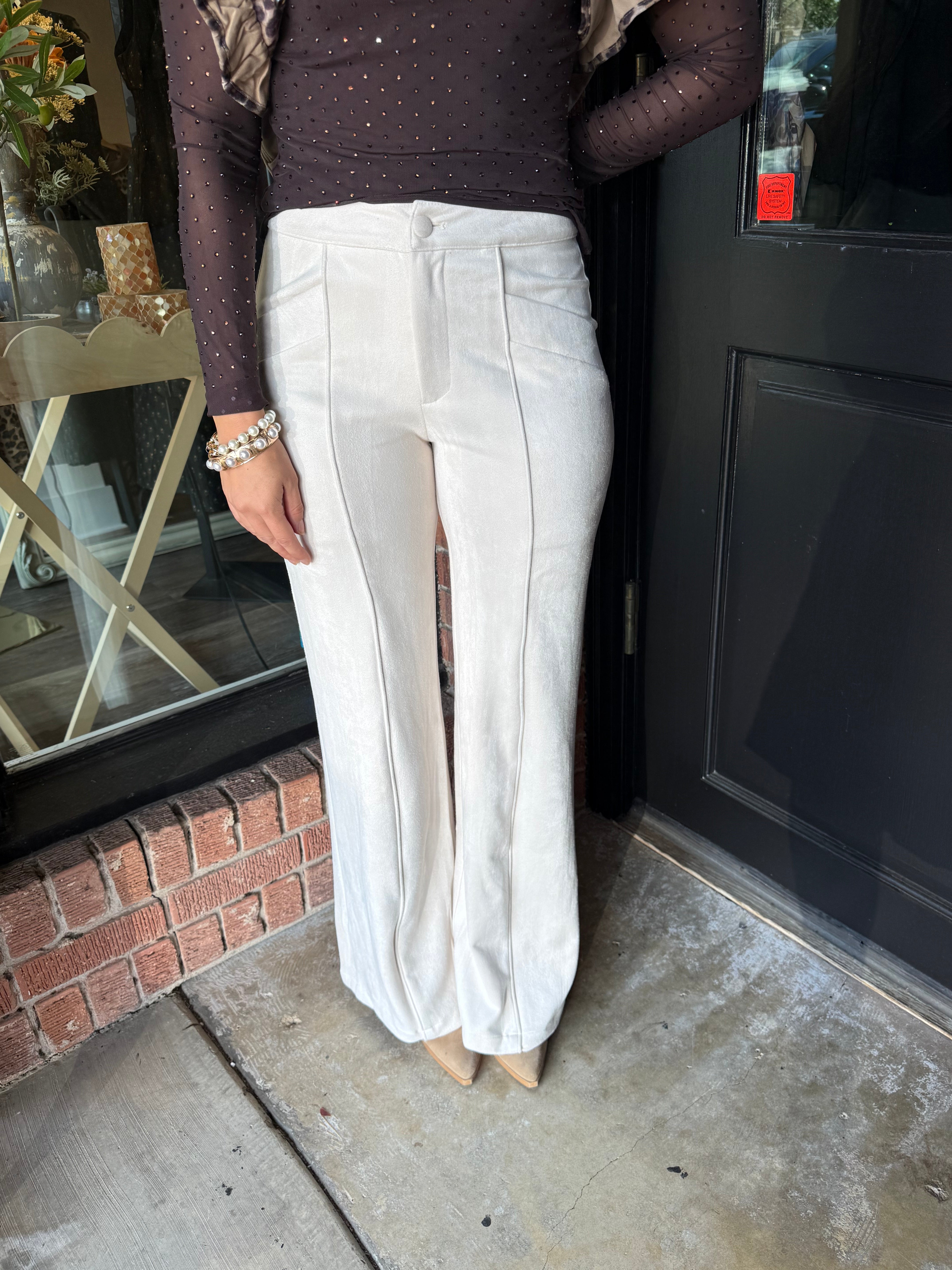 Step into effortless style with the Sienna Suede Wide Pants. Designed with a flattering wide-leg silhouette and functional pockets, these pants combine comfort and sophistication. The soft suede-like fabric drapes beautifully, making them perfect for dressing up with a blouse or keeping it casual with a tucked-in tee.