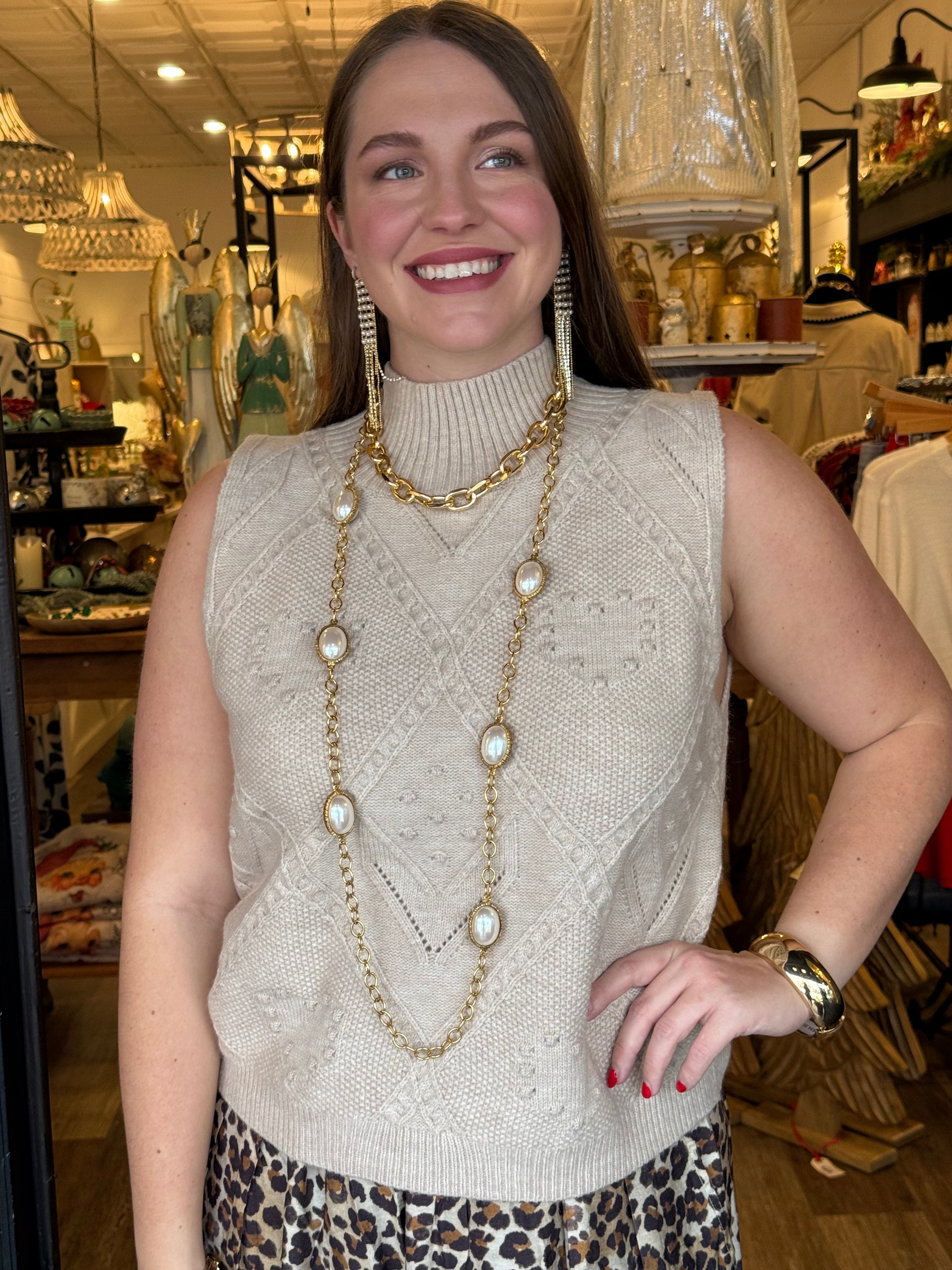 Soft, simple, and so easy to style. The Sloane Sleeveless Sweater features a subtle knit design that adds just enough texture while keeping things clean and classic. Perfect on its own or layered under jackets and cardigans.