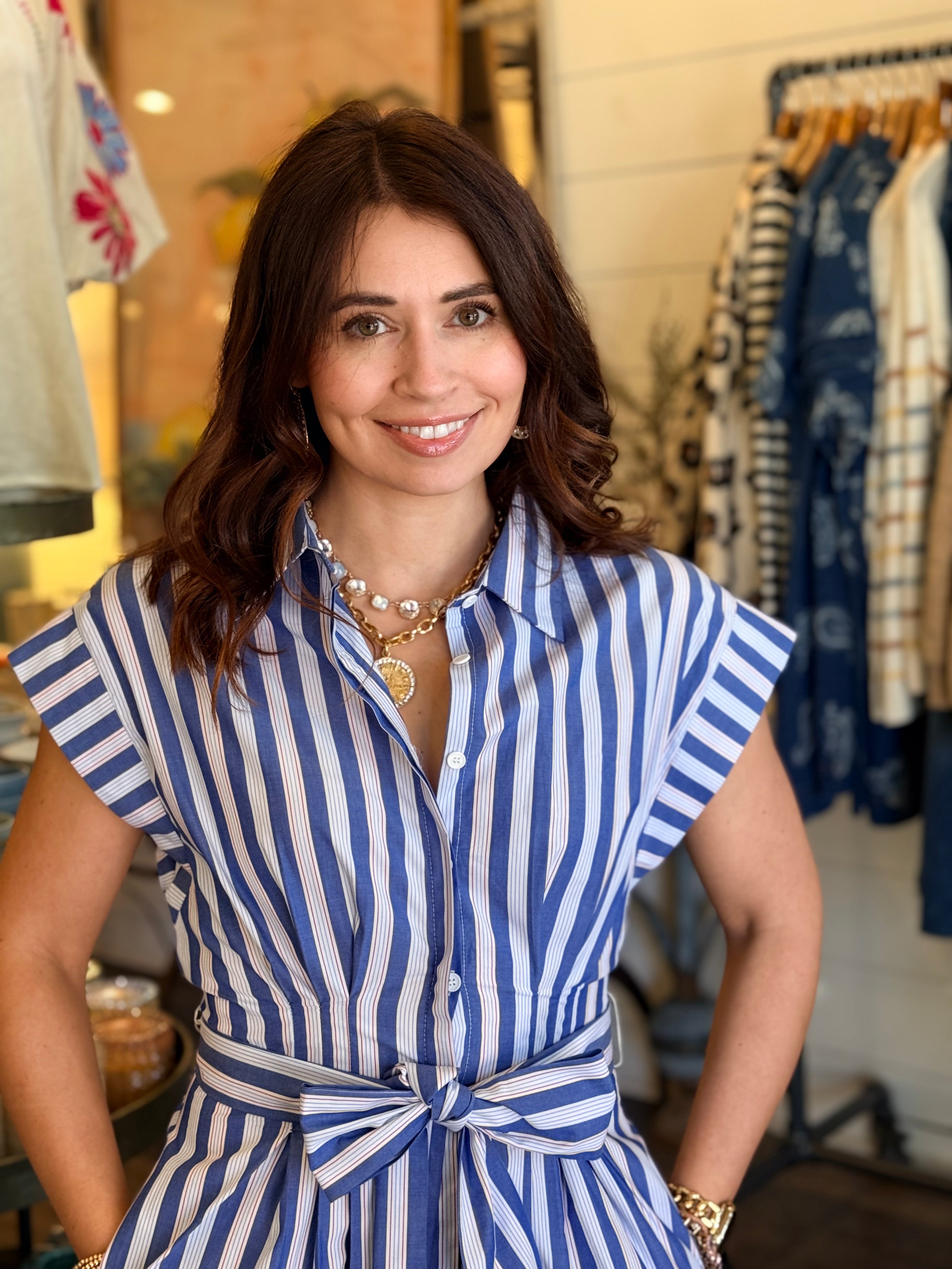 Classic and easy to wear, the Stella Button Mini Dress is a timeless staple with thoughtful details. Designed with a collared neckline and short sleeves, this dress features a hidden front button closure for a clean look and a removable tie belt to customize the fit. Made from breathable cotton, it’s an effortless choice for everyday wear.