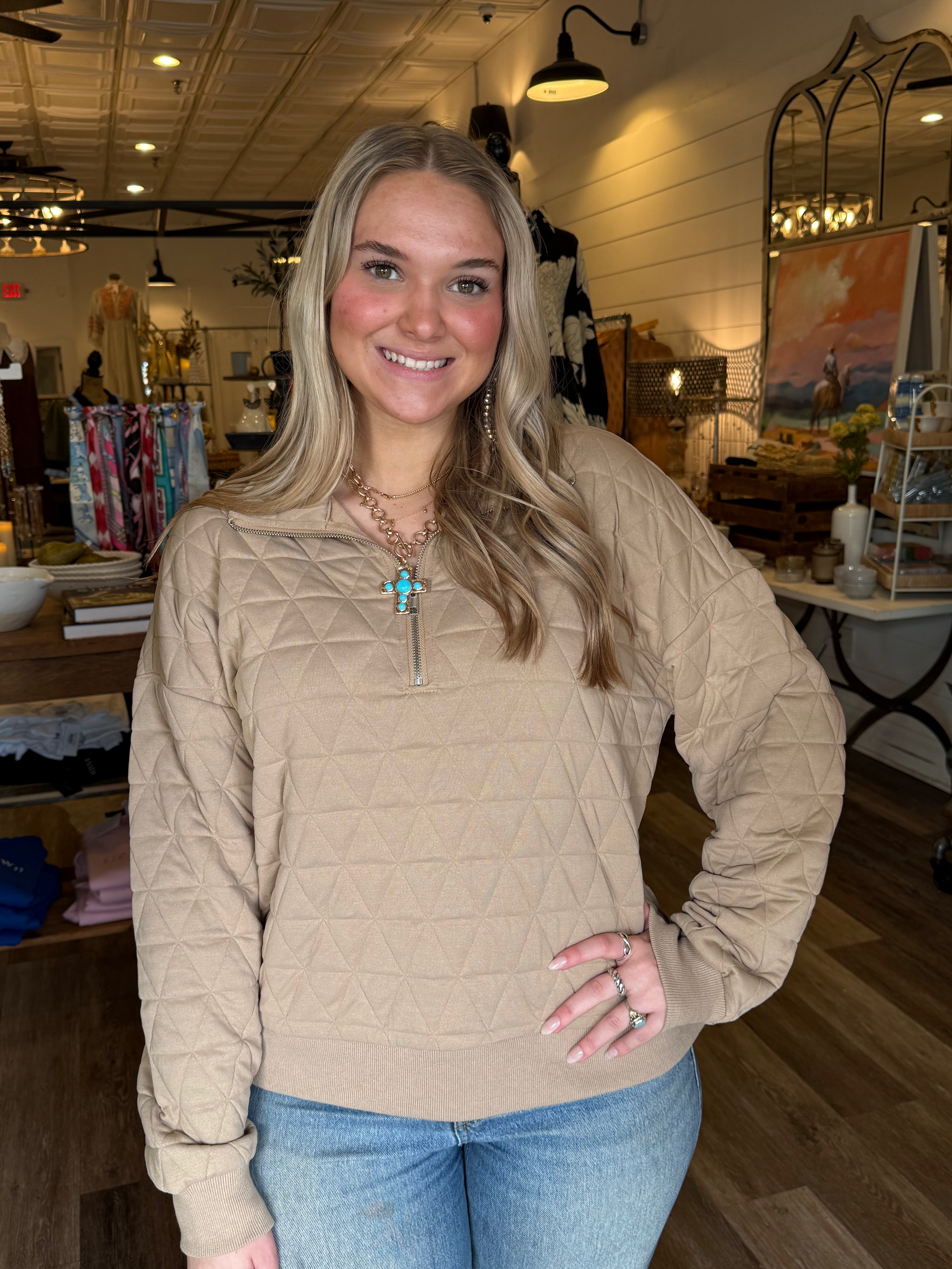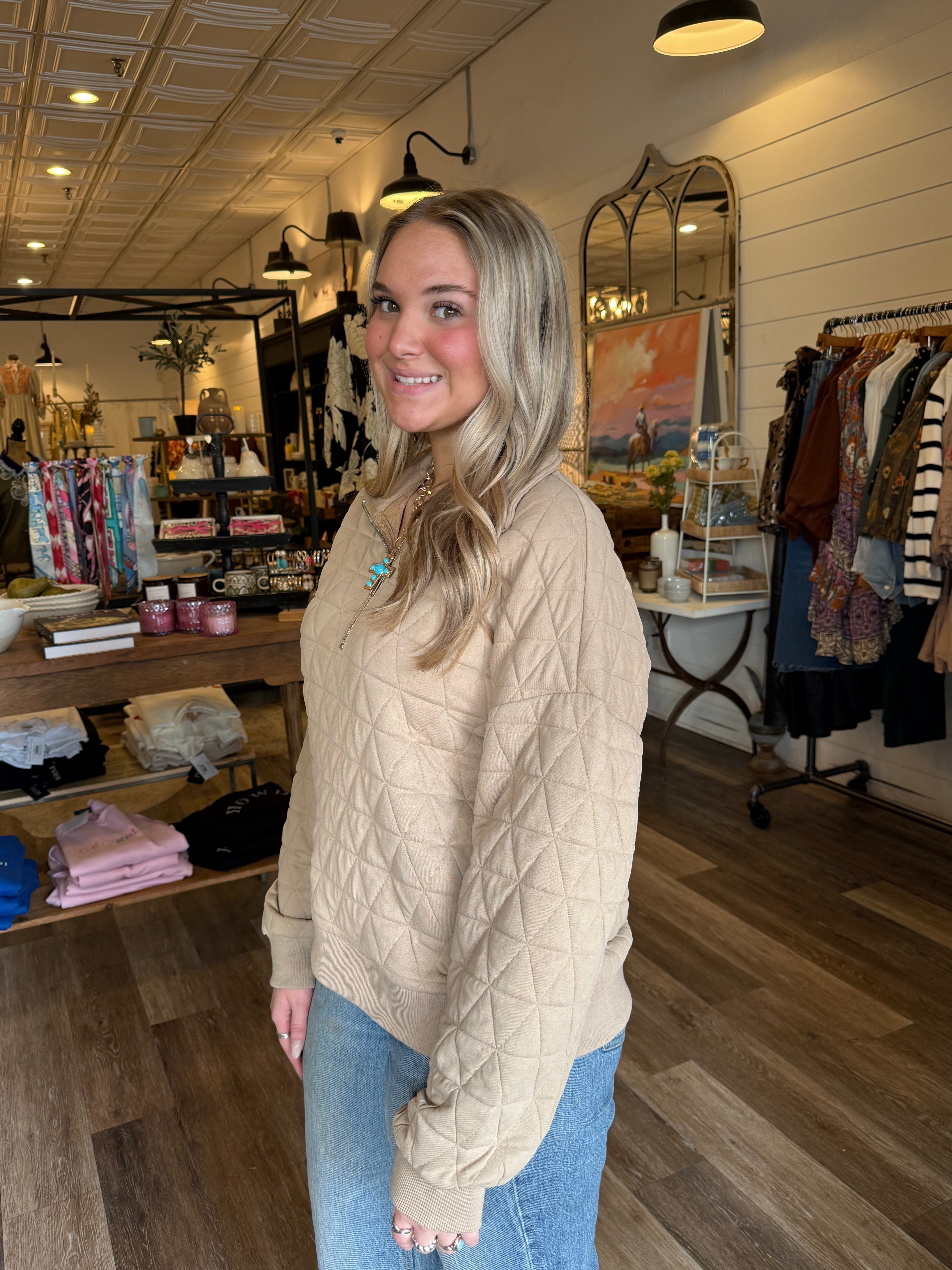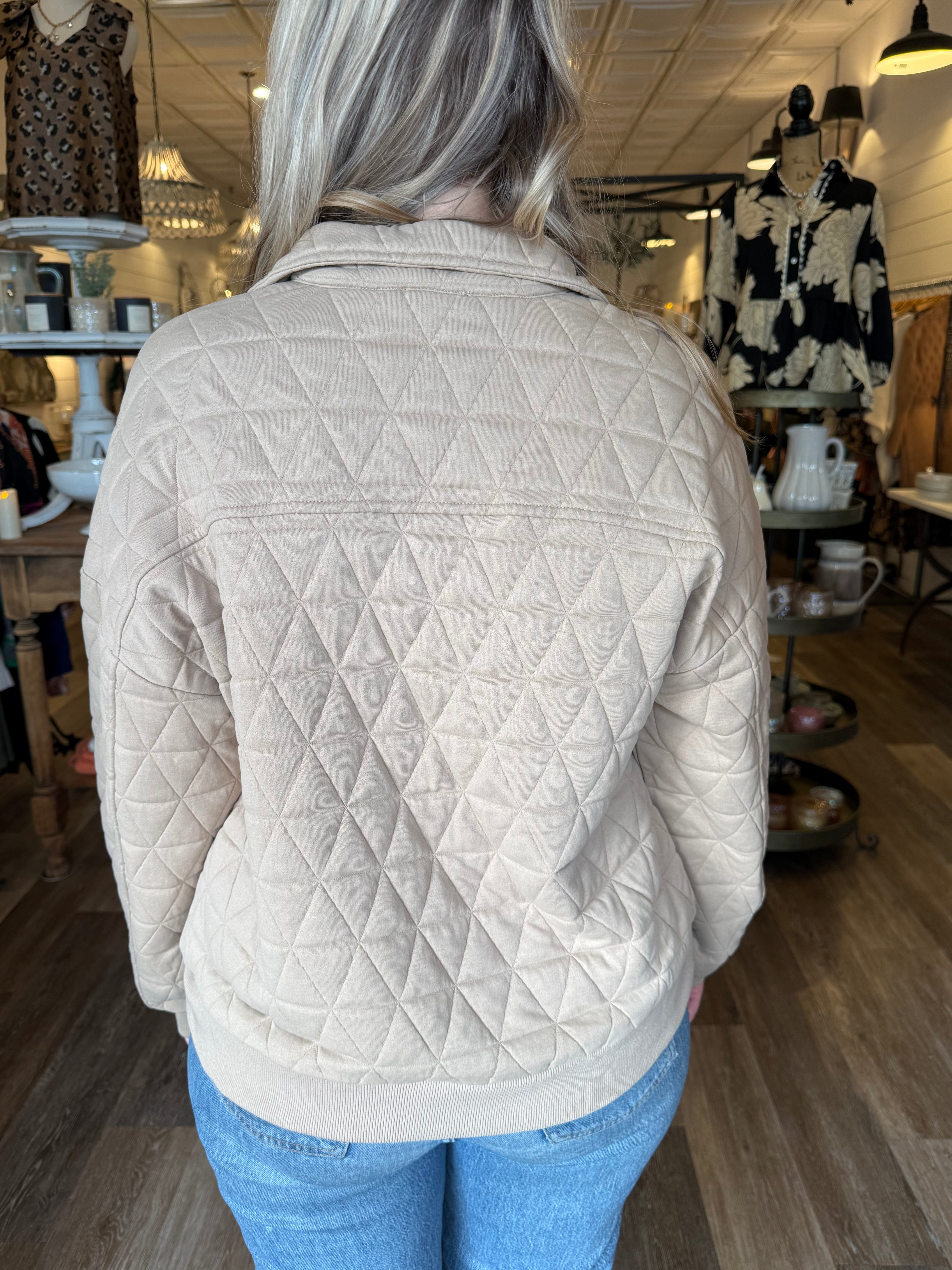 Cozy, casual, and easy to layer, the Tanya Quilted Half Zip Jacket is the perfect throw-on piece for cooler days. Designed with a quilted texture and half-zip front, this jacket features cuffed sleeves for a relaxed, polished look. The soft stretch fabric makes it comfortable enough for all-day wear while still looking put together.