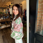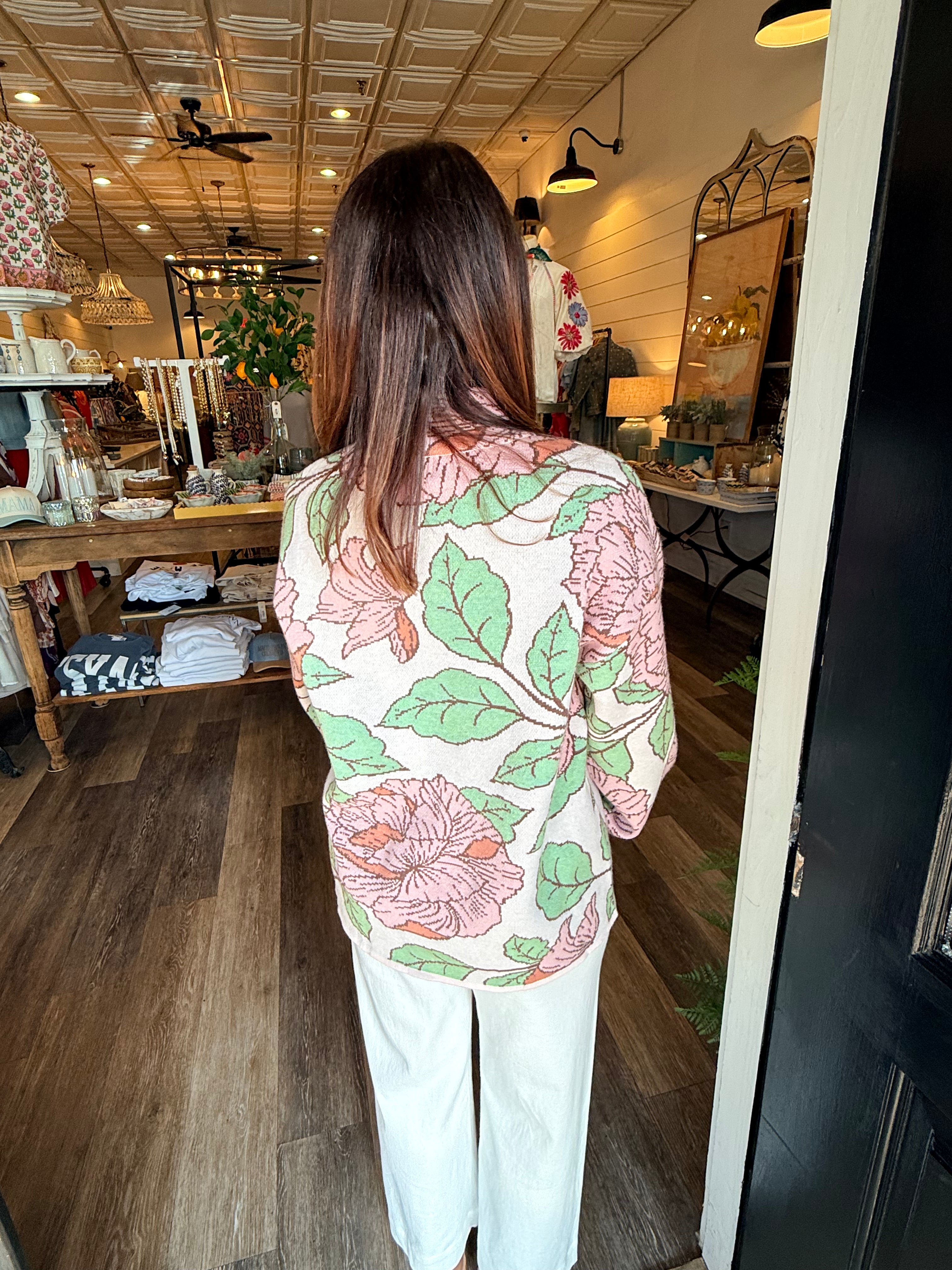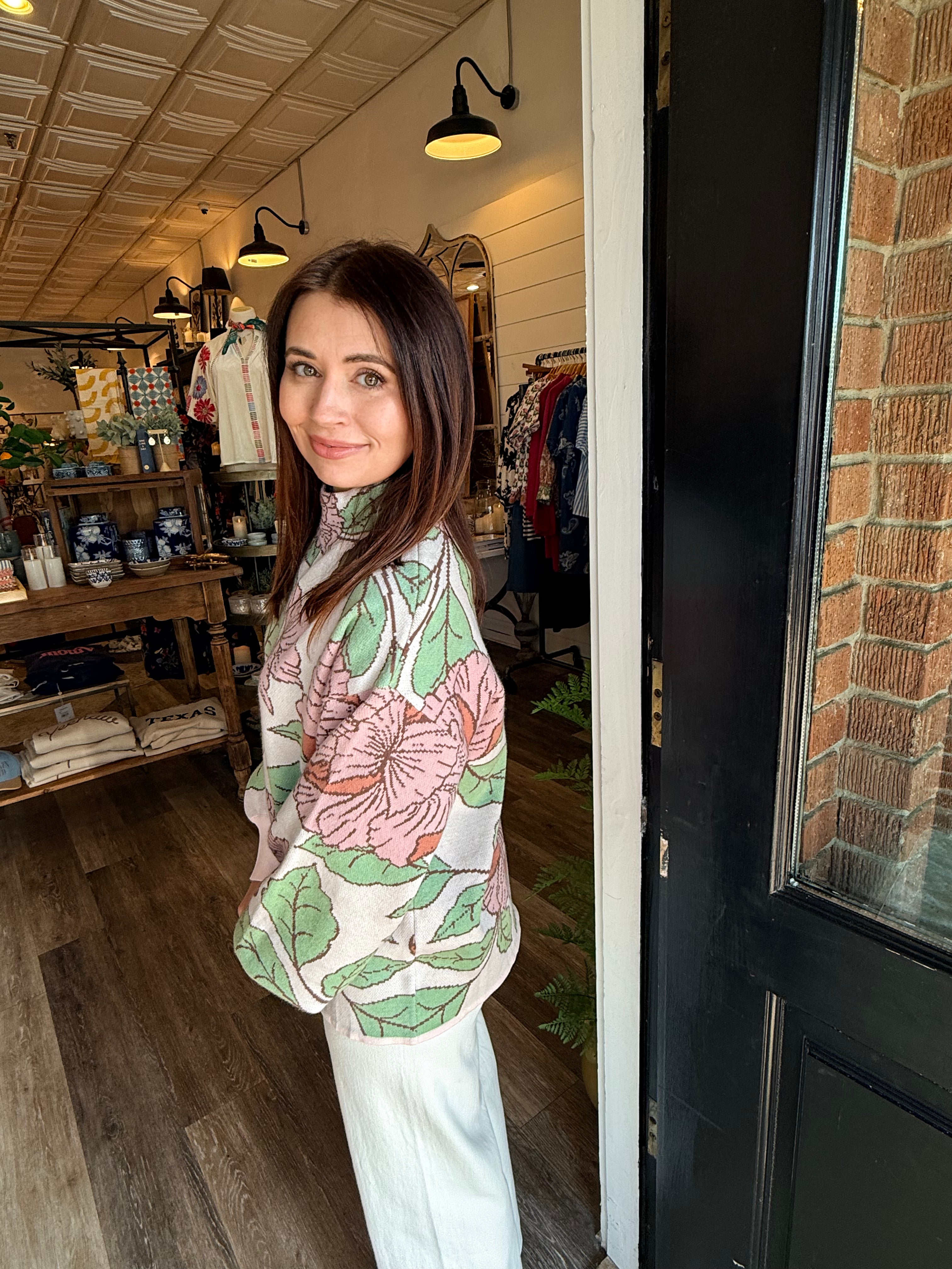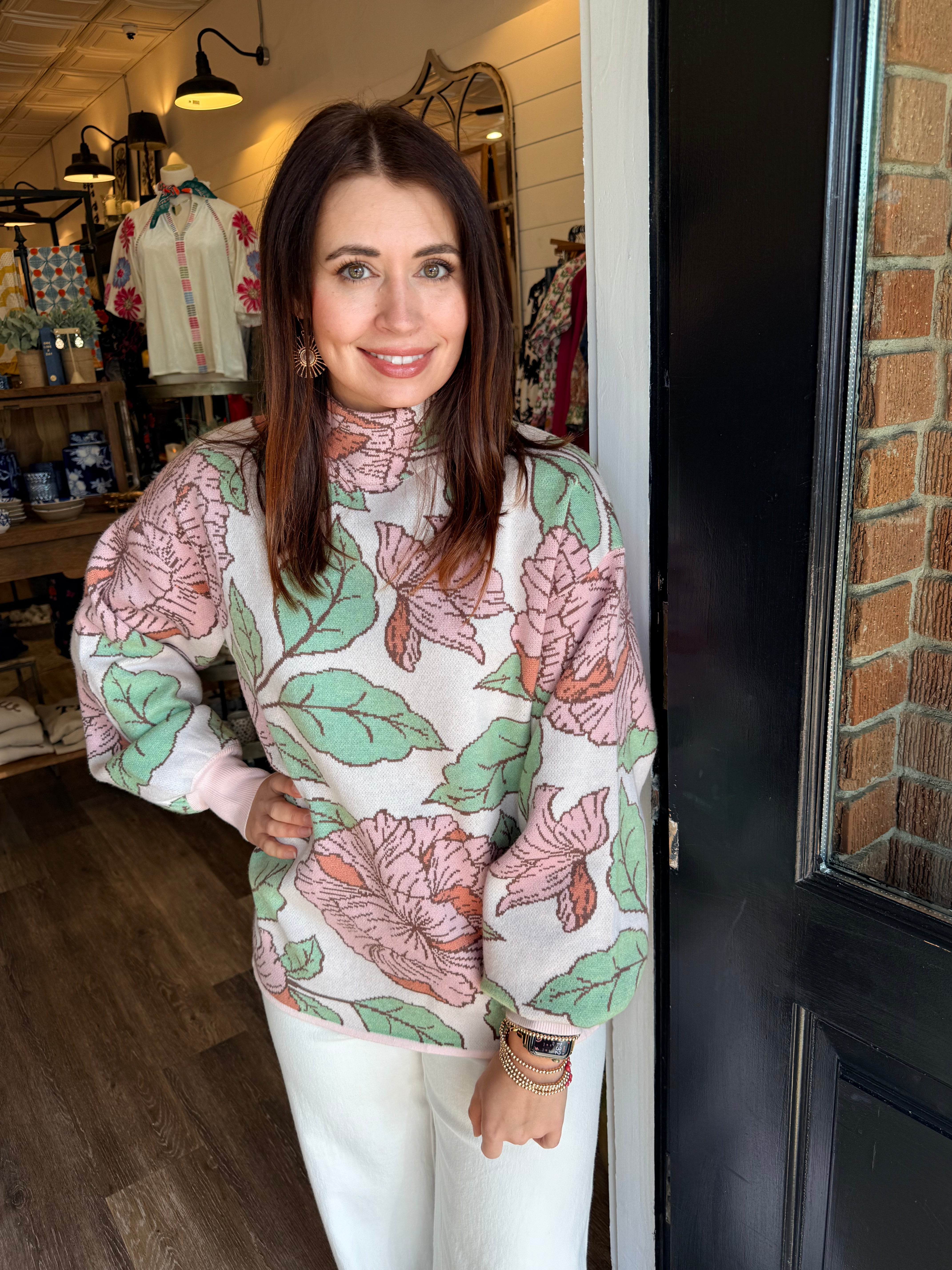 Soft, feminine, and easy to style — the Tatum Mock Neck Sweater is a fresh take on everyday knitwear. Designed with a comfortable mock neckline and an all-over floral pattern, this sweater adds a subtle pop of interest while still feeling polished and wearable. The lightweight knit makes it perfect for layering or wearing on its own through the seasons.