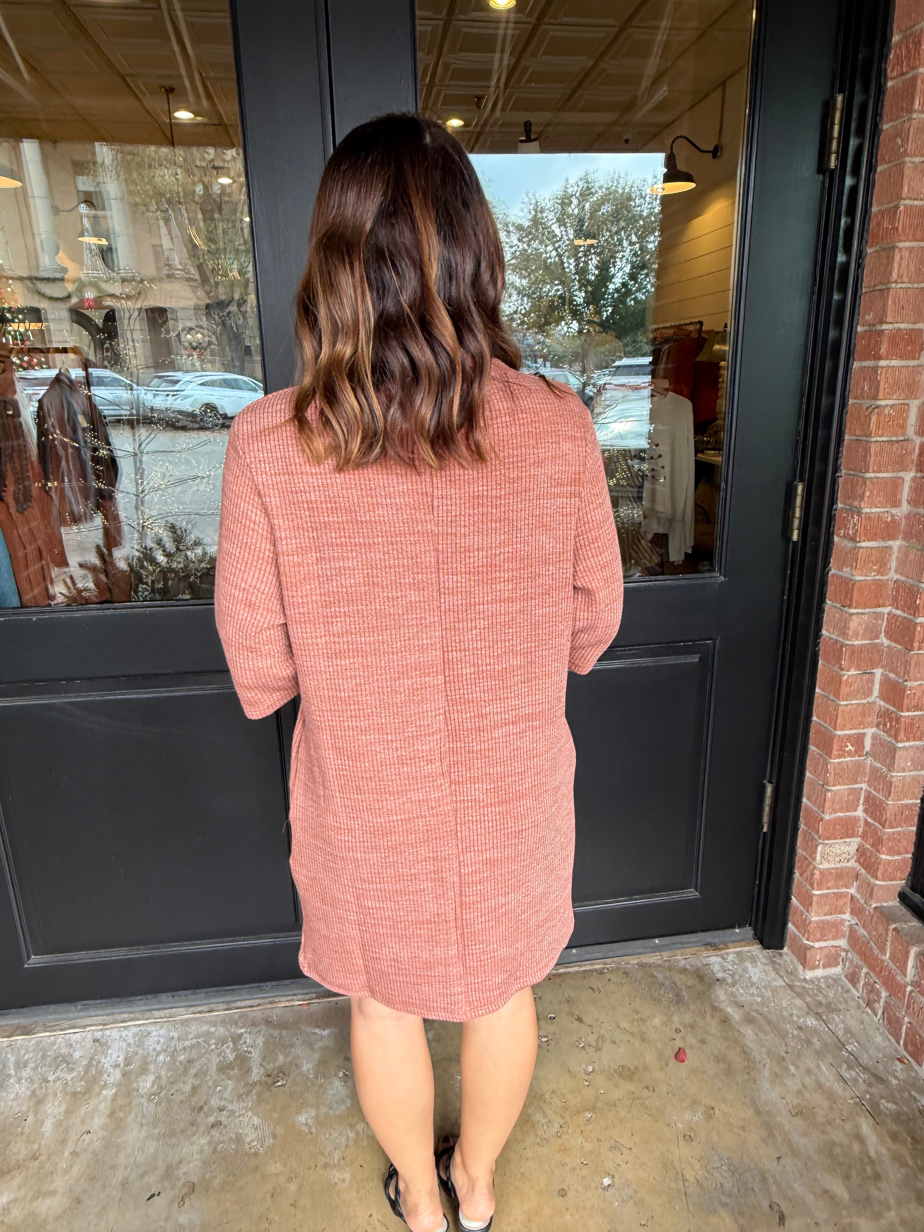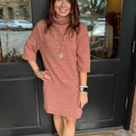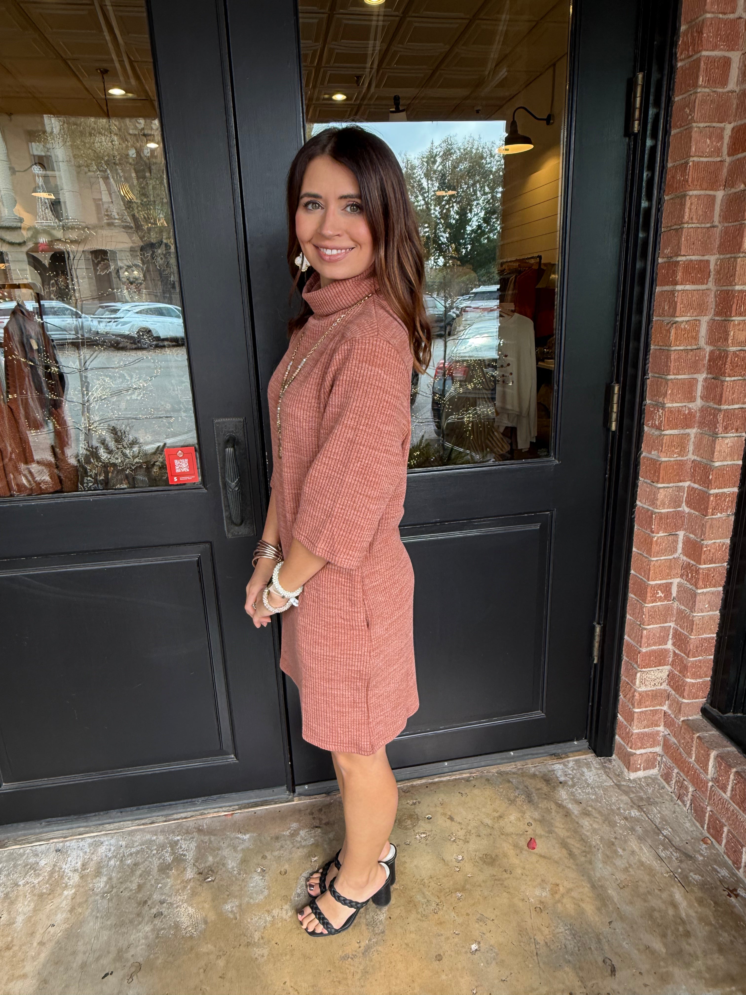 Elegant, cozy, and easy to wear — the Tiffany Turtleneck Knit Dress is your new go-to for holiday gatherings, workdays, and everything in between. Crafted in a soft, stretchy knit with a classic turtleneck and 3/4 sleeves, this dress gives you comfort while still looking polished.