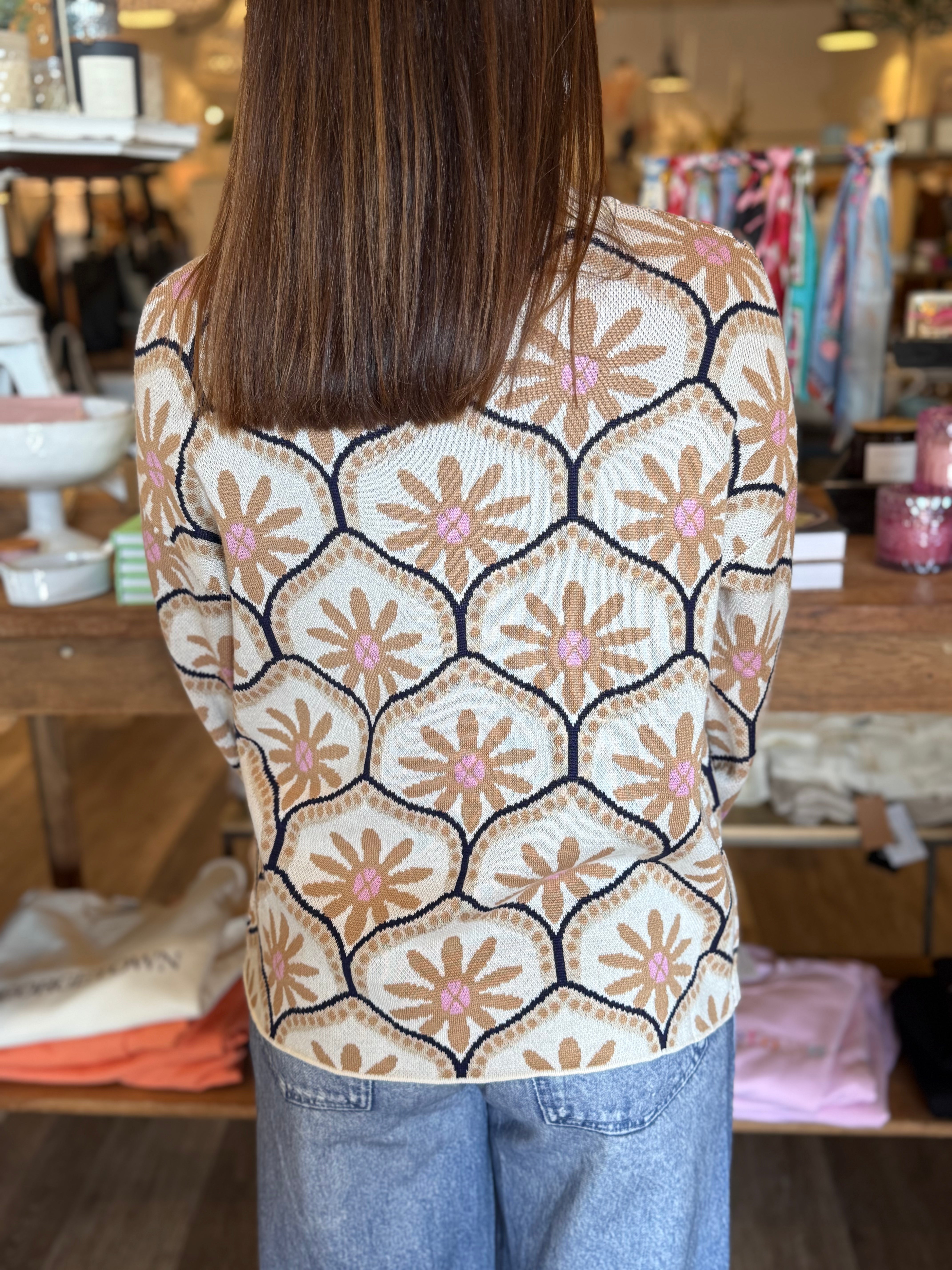 A cozy statement piece with a modern twist, the Trina Geometric Floral Sweater features a chic mock neckline and an eye-catching geometric floral design. The soft knit blend feels smooth and comfortable, making it an easy choice for everyday wear. Perfect for pairing with denim or dressing up with trousers for a fun, elevated look.