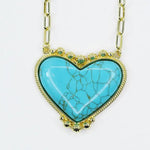 A bold pop of color with a whole lot of charm. Our Turquoise Heart Necklace features a vibrant turquoise heart framed in gleaming gold details for a look that feels fresh, confident, and eye-catching. It’s the perfect statement piece to brighten up everything from casual tees to your favorite dresses.