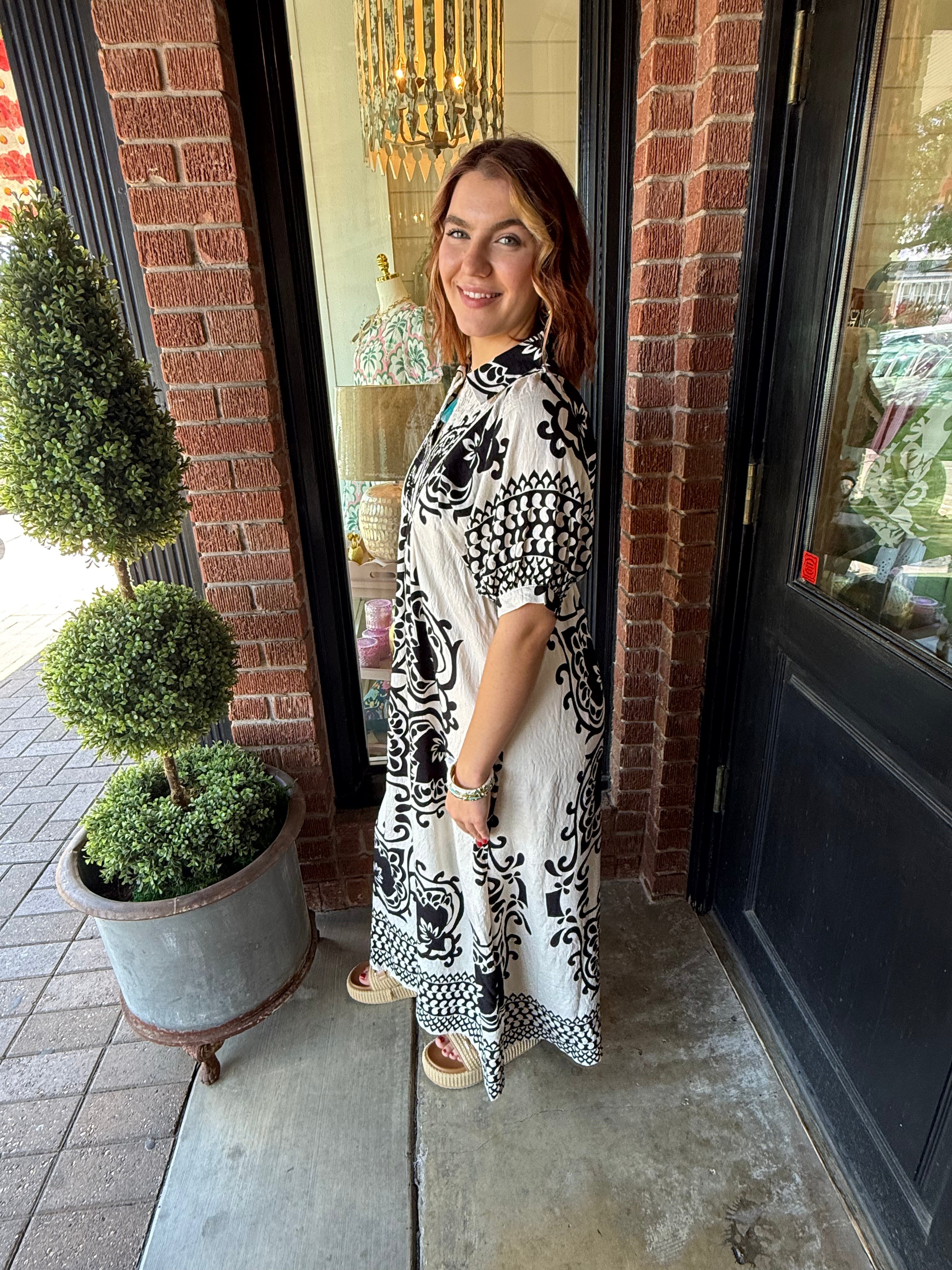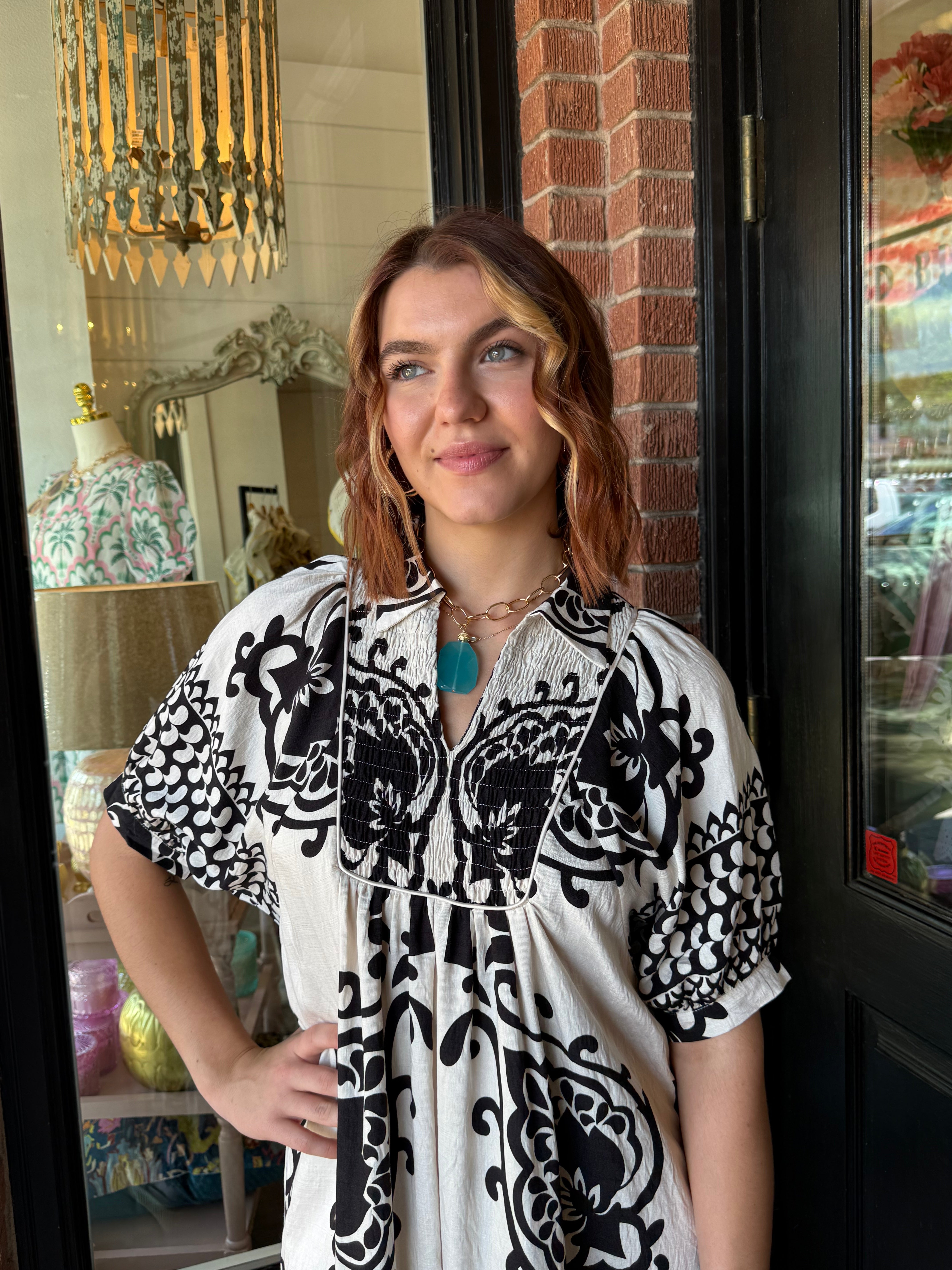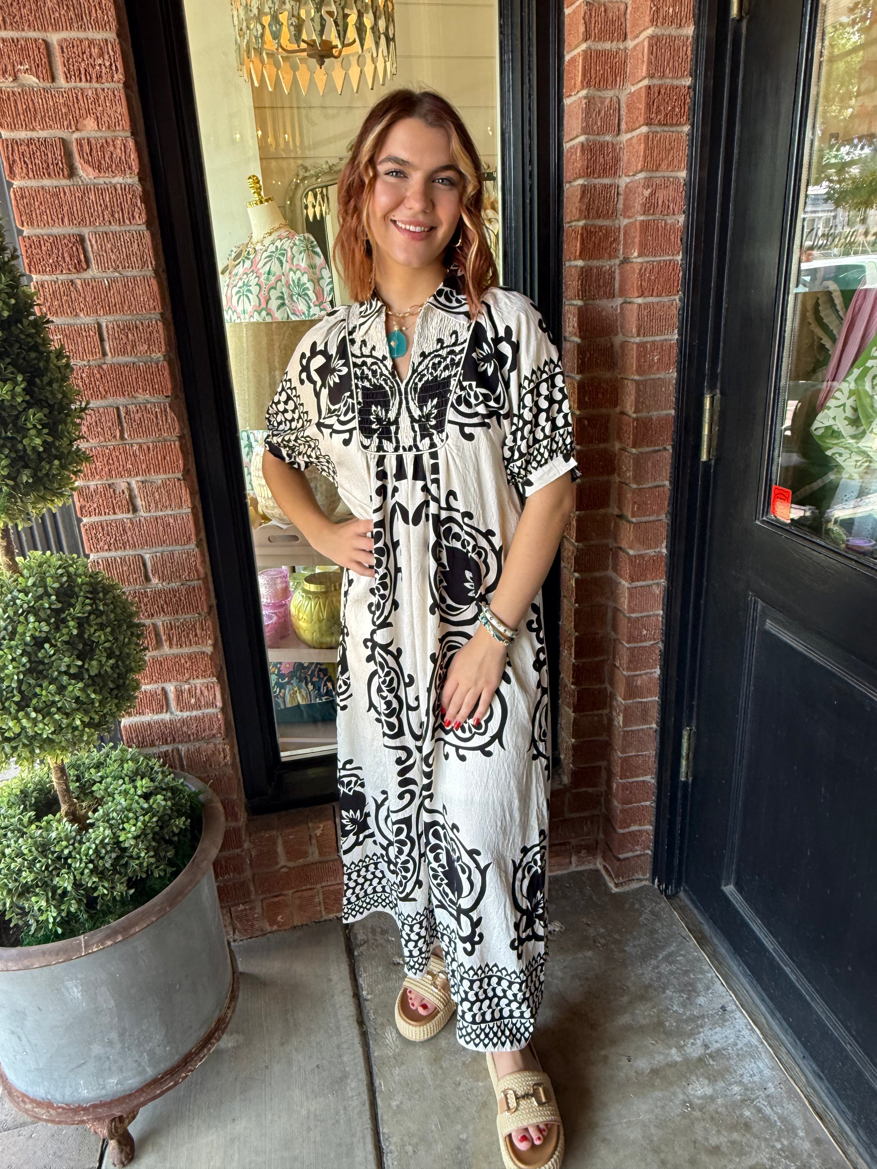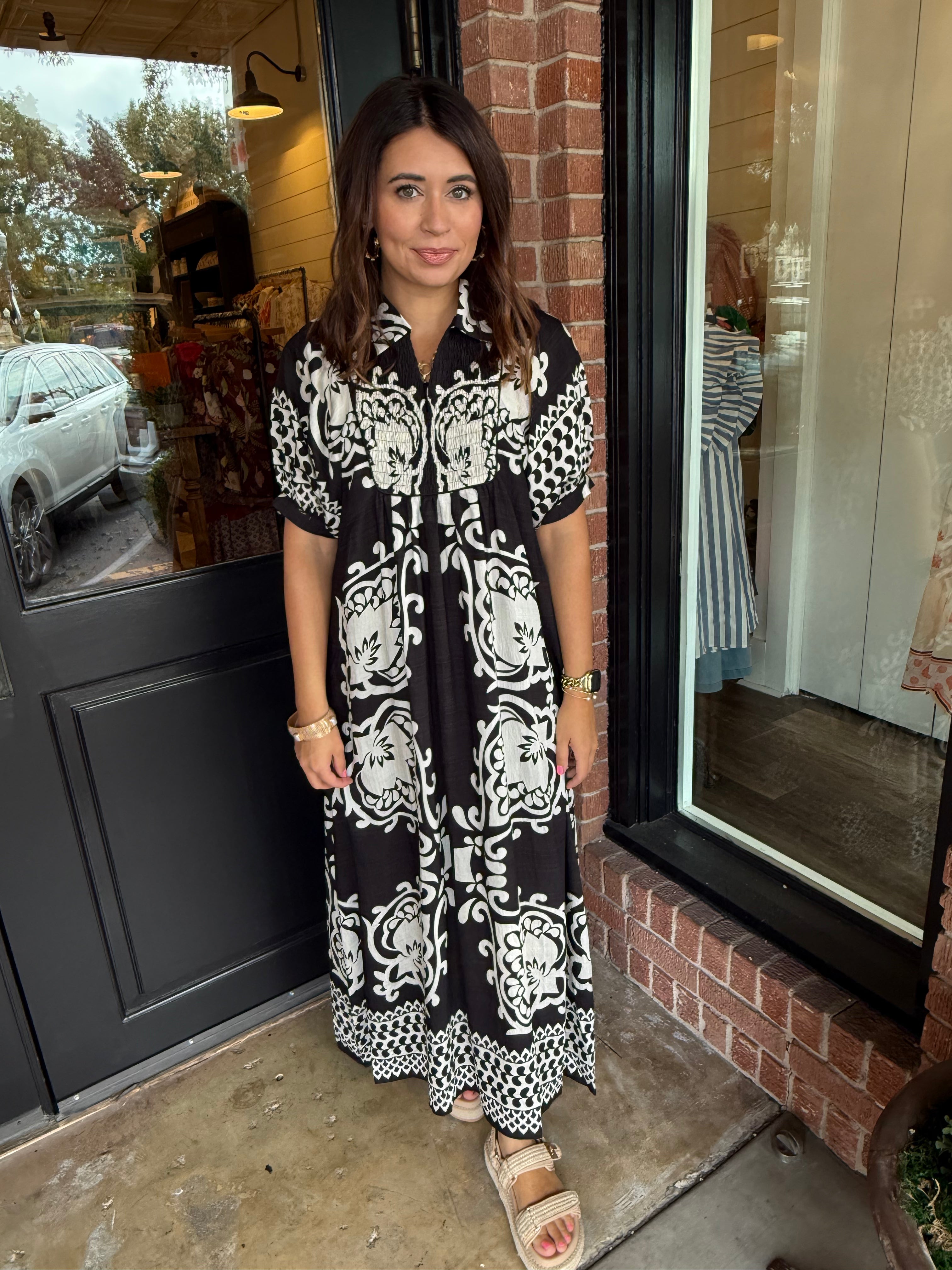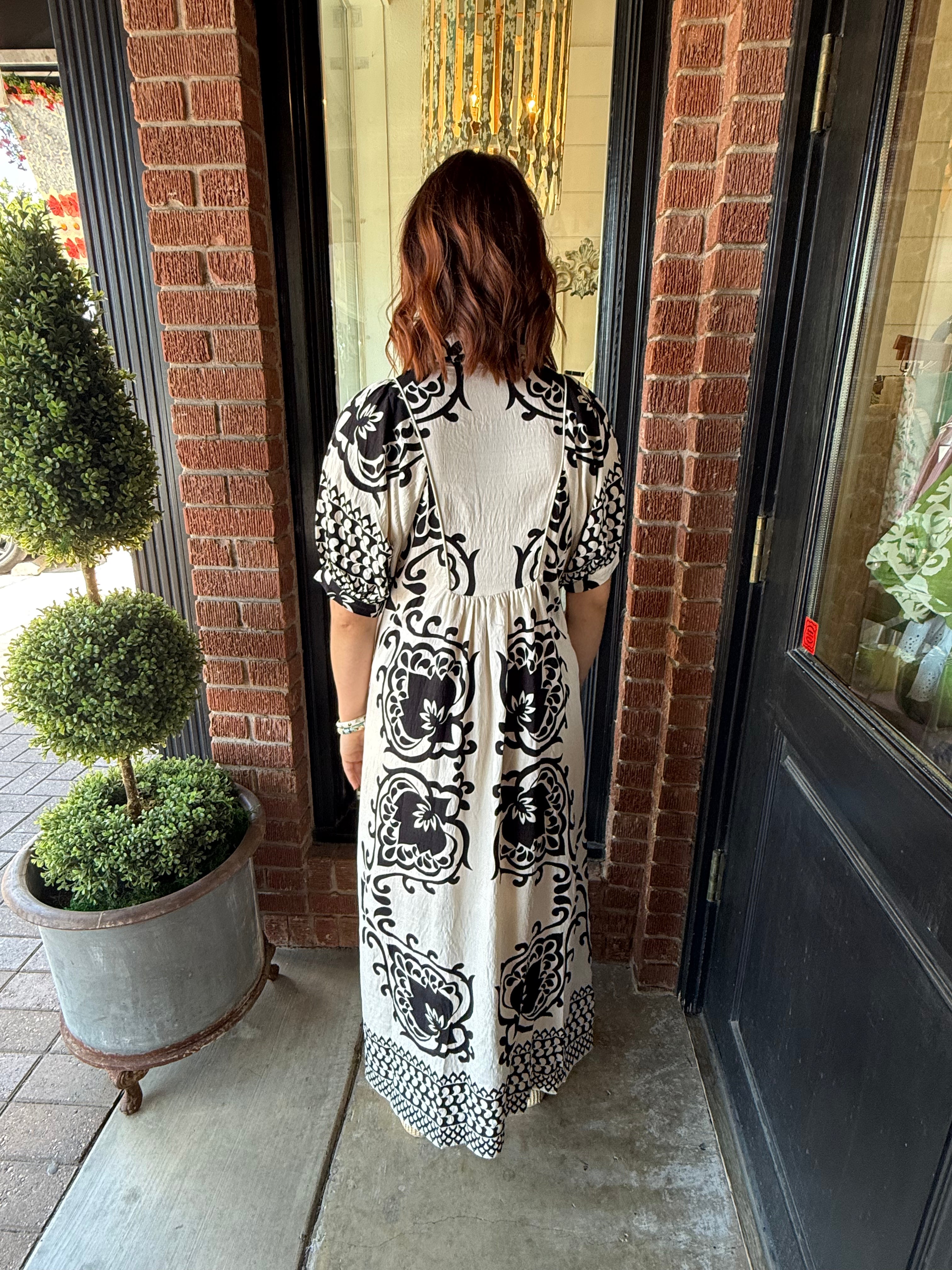 Turn heads in the Tyra Mixed Print Midi Dress—a standout style with its playful blend of prints and flattering silhouette. Featuring a V-neckline and a smocked front bodice for a comfortable fit, this midi dress brings effortless charm to your warm-weather wardrobe. The mixed patterns add just the right amount of flair, perfect for brunch, events, or a casual day out.