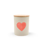 Valentine's Heart Travel Candle in Vanilla Orchid is a fresh floral blend in a custom printed 3.5 oz travel candle. - Dimensions: 3" H x 2.5" W - Tight fitting wood lid - Matte cream glass vessel - 20 hour burn time - 3.5 oz / 99 g Poured and printed on-site in Austin, Texas with 100% soy wax and phthalate-free fragrances.
