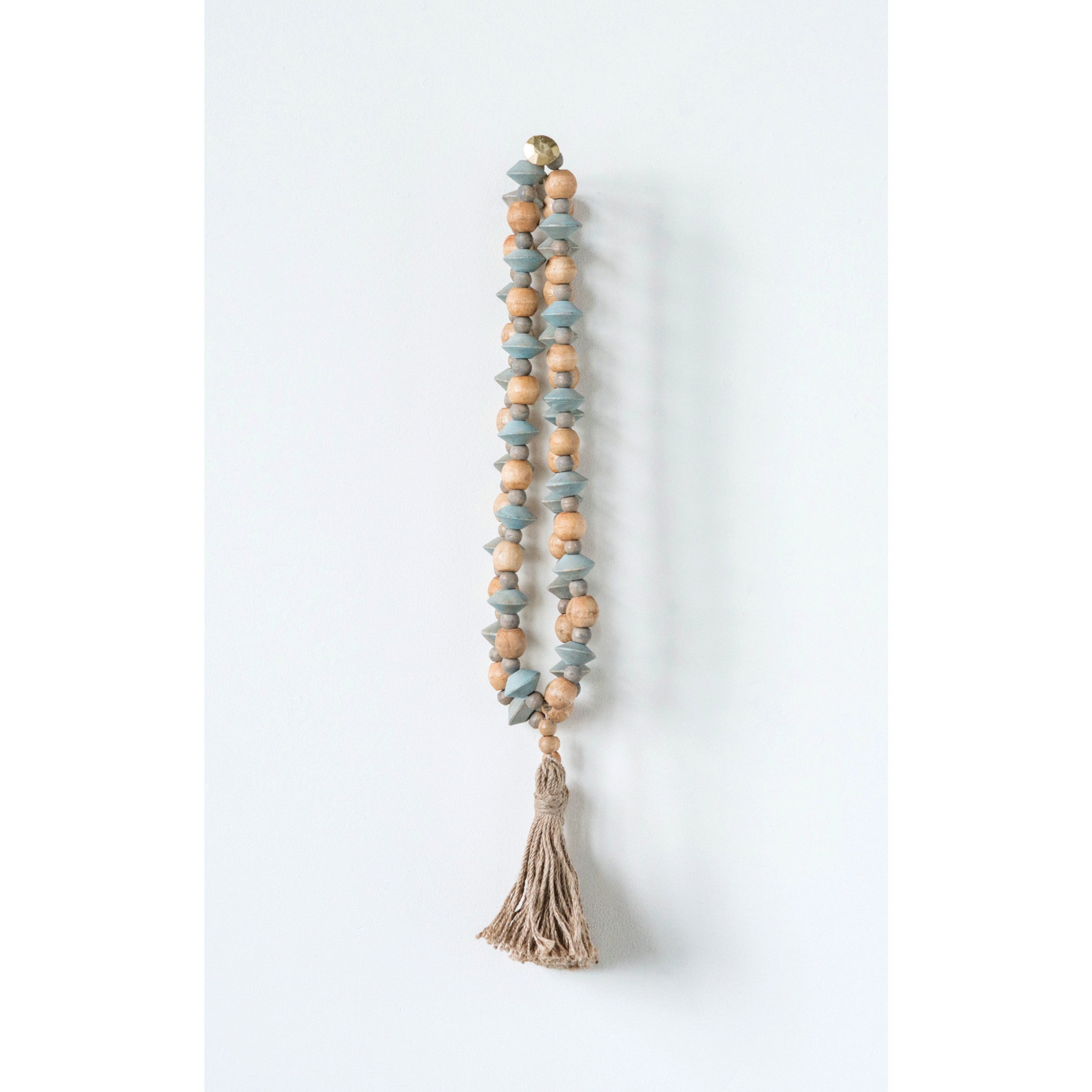 Elevate your home decor with our Wood Bead Strand with Tassel. Made from stunning abaca wood, this decorative piece adds a unique touch to any room. Hang it on a mirror or frame, wrap it around a vase, or use it to mark your place in a book. Fun and versatile 23"L Abaca Wood Bead Strand w/ Jute Tassel, Multi Color